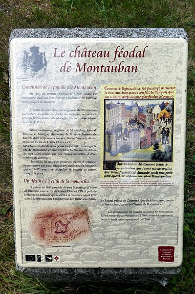 Le château en totalité, à savoir le châtelet, l'aile nord (communs) , le logis sud intégrant la tour du Renard, la chapelle, la tour dite donjon, les ruines du logis seigneurial, la tour dite des Anglais, les deux corps de communs au nord-ouest de la cour, son sol d'assiette ainsi que les défenses avancées (étang, douves et cavaliers) , ensemble situé sur les parcelles B 303 à 306, 308, 327 à 339, 562, 733, 770, 773 : classement par arrêté du 6 mars 2003
