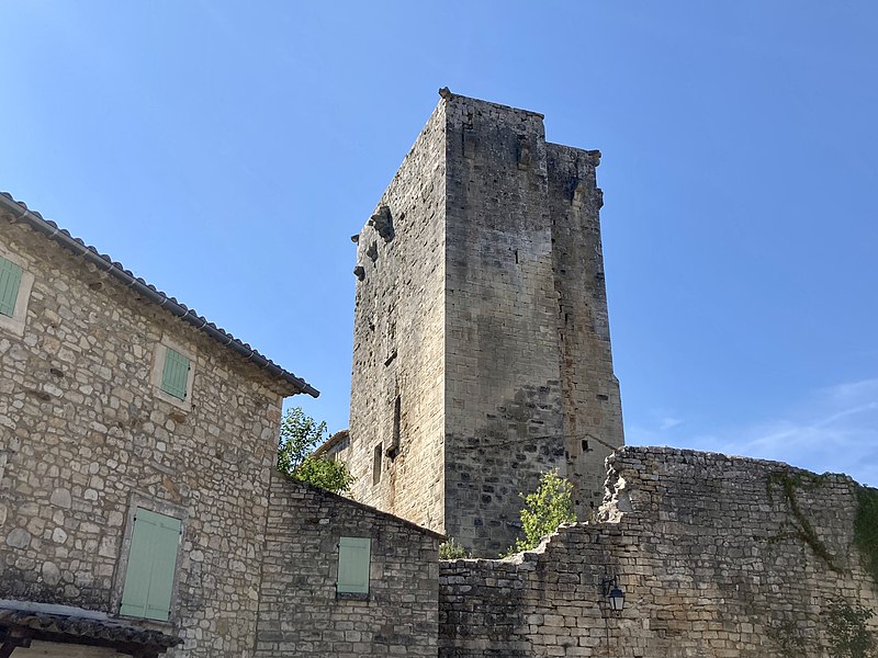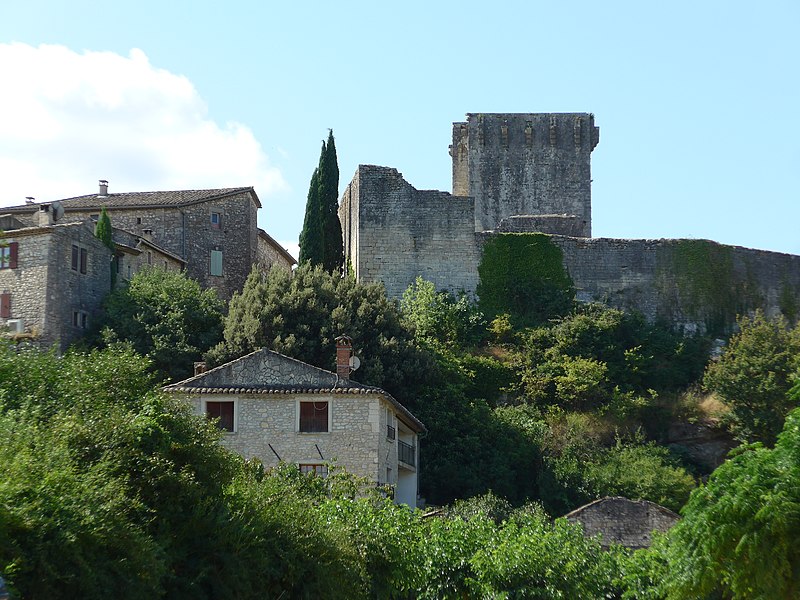 Les ruines du château de Montclus, situées sur la commune de Montclus (Gard) et dominants la vallée de la Cèze, sont le vestige d’une seigneurie qui, au XIIIe siècle, dépendait de la baronnie de Sabran. Les restes sont classés au titre des monuments historiques par arrêté du 19 juillet 1977. L’ensemble est ceint d’une enceinte polygonale, allongée selon un axe nord-sud ; à l’intérieur, des bâtiments de diverses époques s’organisent autour d’un donjon rectangulaire, sur un plan en équerre. Le gros-œuvre du donjon paraît remonter au XIIe siècle ; son plan est prolongé au sud-est par une avancée qui contenait sans doute l’escalier à vis. Au sommet subsistent quelques corbeaux à ressauts ayant porté des mâchicoulis. Les constructions au nord du donjon ont connu de nombreux remaniements, mais leurs parties les plus anciennes semblent d’origine romane ; les niveaux inférieurs conservent plusieurs salles voûtées en berceau. À l’ouest, un bâtiment en ruine présente des ouvertures à arc surbaissé, caractéristiques de l’époque classique, de sorte que sa construction remonte probablement aux XVIIe ou XVIIIe siècles. Parmi les pierres à bosse du donjon on peut également distinguer un visage apotropaïque. Ces vestiges témoignent de l’architecture militaire médiévale et de son adaptation à des fonctions variées au fil des siècles.