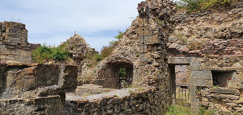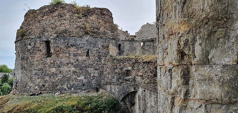 Le site illustre les dispositifs employés lors de la transition entre Moyen Âge et Renaissance, quand les ouvrages médiévaux durent s'adapter aux armes à feu : épaississement des murailles, percement de postes de tir avec canonnières, construction de tours d'artillerie au plan bastionné ou en as de pique, installation de casemates à canons. La barbacane qui contrôlait l'entrée présente des aménagements défensifs typiques de la seconde moitié du XVe siècle. Le vieux donjon, situé à la pointe de l'éperon, paraît avoir été doté d'un ouvrage défensif relativement rare, appelé moineau : on y observe un ancien couloir d'accès traversant la base du mur du donjon. Ces petites casemates pour armes légères étaient implantées au fond des fossés pour pouvoir tirer sur un assaillant parvenu dans le fossé. Les vestiges visibles datent en grande partie du XVe et du début du XVIe siècle. L'historien Jules Michelet affirme avoir trouvé sa vocation en visitant le château, qu'il qualifie de « Colisée féodal ».