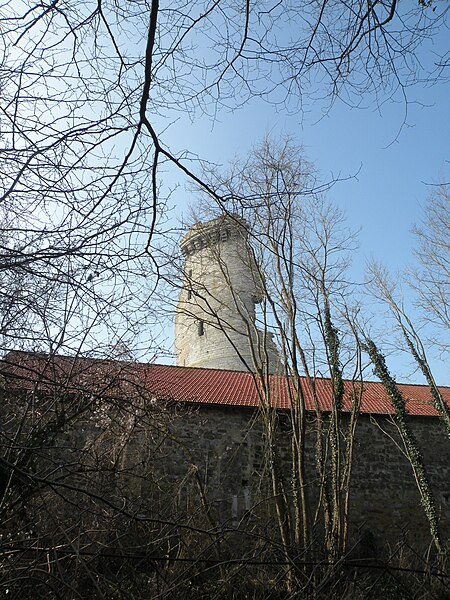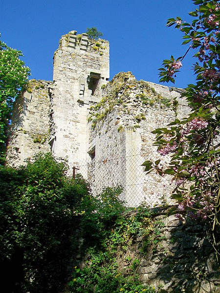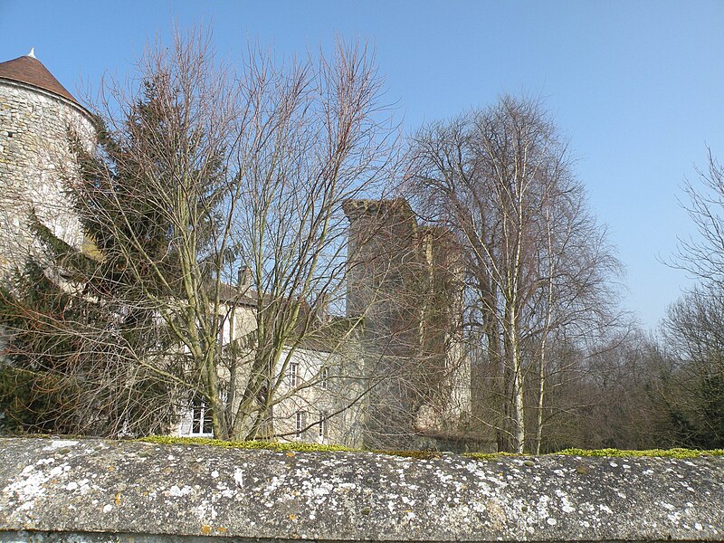 Le « château neuf », commencé vers 1409‑1411 et jamais achevé, visait à établir une cour noble à l'est de l'enceinte ; il comprend une tour neuve d'environ 10 m de diamètre, une courtine orientée nord‑sud, un logis noble à l'est et un petit corps de logis au nord. La tour neuve, haute de quatre étages, conserve surtout son mur arrière et une cave voûtée ; le premier étage paraît avoir servi de cachot et le troisième comporte une tourelle d'escalier en encorbellement reliant logis et chemin de ronde. La courtine neuve, encore bien conservée, comporte une porterie à pont‑levis, des mâchicoulis du même type que ceux du donjon et, près du donjon, une cave profonde voûtée en berceau exploitée lors de la construction. Un second tronçon de courtine au nord du donjon, nécessaire pour clore la cour noble, n'a jamais été entrepris. Les bâtiments de la ferme moderne ont été adossés à la muraille et occupent la moitié ouest de l'enceinte, mais le donjon et le château neuf restent libres au milieu de la cour et n'ont pas été fortement altérés par ces additions.