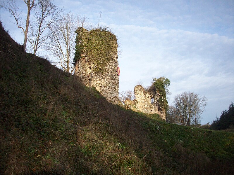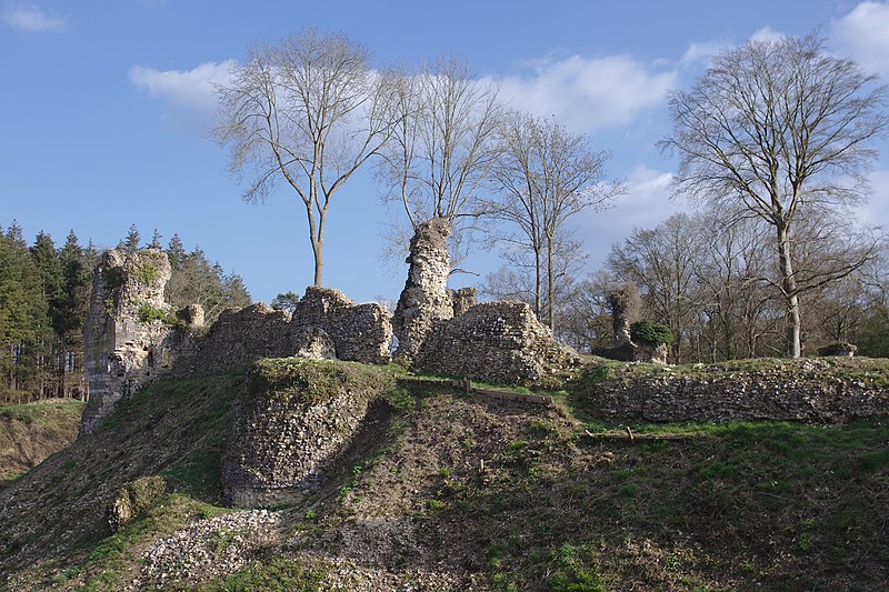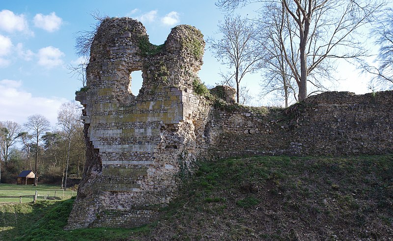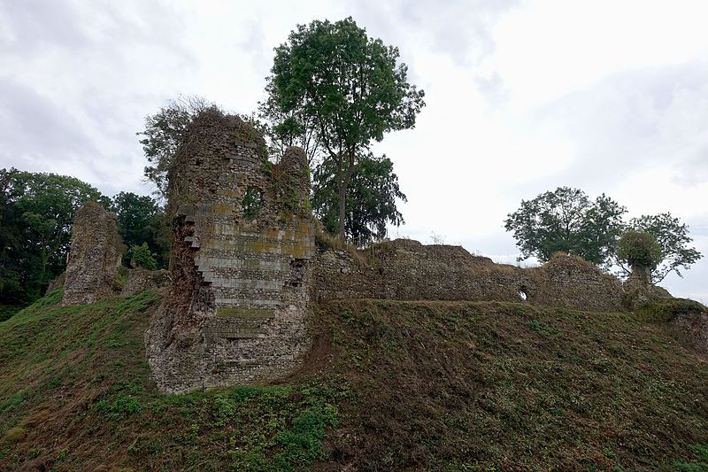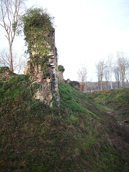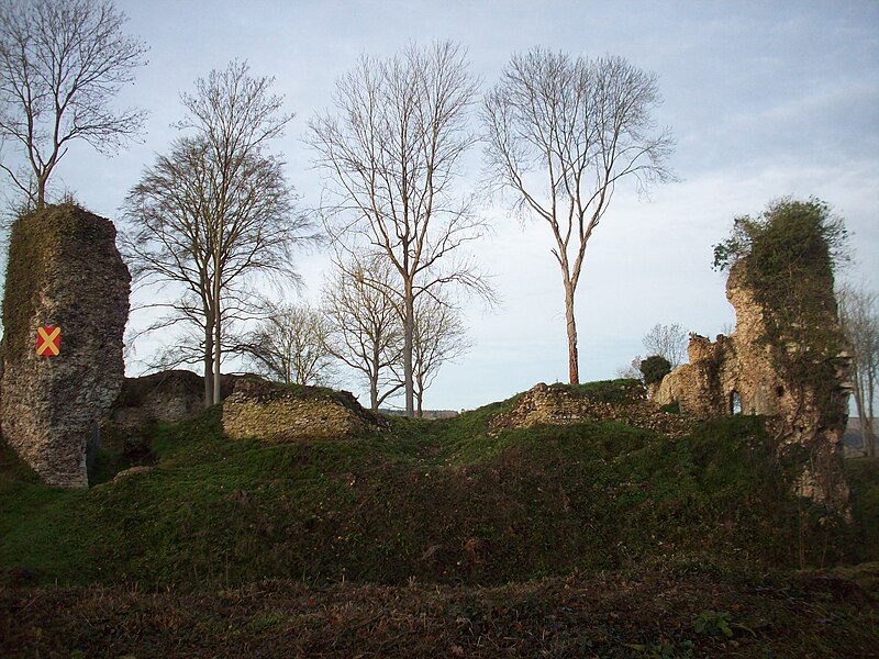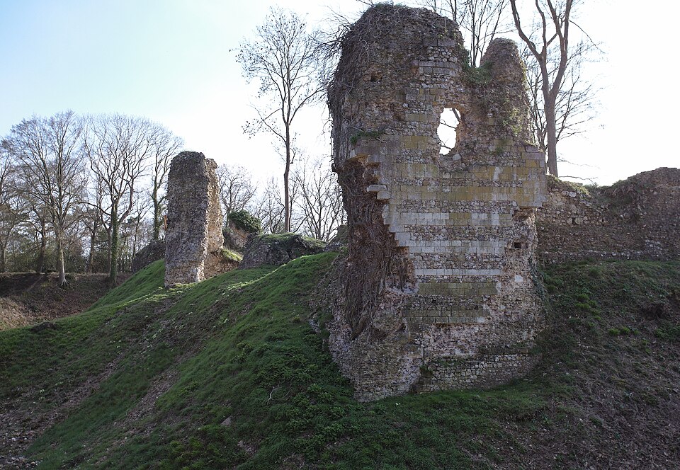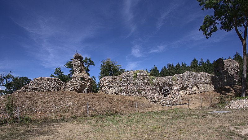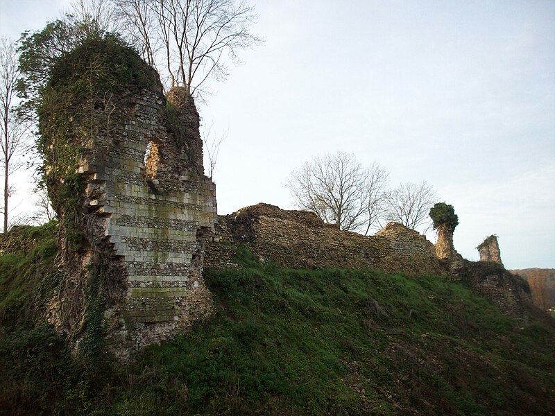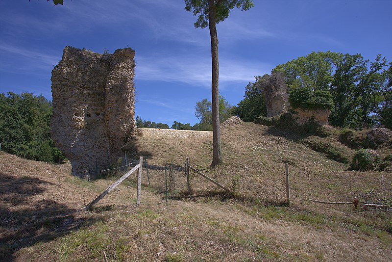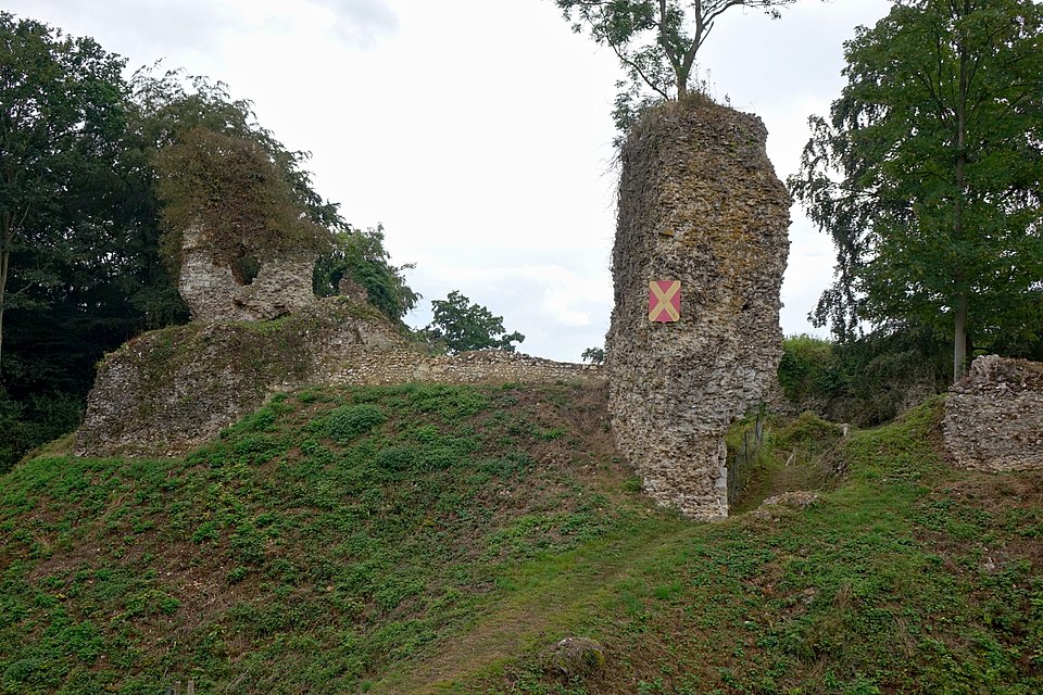 Architecturalement, le site comprend au nord un ouvrage avancé appelé le Grand Ber, entouré d'un large fossé et comparable à une basse‑cour, et, au centre, les vestiges d'une enceinte en pierre flanquée de sept tours au nord et au sud. La haute cour, d'environ 3 600 m2, est protégée par quatre tours d'angle, une tour‑porte dite Saint‑Nicolas et trois tours semi‑circulaires. Le donjon, de plan rectangulaire (18 × 16 m), n'offre que le premier niveau ; il présente des contreforts plats et est partiellement entouré d'une chemise qui l'isole du reste de la haute cour. Les maçonneries associent silex à parements et blocaille, tandis que les arêtes et soubassements témoignent d'un appareillage soigné en pierre calcaire ; à l'arrière du donjon subsiste un mur en opus spicatum. Des sondages menés en 1977 et 1978 ont relevé la poterne de la tour‑porte ; des fossés ceinturent l'ensemble avec des profondeurs pouvant atteindre 10 mètres et des largeurs jusqu'à 39 mètres. Les murs de courtine, d'environ 2 mètres d'épaisseur et atteignant une hauteur maximale de 5 mètres, sont partiellement masqués par des remblais.