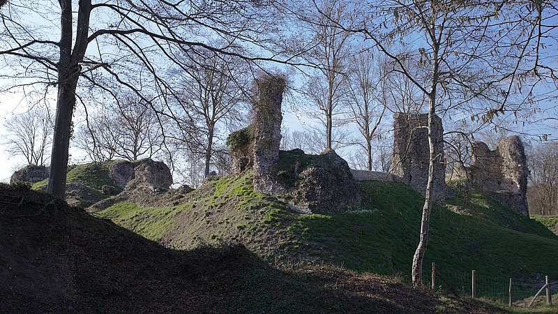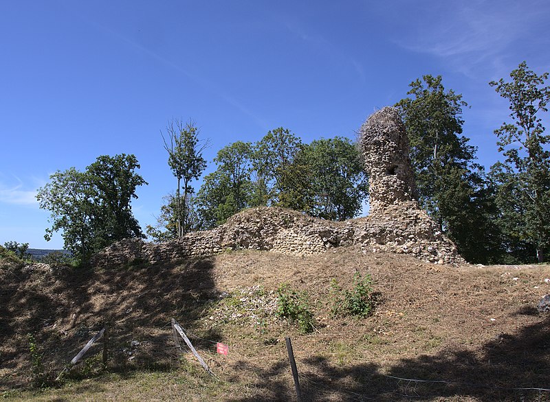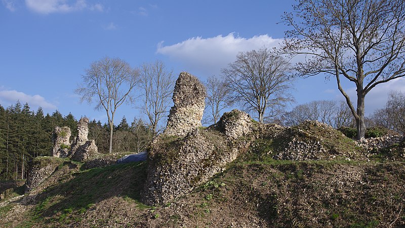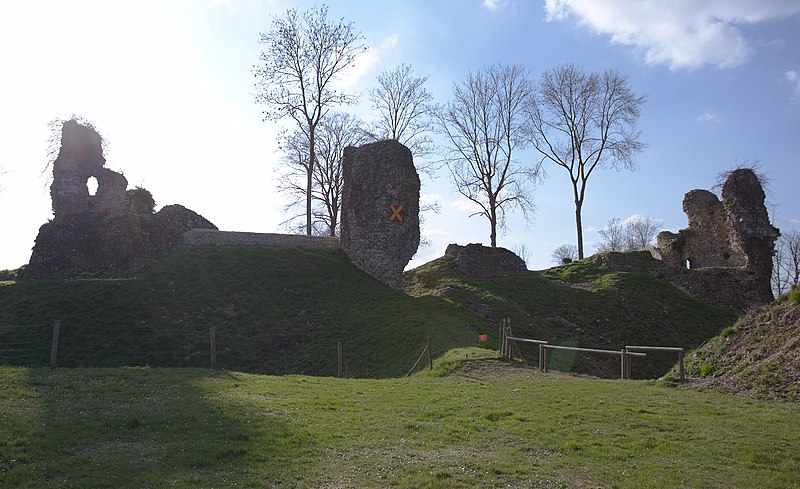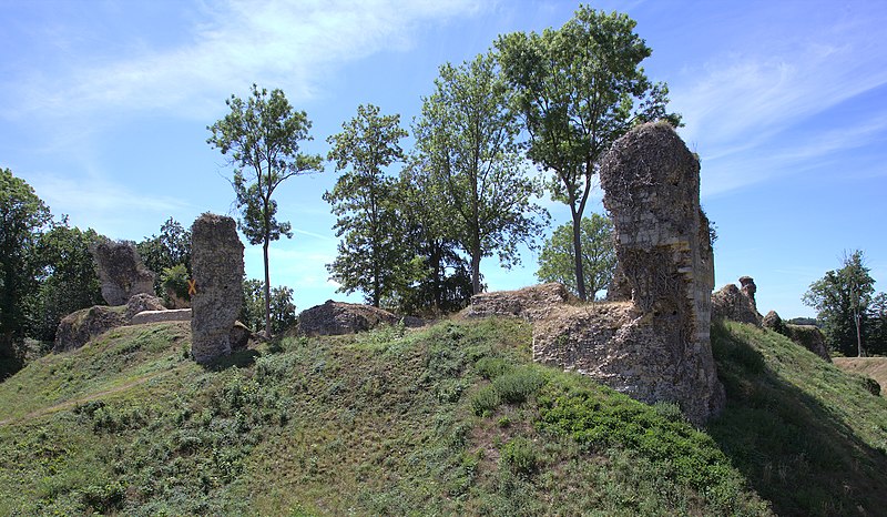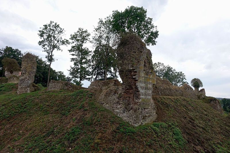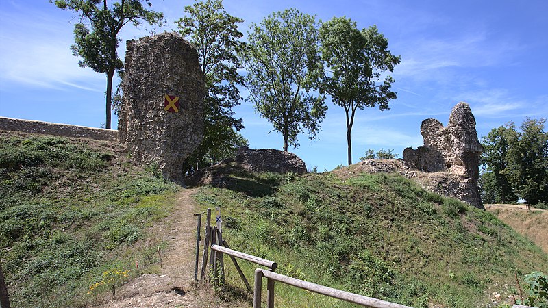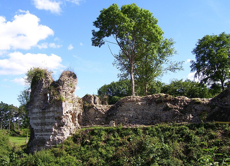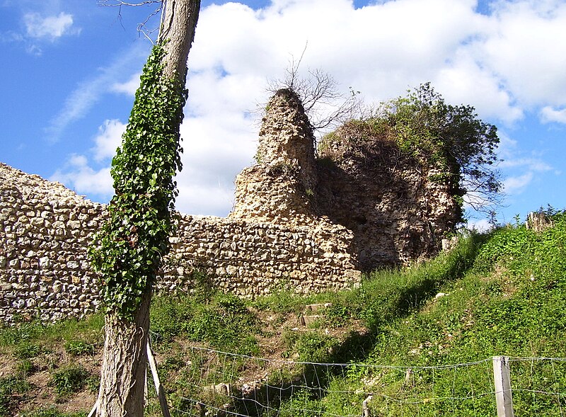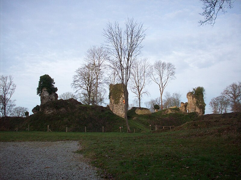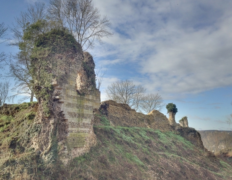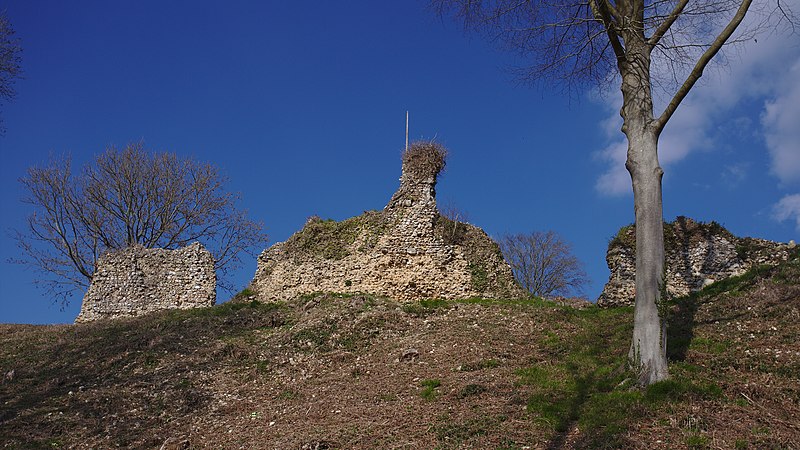 Architecturalement, le site comprend au nord un ouvrage avancé appelé le Grand Ber, entouré d'un large fossé et comparable à une basse‑cour, et, au centre, les vestiges d'une enceinte en pierre flanquée de sept tours au nord et au sud. La haute cour, d'environ 3 600 m2, est protégée par quatre tours d'angle, une tour‑porte dite Saint‑Nicolas et trois tours semi‑circulaires. Le donjon, de plan rectangulaire (18 × 16 m), n'offre que le premier niveau ; il présente des contreforts plats et est partiellement entouré d'une chemise qui l'isole du reste de la haute cour. Les maçonneries associent silex à parements et blocaille, tandis que les arêtes et soubassements témoignent d'un appareillage soigné en pierre calcaire ; à l'arrière du donjon subsiste un mur en opus spicatum. Des sondages menés en 1977 et 1978 ont relevé la poterne de la tour‑porte ; des fossés ceinturent l'ensemble avec des profondeurs pouvant atteindre 10 mètres et des largeurs jusqu'à 39 mètres. Les murs de courtine, d'environ 2 mètres d'épaisseur et atteignant une hauteur maximale de 5 mètres, sont partiellement masqués par des remblais.