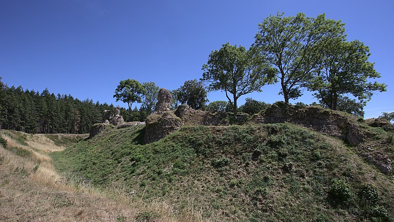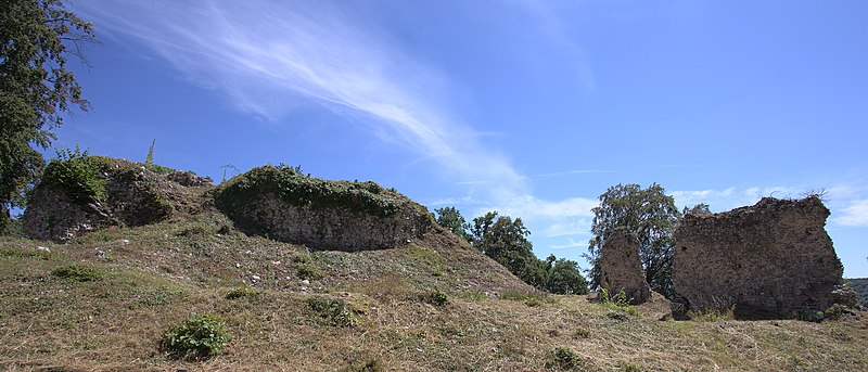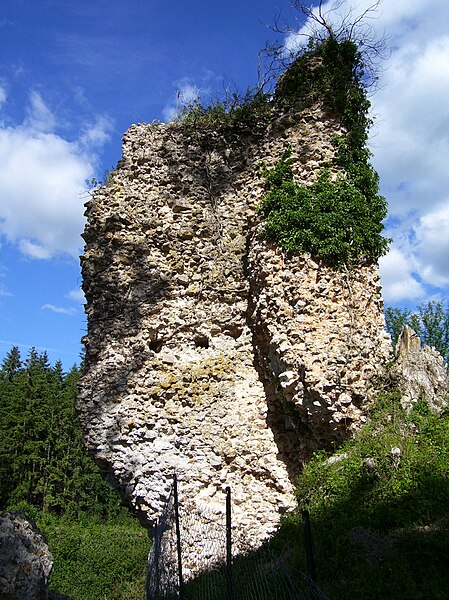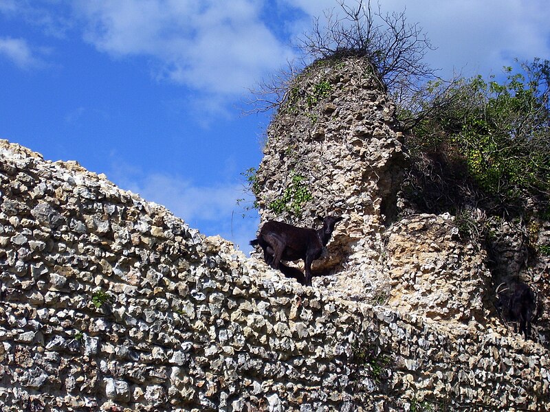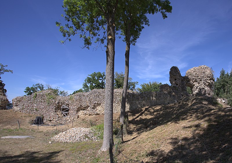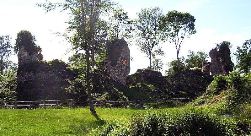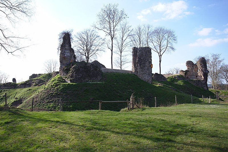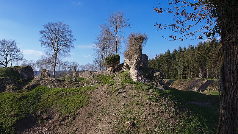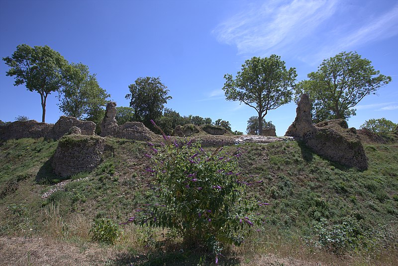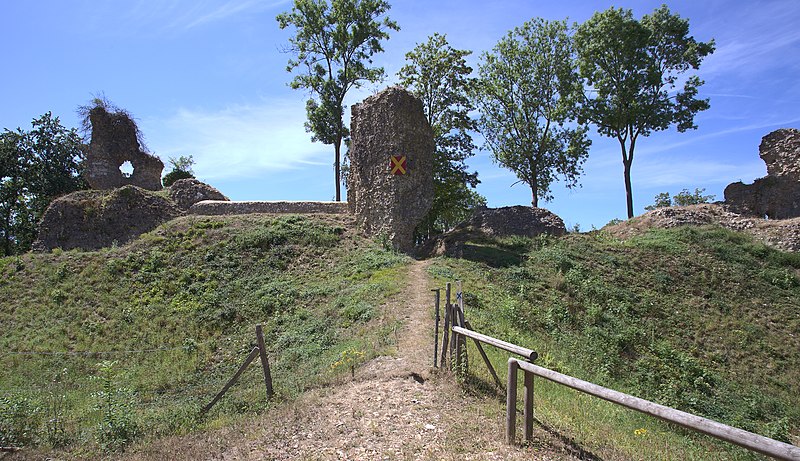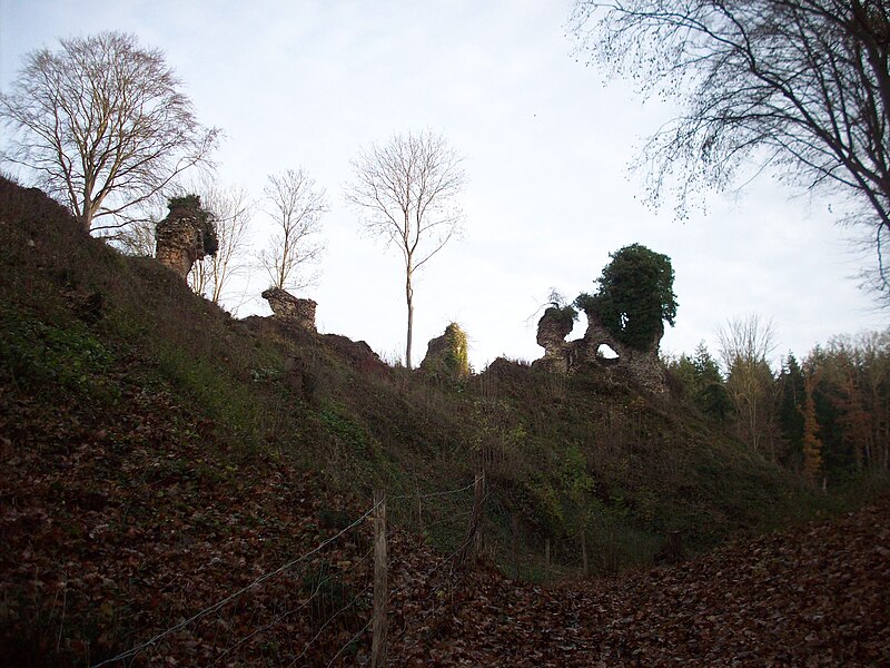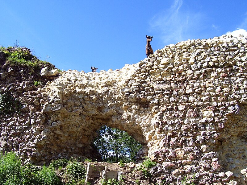Architecturalement, le site comprend au nord un ouvrage avancé appelé le Grand Ber, entouré d'un large fossé et comparable à une basse‑cour, et, au centre, les vestiges d'une enceinte en pierre flanquée de sept tours au nord et au sud. La haute cour, d'environ 3 600 m2, est protégée par quatre tours d'angle, une tour‑porte dite Saint‑Nicolas et trois tours semi‑circulaires. Le donjon, de plan rectangulaire (18 × 16 m), n'offre que le premier niveau ; il présente des contreforts plats et est partiellement entouré d'une chemise qui l'isole du reste de la haute cour. Les maçonneries associent silex à parements et blocaille, tandis que les arêtes et soubassements témoignent d'un appareillage soigné en pierre calcaire ; à l'arrière du donjon subsiste un mur en opus spicatum. Des sondages menés en 1977 et 1978 ont relevé la poterne de la tour‑porte ; des fossés ceinturent l'ensemble avec des profondeurs pouvant atteindre 10 mètres et des largeurs jusqu'à 39 mètres. Les murs de courtine, d'environ 2 mètres d'épaisseur et atteignant une hauteur maximale de 5 mètres, sont partiellement masqués par des remblais.