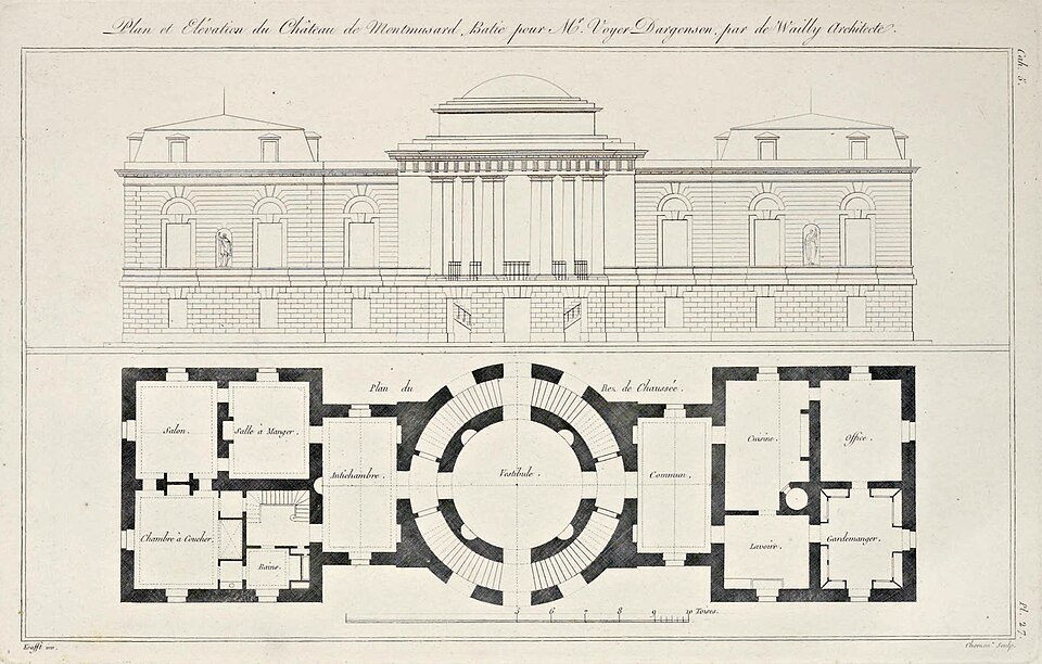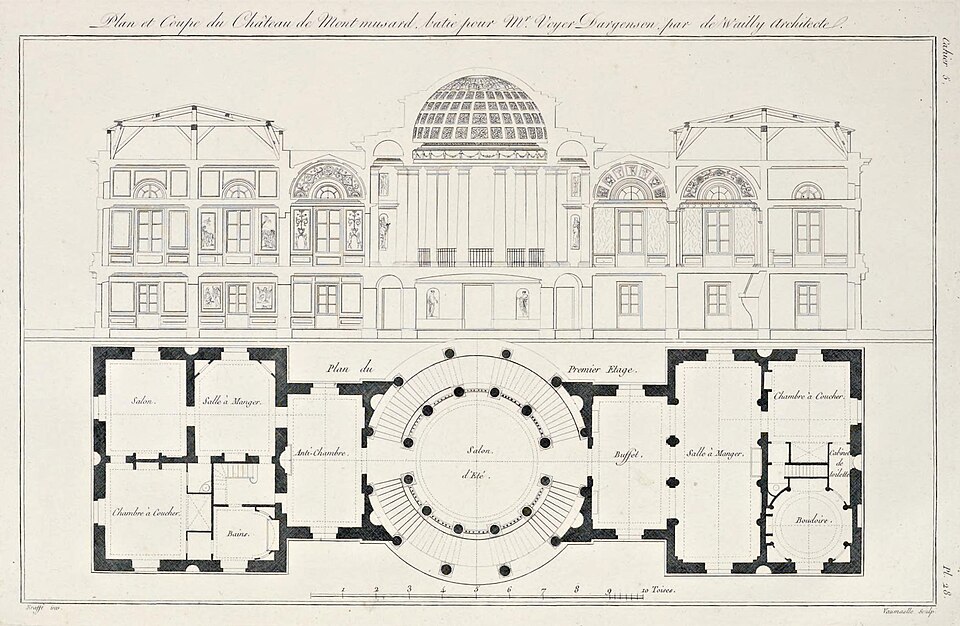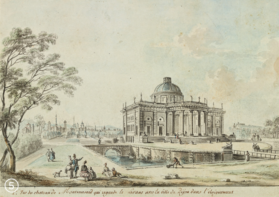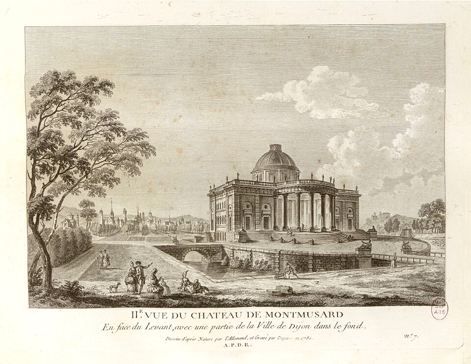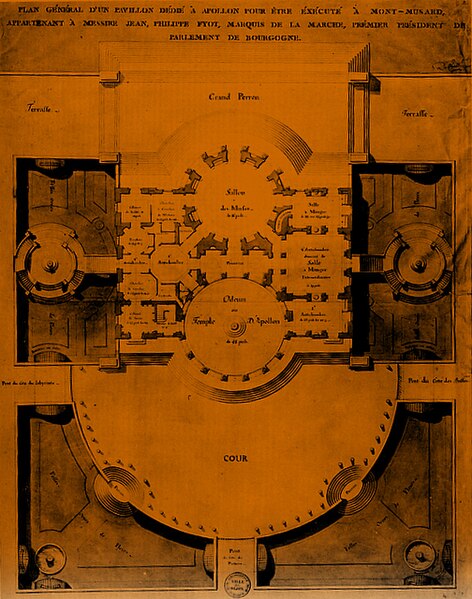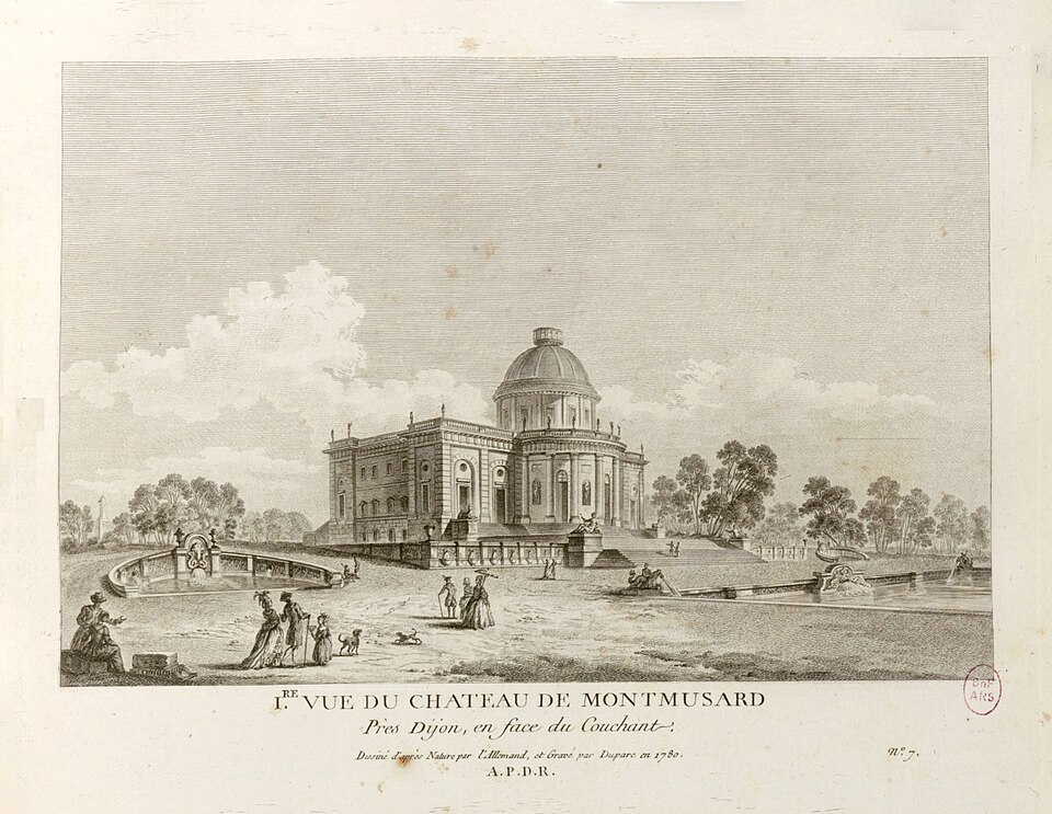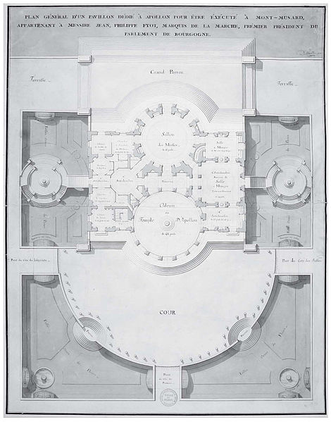 La reconstruction du château moderne revient à Jean-Philippe Fyot, qui confia à Charles de Wailly un projet néo-palladien d’une grande originalité. Les plans associaient deux ailes parallèles, une colonnade circulaire ouverte au levant — l’Odeum ou temple d’Apollon — et une rotonde occidentale abritant un salon des Muses coiffé d’une coupole hémisphérique ; le jeu du plein et du vide, du cercle ouvert et du cercle fermé, marquait l’audace du projet. Charles de Wailly vit dans cette proposition une des premières expressions du « style à la grecque » en France.