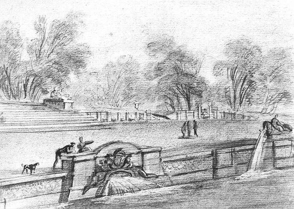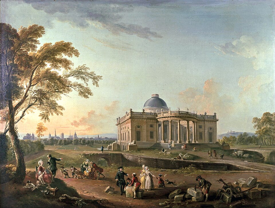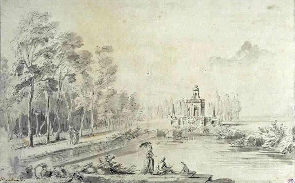 En 1748 il fit ériger, à l’extrémité orientale du canal, un kiosque octogonal en bossages vermiculés, surmonté d’un lanternon et ouvert par huit baies cintrées sur un salon lambrissé. Posé sur un podium à demi enterré, encadré de fontaines et doté d’une terrasse belvédère, ce pavillon abritait une « table volante » qui faisait monter, depuis les cuisines souterraines, un service dressé dans le salon. Le kiosque, admiré pour son architecture et son mécanisme, était déjà décrit en état de ruine à la fin du XVIIIe siècle.