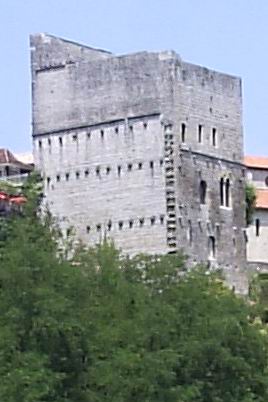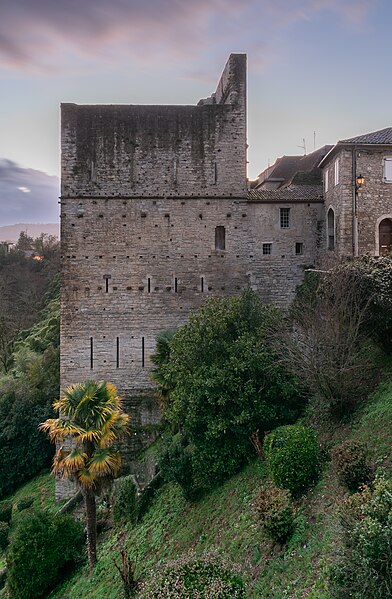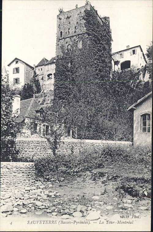 La tour Monréal, élevée sur un escarpement dominant le gave d'Oloron, fait partie des dispositifs défensifs de Sauveterre-de-Béarn aux côtés des remparts, de l'église fortifiée Saint-André à l'est, du château vicomtal et du pont de la Légende à l'ouest. Son architecture permet de situer sa construction à la fin du XIIe siècle ou au début du XIIIe siècle. De plan rectangulaire, elle mesure 10,5 mètres de largeur sur 14,8 mètres de profondeur et atteint 37 mètres de hauteur sur sa face sud. Les murs ont une épaisseur d'environ 90 cm, renforcée à la base. Destinée à la défense de la cité, la tour présente meurtrières et vestiges de hourds, visibles grâce aux nombreux corbeaux et aux ouvertures sur les façades est et sud. Elle était dotée d'un chemin de ronde et de créneaux ; son sommet a été arasé au XIXe siècle. La façade ouest est aveugle ; les corbeaux y signalent l'existence d'un bâtiment prolongateur aujourd'hui disparu. La face nord est percée de deux portes qui ouvraient sur un édifice accolé, en partie démoli, et permettaient l'accès au bourg médiéval ; ces portes sont aujourd'hui murées. Une porte côté est et, au pied de la tour, une poterne desservant un réduit complétaient les accès. La présence d'une baie géminée laisse envisager un usage partiellement résidentiel, mais l'aménagement intérieur, sommaire et dépourvu de latrines et de cheminées, limite cet aspect. De nombreuses niches murales intérieures évoquent par ailleurs une fonction d'entrepôt ou de stockage. En 1523, la tour participa à la défense de la ville lors du siège mené par les impériaux de Charles Quint venus de la Navarre espagnole. Elle doit son nom à une riche famille qui l'acheta au début du XIXe siècle, ce qui contribua à la sauver de la destruction. Classée aux Monuments historiques en 1886, la tour fut rachetée par la commune en 1937. En son centre, la tour abrite une maquette au 1/100 de la cité médiévale réalisée par l'historien local André Joseph Gastellu après des milliers d'heures de travail minutieux. Cette reconstitution est mise en valeur par un son et lumière retraçant les grandes périodes de la cité entre les XIIIe et XVIe siècles, et elle est entourée d'espaces consacrés au patrimoine de Sauveterre, ainsi qu'à l'histoire du Béarn, de la Navarre et de la France.