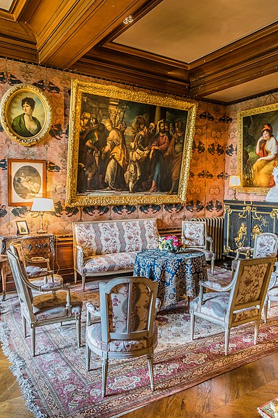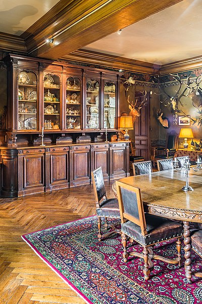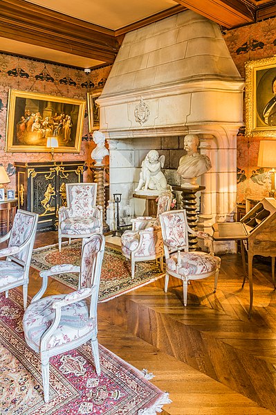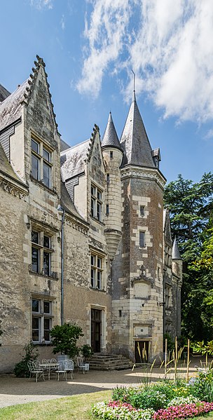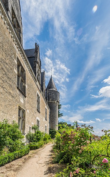 Le château de Montrésor, perché sur un éperon rocheux dominant la vallée de l'Indrois, occupe le bourg du même nom à une quinzaine de kilomètres à l'est de Loches en Indre-et-Loire. Sa fondation est traditionnellement attribuée à Foulques Nerra, qui aurait fait édifier au sommet un donjon pour contrôler l'accès aux plateaux. L'ensemble fortifié a connu plusieurs phases : démolition à partir de 1203, reconstruction aux XIVe–XVe siècles et transformation en logis à la Renaissance. Jean IV de Bueil fit alors reconstruire et renforcer les défenses ; les travaux conduits par l'entrepreneur Jean Binet sont à l'origine du mur d'enceinte, du châtelet d'entrée et des communs. Imbert de Batarnay, puissant conseiller royal de la fin du XVe siècle, acheta le domaine et fit édifier un logis Renaissance en appui sur le mur sud de l'enceinte, tout en rehaussant l'entrée du château. Le corps de logis s'étendait alors sur une longueur plus importante qu'aujourd'hui, flanqué de tourelles et appuyé sur des éléments médiévaux réemployés. Après des vicissitudes pendant la Révolution et une période de dégradation au XIXe siècle, le comte Xavier Branicki acquit le domaine en 1849 et entreprit sa restauration ; ses descendants conservent encore la propriété. Xavier Branicki fit restaurer les toitures, reconstruire des communs, aménager une terrasse sud, redessiner le parc et remeubler le logis dans le goût du Second Empire, enrichi d'objets et de souvenirs liés à l'histoire polonaise. Le site présente un donjon primitif polygonal dont subsiste un pan du mur ouest, ainsi qu'un donjon-porche d'accès composé de deux tours circulaires remaniées aux siècles suivants. La double enceinte, principalement conservée, témoigne des évolutions défensives : l'enceinte intérieure du XIIe siècle porte des arcatures d'encorbellement et des vestiges de chemin de ronde, tandis que l'enceinte du XIVe siècle renforce les côtés nord et est et accueille des tours adaptées à l'artillerie. Le logis principal Renaissance se développe en un corps rectangulaire à deux étages et combles mansardés, avec tourelles coniques au sud et échauguettes en encorbellement au nord ; des niches d'angle abritent des statues. La distribution intérieure comporte notamment deux escaliers aménagés dans l'épaisseur des murs, dont un en acajou et bronze doré posé par Xavier Branicki. Les communs, adossés à l'enceinte nord, mêlent vestiges médiévaux — greniers, chemin de ronde, ouvertures étroites — et reconstructions du XIXe siècle qui accueillent des logements et une orangerie. Le décor intérieur reflète les choix de Branicki : mobilier de style Second Empire, pièces anciennes inspirées de la Renaissance italienne, tableaux d'écoles diverses, bas-reliefs, trophées de chasse, collections d'armes et un ensemble d'orfèvrerie et d'objets polonais. Parmi les pièces conservées figurent des portraits par Winterhalter, des bas-reliefs en chêne et une urne renfermant le cœur de Claude de Batarnay. Le parc, remodelé au XIXe siècle, a été planté d'essences exotiques et enrichi de sculptures, dont L'ange déchu de Costantino Corti et une copie du Soldat mourant de Jules Franceschi, ainsi qu'un bassin décoré d'un jet d'eau. Au XXe siècle, le château a connu des usages ponctuels comme hôpital auxiliaire et cantonnement, tandis que la protection patrimoniale s'est renforcée : le site a fait l'objet d'une inscription et l'ensemble château, communs, enceintes et parc est classé au titre des monuments historiques. Depuis que la commune a orienté son développement vers le tourisme, le château, en grande partie ouvert au public, constitue l'un des principaux atouts du village et accueille chaque année un flux important de visiteurs.