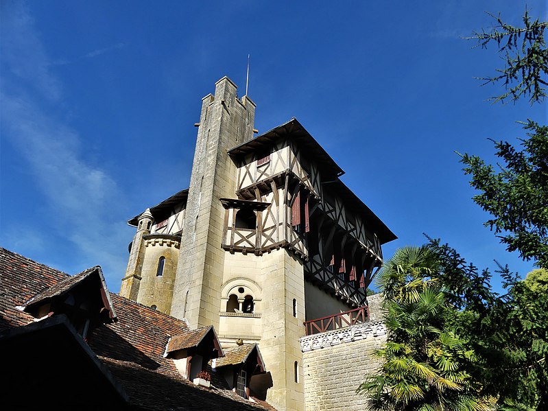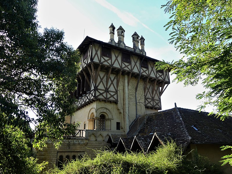 Construit à partir de 1880 et conçu par l'acteur Mounet‑Sully, le château, en raison de la personnalité de son propriétaire, fut un lieu de rencontre pour de grands noms du théâtre et des arts ainsi que pour plusieurs lauréats du prix de Rome de sculpture. Rodin aurait sculpté quelques chapiteaux du cloître et Rostand y aurait travaillé à son Cyrano de Bergerac. L'ensemble se présente comme un curieux imbroglio de pastiches architecturaux. Au sud, une tour dite carolingienne, complétée par un petit donjon roman, s'élève près d'un bâtiment en équerre qui comporte, outre une galerie de cloître, une construction de style gothique. À l'intérieur, une petite salle de théâtre servait aux représentations privées données par les frères Mounet. Les murs et les plafonds sont ornés d'une décoration hétéroclite — niches sculptées, encadrements, moulures, ferronneries aux initiales de l'acteur, mosaïque néo‑byzantine et fresques — disposée selon un ordre imaginé par Mounet‑Sully.