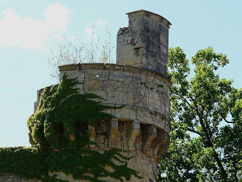 Le portail d'entrée monumental, daté du XVIe siècle, conserve les glissières destinées au pont-levis. Le château a été remanié au XVIIIe siècle, à l'exception du donjon carré du XVIe siècle, coiffé d'une pyramide et accosté d'une tourelle qui abrite une chambre de guet. Un chemin de ronde, supporté par des corbeaux, parcourt les façades et est interrompu par une fenêtre à encadrement Renaissance. Sous une autre fenêtre, des têtes sculptées portent la coiffure et la fraise attribuées à Catherine de Médicis. Au rez-de-chaussée se trouve une salle voûtée sur croisée d'ogives.