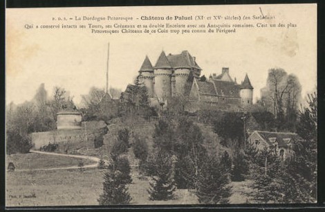 Le château de Paluel, situé à Saint-Vincent-le-Paluel en Périgord noir, dans le sud-est de la Dordogne, occupe un promontoire dominant le ruisseau Énéa dans le vallon de Sainte-Nathalène, à deux kilomètres en aval du bourg. Édifié au XVe siècle sur l'emplacement d'un bâtiment du XIIIe siècle, il présente un corps de logis flanqué de deux tours d'angle et d'une tour d'escalier centrale. À l'arrière, relié par un passage étroit, un donjon rectangulaire du XIIe siècle complète l'ensemble. Des mâchicoulis couronnent les tours et le corps de logis ; le donjon a conservé des mâchicoulis en bois avec remplissage de torchis. Le château est entouré d'une enceinte de courtines.
