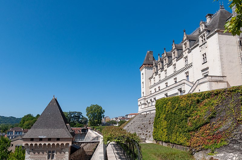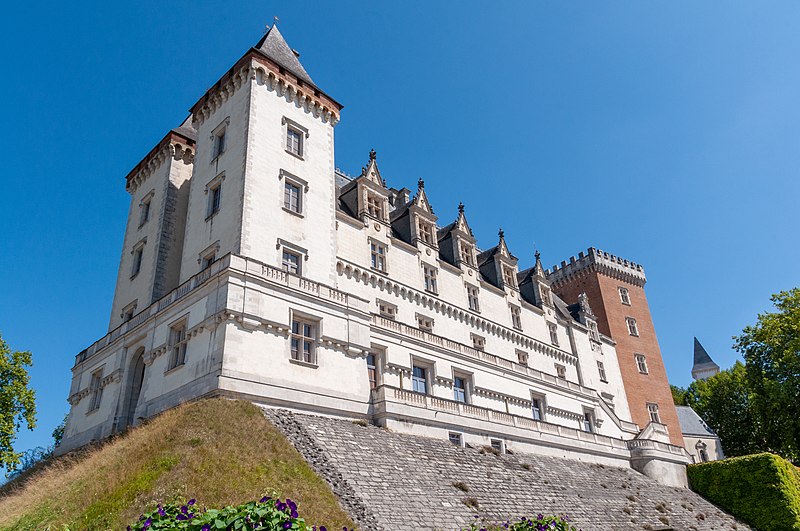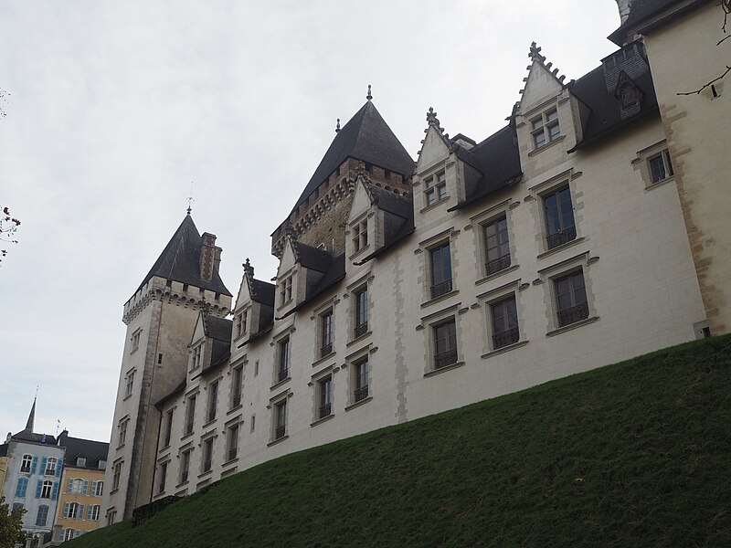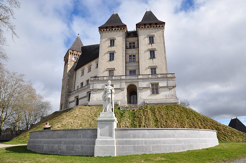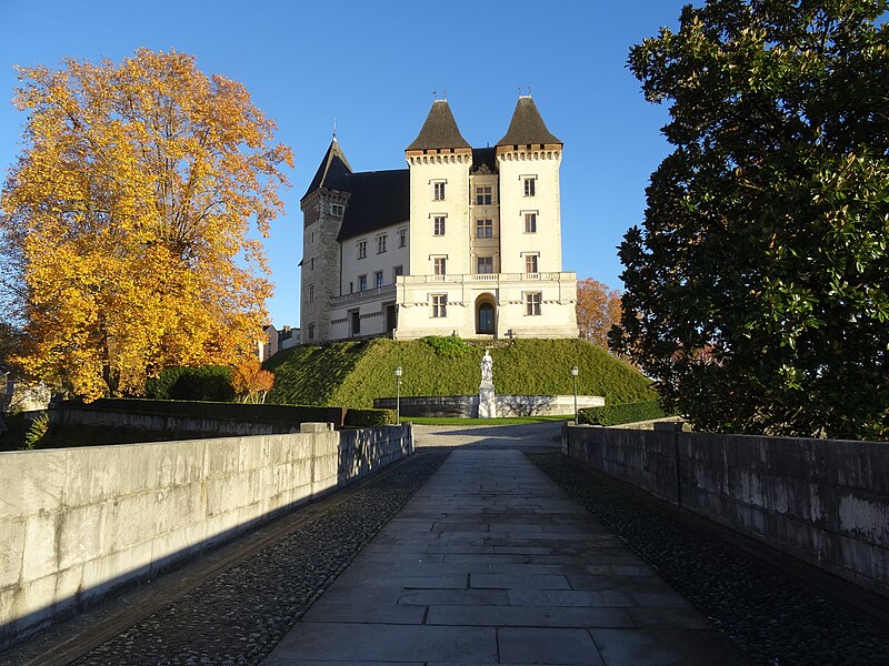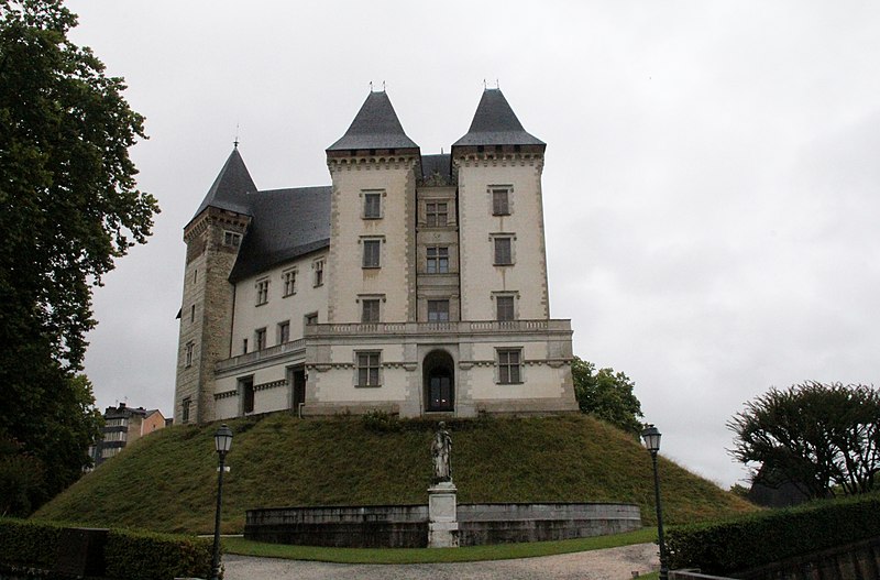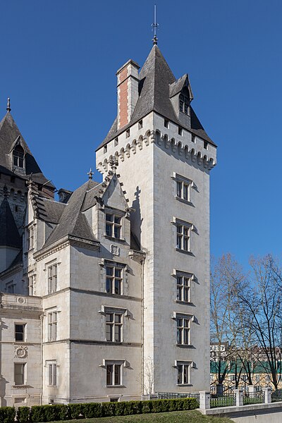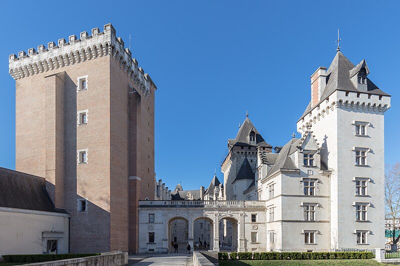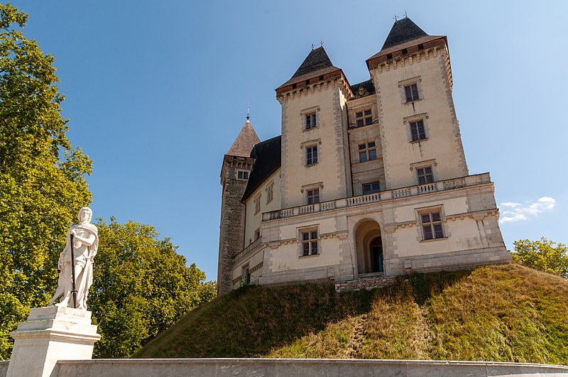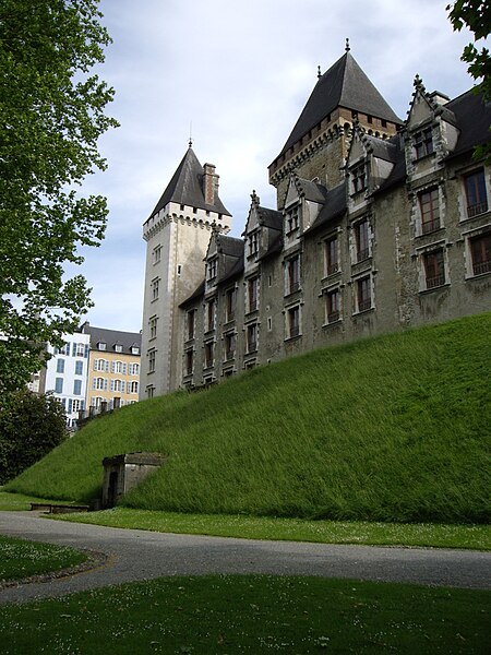 Le domaine national de Pau comprend le château et ses jardins, la Basse Plante et le parc. À l'origine il s'agit d'un poste fortifié, probablement édifié par les vicomtes de Béarn au XIIe siècle : les tours Mazères et Billère ainsi que les vestiges d'un donjon primitif datent de cette période et une mention écrite apparaît dès 1131. Par la suite furent ajoutées la tour Mazères, le premier donjon puis la tour Montauser, et la place forte évolua au fil des siècles. À la fin du XIIe siècle, le château passe aux comtes de Foix, puis, au XIVe siècle, il est profondément transformé par Gaston III dit Fébus qui fait notamment édifier une grande tour en brique (le donjon Gaston‑Fébus) et la tour du Moulin, aménage glacis, chemin de ronde et défenses. Pau devient capitale du Béarn, et le château occupe désormais un rôle stratégique et symbolique. Entre 1462 et 1472 Gaston IV modifie fortement l’édifice : il atténue son caractère martial, surélève et perche d'ouvertures certaines ailes, couvre les tours et installe le château au cœur du pouvoir béarnais en fixant la Cour majour à Pau. Aux XVIe siècle la résidence est remaniée dans le goût de la Renaissance par les souverains de Navarre — Henri d'Albret, Marguerite d'Angoulême, puis Jeanne d'Albret et Antoine de Bourbon — qui enrichissent aussi les jardins. Le château est le berceau d'Henri de Navarre, futur Henri IV, et les aménagements résidentiels et paysagers atteignent alors leur apogée. À partir du XVIIe siècle l'édifice se détériore progressivement ; à la Révolution il est en très mauvais état et sert de caserne, tandis que les jardins sont amputés de portions (Haute Plante, Vigne du Roi, jardin des Berceaux). Sous la Restauration des travaux d'urgence sont menés par l'architecte Latapie, puis, à partir de 1838, Louis‑Philippe commande une restauration plus ambitieuse confiée notamment aux architectes Lefranc et Abbadie, qui modifient des façades et ajoutent une tour à l'ouest. Napoléon III poursuit et complète les travaux au milieu du XIXe siècle avec la réalisation d'un péristyle, de la tour Napoléon III et d'un corps de logis encadrant le donjon. Classé monument historique en 1840, le château prend progressivement une vocation mémorielle et muséographique. Les jardins, largement dessinés au XVIe siècle, ont connu des pertes à la Révolution mais la Basse Plante et le Grand Parc furent restitués à la couronne sous la Restauration grâce à une société de citoyens. Depuis 1927 le château abrite le musée national qui conserve collections et souvenirs liés à Henri IV et à l'histoire locale, et attire aujourd'hui environ 100 000 visiteurs par an.