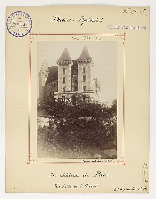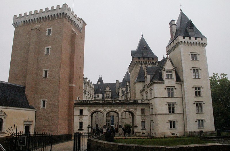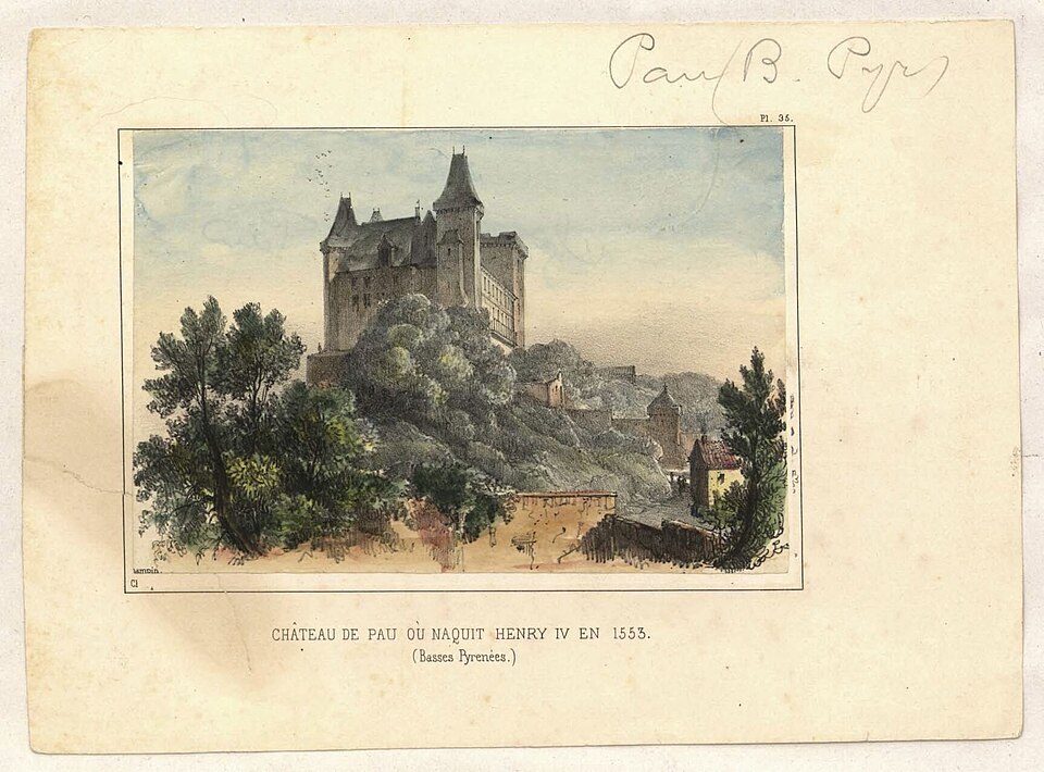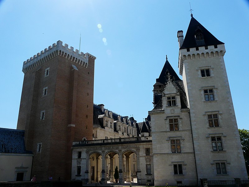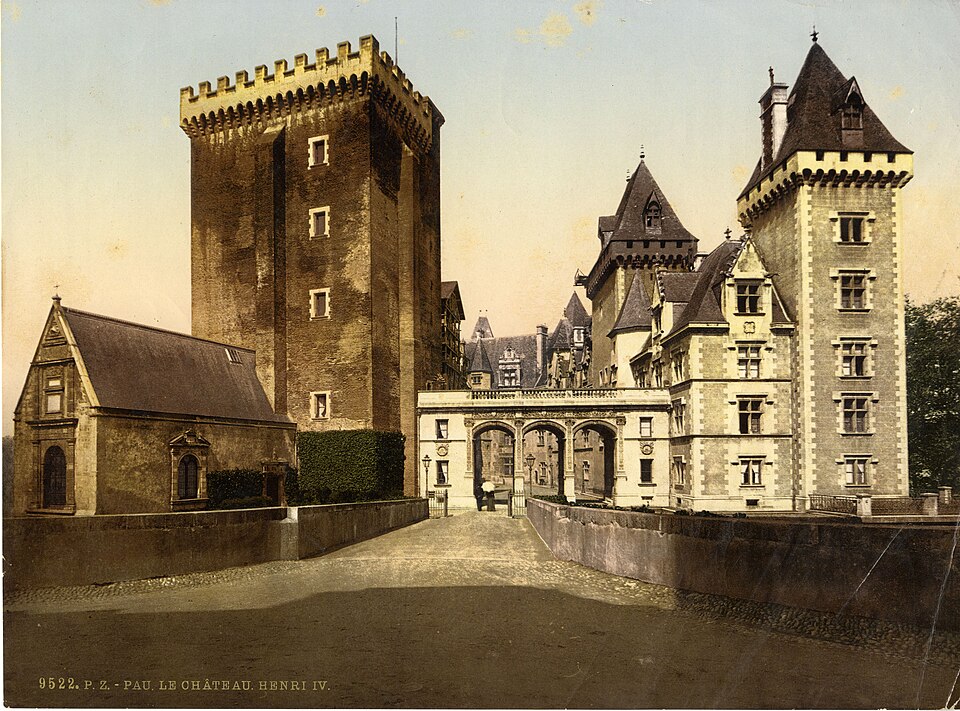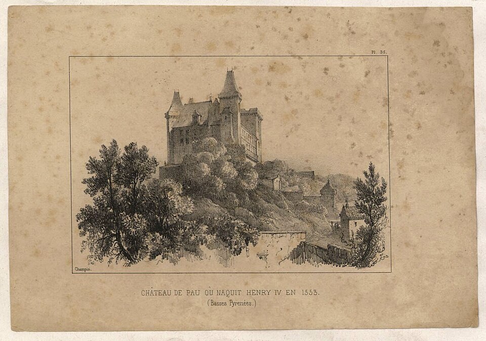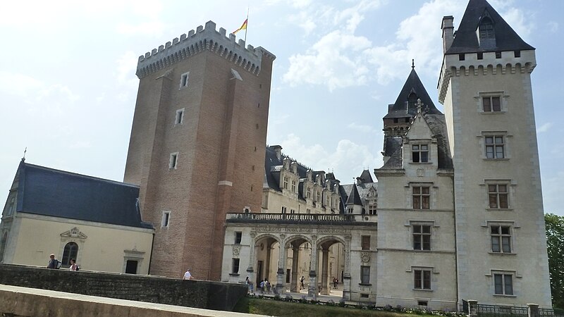 Le domaine national de Pau comprend le château et ses jardins, la Basse Plante et le parc. À l'origine il s'agit d'un poste fortifié, probablement édifié par les vicomtes de Béarn au XIIe siècle : les tours Mazères et Billère ainsi que les vestiges d'un donjon primitif datent de cette période et une mention écrite apparaît dès 1131. Par la suite furent ajoutées la tour Mazères, le premier donjon puis la tour Montauser, et la place forte évolua au fil des siècles. À la fin du XIIe siècle, le château passe aux comtes de Foix, puis, au XIVe siècle, il est profondément transformé par Gaston III dit Fébus qui fait notamment édifier une grande tour en brique (le donjon Gaston‑Fébus) et la tour du Moulin, aménage glacis, chemin de ronde et défenses. Pau devient capitale du Béarn, et le château occupe désormais un rôle stratégique et symbolique. Entre 1462 et 1472 Gaston IV modifie fortement l’édifice : il atténue son caractère martial, surélève et perche d'ouvertures certaines ailes, couvre les tours et installe le château au cœur du pouvoir béarnais en fixant la Cour majour à Pau. Aux XVIe siècle la résidence est remaniée dans le goût de la Renaissance par les souverains de Navarre — Henri d'Albret, Marguerite d'Angoulême, puis Jeanne d'Albret et Antoine de Bourbon — qui enrichissent aussi les jardins. Le château est le berceau d'Henri de Navarre, futur Henri IV, et les aménagements résidentiels et paysagers atteignent alors leur apogée. À partir du XVIIe siècle l'édifice se détériore progressivement ; à la Révolution il est en très mauvais état et sert de caserne, tandis que les jardins sont amputés de portions (Haute Plante, Vigne du Roi, jardin des Berceaux). Sous la Restauration des travaux d'urgence sont menés par l'architecte Latapie, puis, à partir de 1838, Louis‑Philippe commande une restauration plus ambitieuse confiée notamment aux architectes Lefranc et Abbadie, qui modifient des façades et ajoutent une tour à l'ouest. Napoléon III poursuit et complète les travaux au milieu du XIXe siècle avec la réalisation d'un péristyle, de la tour Napoléon III et d'un corps de logis encadrant le donjon. Classé monument historique en 1840, le château prend progressivement une vocation mémorielle et muséographique. Les jardins, largement dessinés au XVIe siècle, ont connu des pertes à la Révolution mais la Basse Plante et le Grand Parc furent restitués à la couronne sous la Restauration grâce à une société de citoyens. Depuis 1927 le château abrite le musée national qui conserve collections et souvenirs liés à Henri IV et à l'histoire locale, et attire aujourd'hui environ 100 000 visiteurs par an.