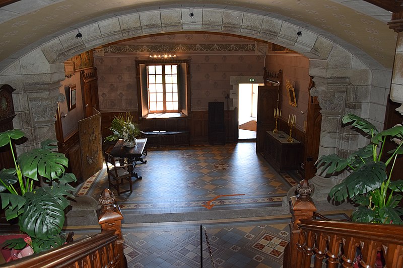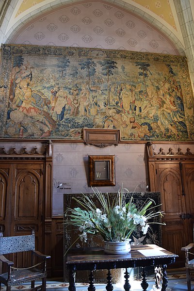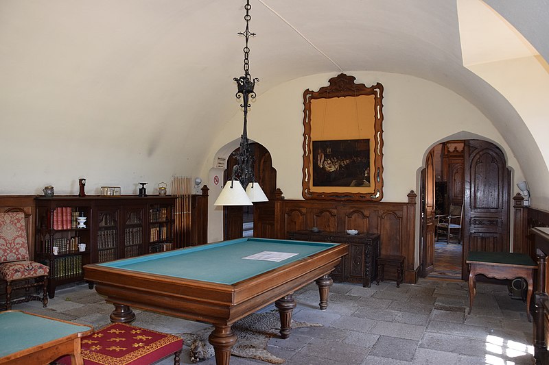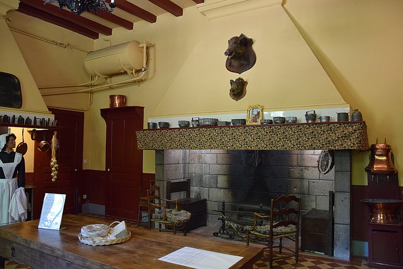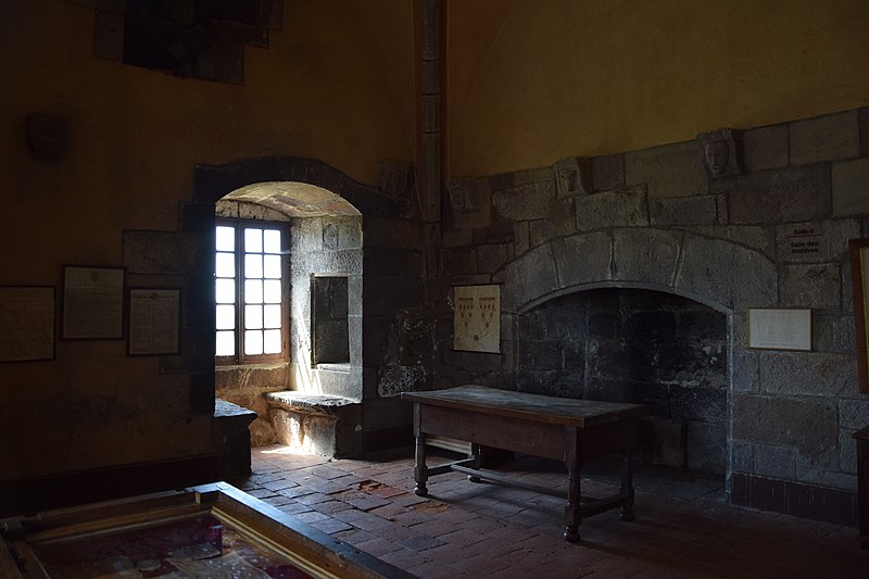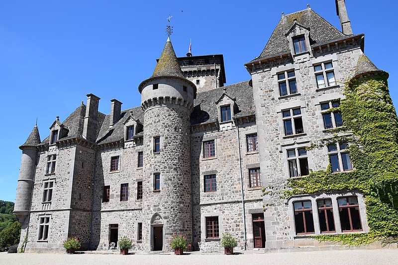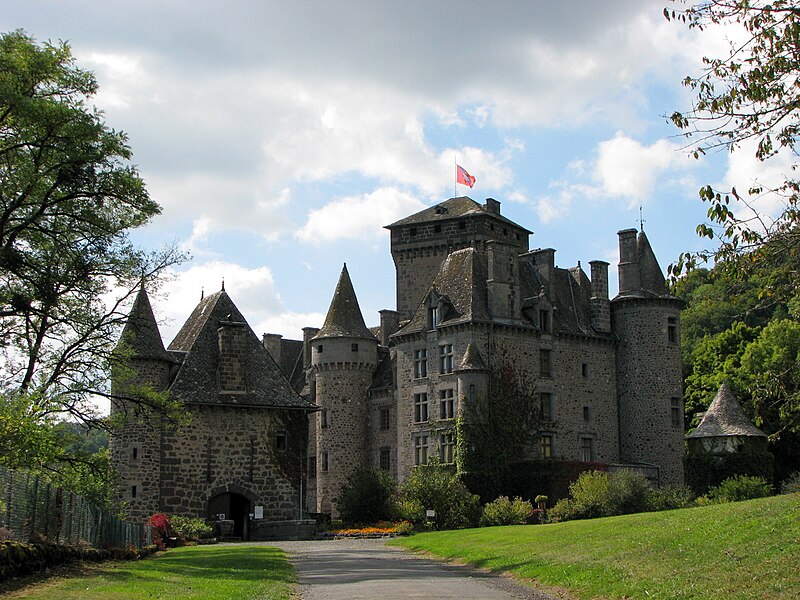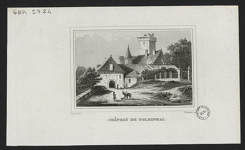 Le château fort de Pesteils, anciennement forteresse de Polminhac, se dresse sur un promontoire rocheux dominant le village de Polminhac et la vallée de la Cère, dans le Cantal. L’ensemble du bâtiment est classé au titre des monuments historiques depuis le 18 juillet 1994. Le donjon, haut de 40 mètres, date de la fin du Moyen Âge (XIVe‑XVe siècles) ; ses quatre premiers niveaux furent construits par Jean de Foulholes et l’ouvrage fut achevé au XVe siècle par Jean (ou Jacques) de Montamat, relié à un corps de logis de la même époque. Dans la seconde moitié du XVIIe siècle, la famille de Pesteils fit agrandir le corps de logis et ajouter un pavillon d’angle, puis la demeure connut des remaniements au XVIIIe siècle sous les Cassagnes de Beaufort de Miramon. À la fin du XIXe siècle, puis lors d’une restauration et d’un agrandissement menés en 1901‑1902 sur les plans de l’architecte aurillacois Émile Lemaigre et réalisés par l’entreprise Moussié d’Aurillac, le château prit l’essentiel de son plan actuel et reçut des décors intérieurs néo‑gothiques. Le hall d’entrée conserve un remarquable escalier à double révolution. Des fresques du XVe siècle situées dans le donjon ont été restaurées en 2008 (prix Sotheby’s) et des plafonds peints du XVIIe siècle, illustrant des scènes de la mythologie grecque, ornent deux chambres au premier étage du corps de logis. Une cuisine ancienne, restaurée en 2000, a reçu le prix La Cornue. Des peintures murales du premier quart du XXe siècle réalisées par Félix Tourdes (1855‑1920) sont classées au titre des objets depuis 1980. Le parc, redessiné au début du XXe siècle, comprend une terrasse en terre‑plein, un jardin potager et un verger ; il a été inscrit au pré‑inventaire des jardins remarquables. Sur le plan historique, le château a été impliqué dans les événements du début du XVe siècle lorsque Renaud de Murat ravagea le Carladez et prit plusieurs forteresses, dont Polminhac ; il mourut à Paris en 1418. La seigneurie passa par alliances : Hélène de Teissières l’apporta à Jean de Foulholes, puis Benoîte de Foulholes la transmit aux Montamat, Anne de Montamat l’apporta en 1510 à Guy V de Pesteils, et plus tard Camille de Pesteils la transmit en 1608 aux Cassagnes de Beaufort de Miramon, qui firent édifier le corps de logis de plaisance adjacent à la tour. Le château est ouvert à la visite depuis 1956 et présente, en plus des peintures, mobiliers et tapisseries, des saynètes mises en scène par une vingtaine de personnages de cire réalisés par le musée Grévin. Il a servi de décor pour le film L’Éternel Retour en 1942 et pour des scènes du film Le Hobbit : Le Retour du roi du Cantal de Léo Pons en 2014.