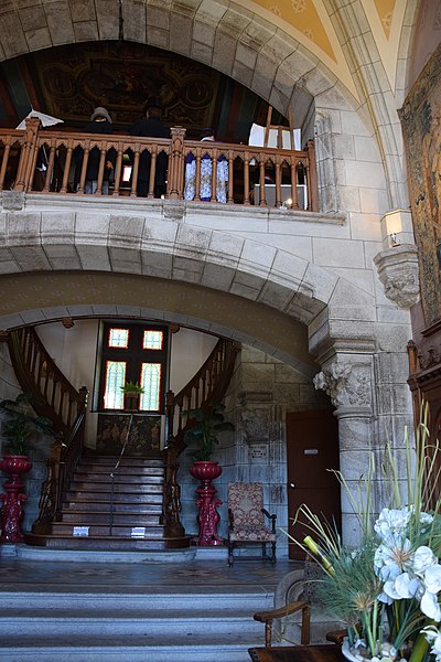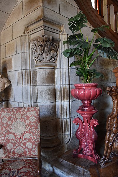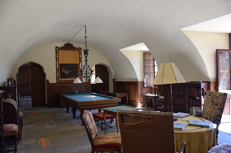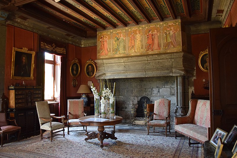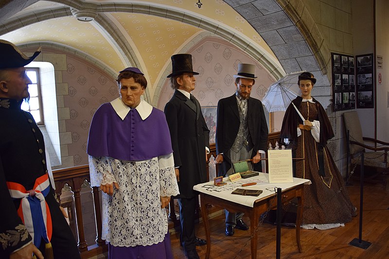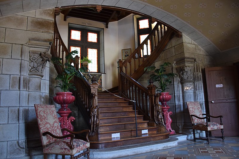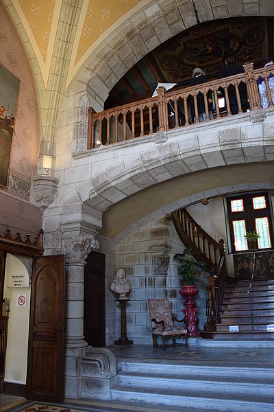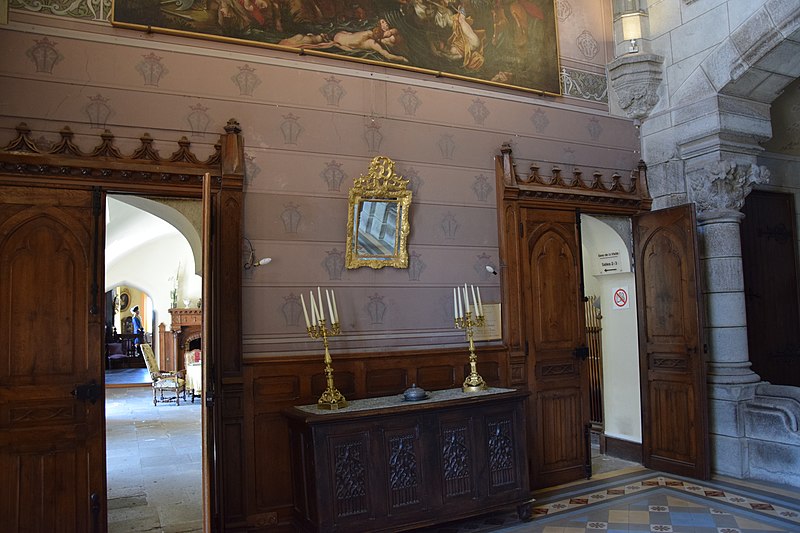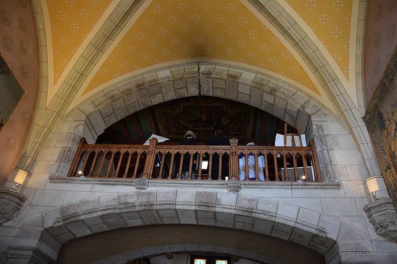 Le château fort de Pesteils, anciennement forteresse de Polminhac, se dresse sur un promontoire rocheux dominant le village de Polminhac et la vallée de la Cère, dans le Cantal. L’ensemble du bâtiment est classé au titre des monuments historiques depuis le 18 juillet 1994. Le donjon, haut de 40 mètres, date de la fin du Moyen Âge (XIVe‑XVe siècles) ; ses quatre premiers niveaux furent construits par Jean de Foulholes et l’ouvrage fut achevé au XVe siècle par Jean (ou Jacques) de Montamat, relié à un corps de logis de la même époque. Dans la seconde moitié du XVIIe siècle, la famille de Pesteils fit agrandir le corps de logis et ajouter un pavillon d’angle, puis la demeure connut des remaniements au XVIIIe siècle sous les Cassagnes de Beaufort de Miramon. À la fin du XIXe siècle, puis lors d’une restauration et d’un agrandissement menés en 1901‑1902 sur les plans de l’architecte aurillacois Émile Lemaigre et réalisés par l’entreprise Moussié d’Aurillac, le château prit l’essentiel de son plan actuel et reçut des décors intérieurs néo‑gothiques. Le hall d’entrée conserve un remarquable escalier à double révolution. Des fresques du XVe siècle situées dans le donjon ont été restaurées en 2008 (prix Sotheby’s) et des plafonds peints du XVIIe siècle, illustrant des scènes de la mythologie grecque, ornent deux chambres au premier étage du corps de logis. Une cuisine ancienne, restaurée en 2000, a reçu le prix La Cornue. Des peintures murales du premier quart du XXe siècle réalisées par Félix Tourdes (1855‑1920) sont classées au titre des objets depuis 1980. Le parc, redessiné au début du XXe siècle, comprend une terrasse en terre‑plein, un jardin potager et un verger ; il a été inscrit au pré‑inventaire des jardins remarquables. Sur le plan historique, le château a été impliqué dans les événements du début du XVe siècle lorsque Renaud de Murat ravagea le Carladez et prit plusieurs forteresses, dont Polminhac ; il mourut à Paris en 1418. La seigneurie passa par alliances : Hélène de Teissières l’apporta à Jean de Foulholes, puis Benoîte de Foulholes la transmit aux Montamat, Anne de Montamat l’apporta en 1510 à Guy V de Pesteils, et plus tard Camille de Pesteils la transmit en 1608 aux Cassagnes de Beaufort de Miramon, qui firent édifier le corps de logis de plaisance adjacent à la tour. Le château est ouvert à la visite depuis 1956 et présente, en plus des peintures, mobiliers et tapisseries, des saynètes mises en scène par une vingtaine de personnages de cire réalisés par le musée Grévin. Il a servi de décor pour le film L’Éternel Retour en 1942 et pour des scènes du film Le Hobbit : Le Retour du roi du Cantal de Léo Pons en 2014.