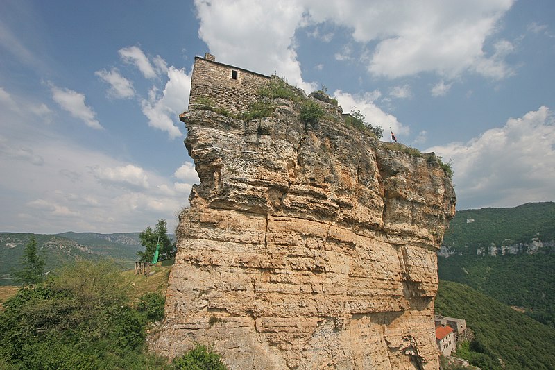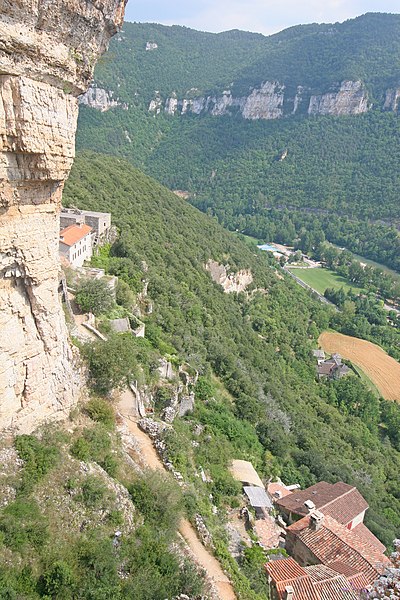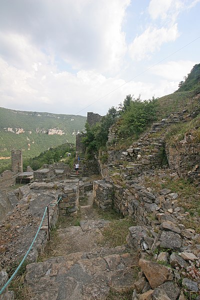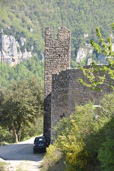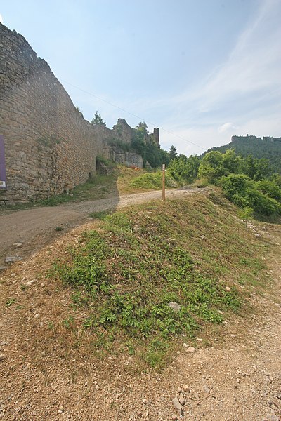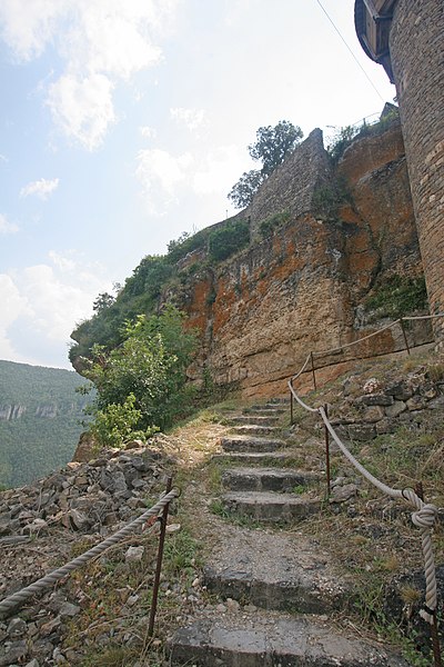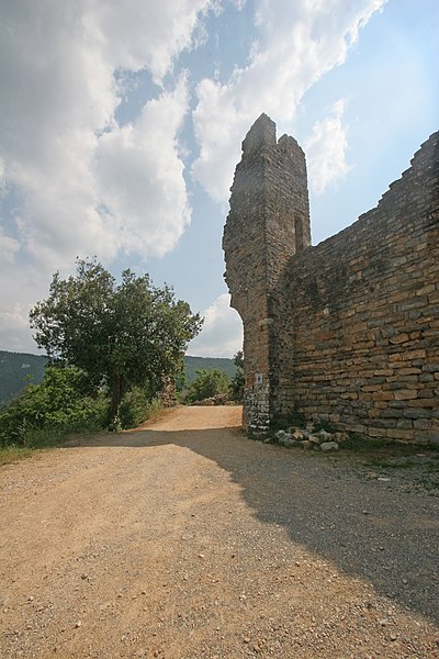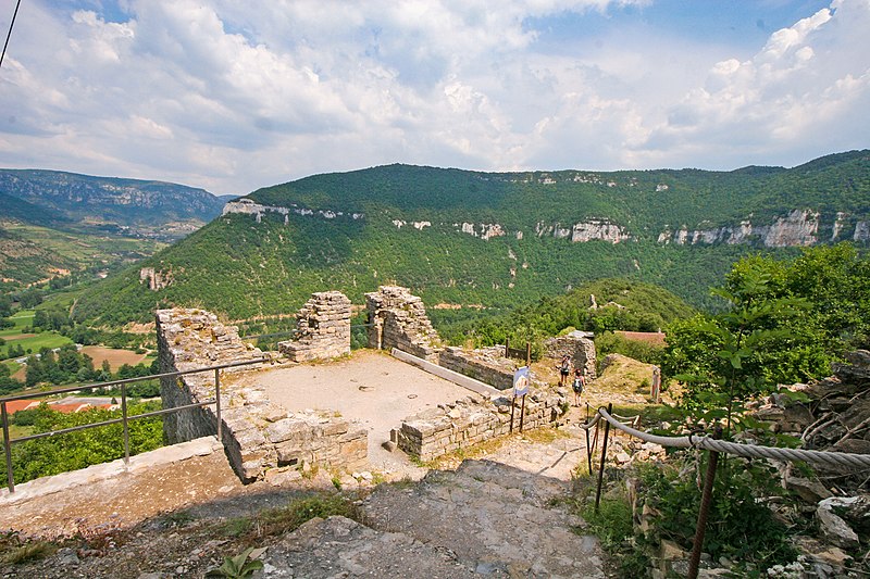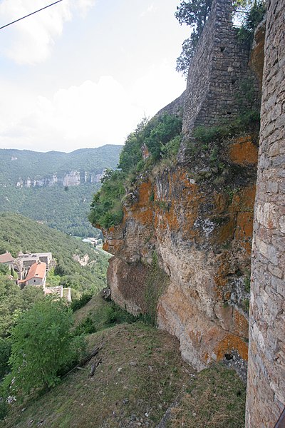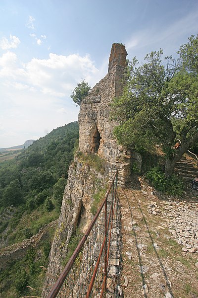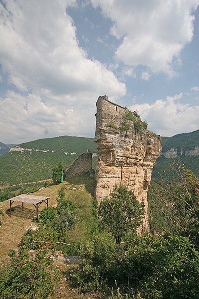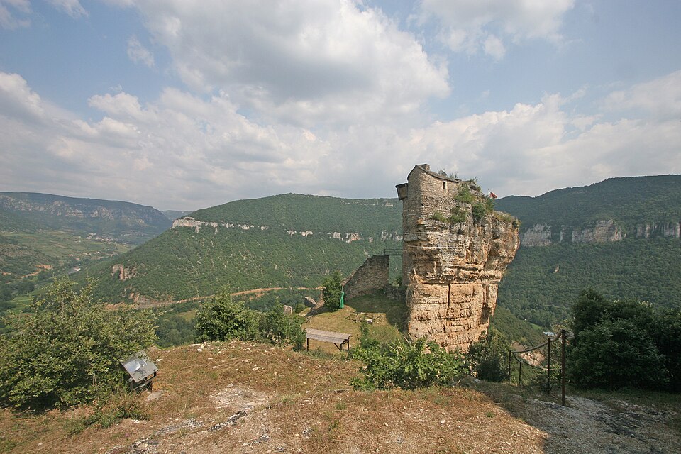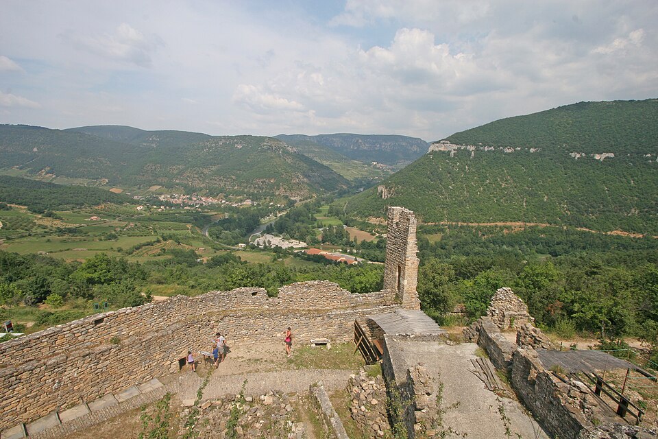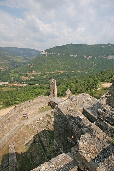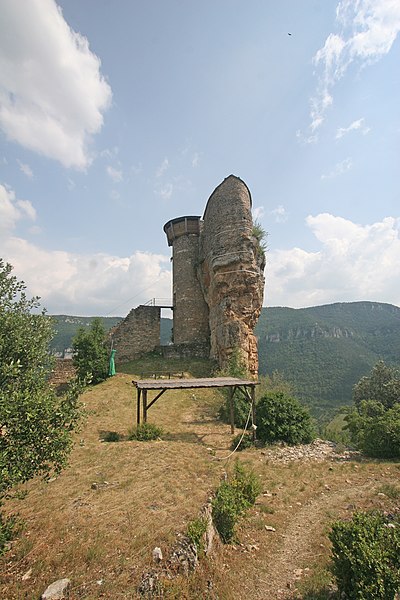 Le château de Peyrelade se dresse en ruines sur un éperon rocheux dominant la vallée du Tarn, à 1,5 km au nord-est de Rivière-sur-Tarn, dans l'Aveyron (Occitanie). Implanté aux XIe–XIIe siècles, il contrôlait l'entrée des Gorges du Tarn et fut l'une des forteresses les plus importantes du Rouergue. Sa position stratégique en fit le lieu de luttes et de sièges pendant le Moyen Âge et les conflits postérieurs, notamment la guerre de Cent Ans, les assaults des routiers et les guerres de Religion. Le château fut démantelé au XVIIe siècle ; les sources évoquent les années 1633 et 1663, cette dernière attribuée à un ordre de Richelieu. Les vestiges donnent une bonne idée de son organisation défensive : une enceinte extérieure de plus de 250 mètres de long, haute d'environ 10 mètres et large de 2,1 mètres. L'ensemble est dominé par un piton rocheux de plus de 50 mètres portant un donjon auquel est adossée une tour ronde. Les restes conservent les dispositifs défensifs du XVe siècle et témoignent d'une triple enceinte médiévale desservie par portes et accès successifs. On reconnaît les emplacements d'un corps de logis, d'une place d'armes, d'un pont-levis et d'installations comme un four, une citerne et un beffroi. Propriété de la commune de Rivière-sur-Tarn, Peyrelade a fait l'objet de fouilles et de travaux de restauration engagés depuis 1977 sous l'impulsion de Pierre Bloy. Ouvert au public depuis 1996, le site accueille des visiteurs chaque année de mai à septembre, avec visites libres ou guidées, scénographie et animations estivales. Le château figure à l'inventaire des monuments historiques depuis le 6 mars 1998. Il fait également partie de la Route des Seigneurs du Rouergue, un parcours touristique réunissant vingt-trois châteaux de l'Aveyron. La visite offre une vue remarquable sur le Tarn depuis la terrasse du donjon et permet d'observer la tour et le piton rocheux ainsi que les aménagements au pied du rocher. Pendant plusieurs siècles, la seigneurie fut partagée en coseigneurie entre de nombreuses familles féodales — parmi lesquelles Creyssel, Sévérac, Ricard, de Guitard, Brunel, Puel et Pelamourgue — et connut de fréquents changements de main. En 1589, la coseigneurie entra dans le domaine des rois de France.