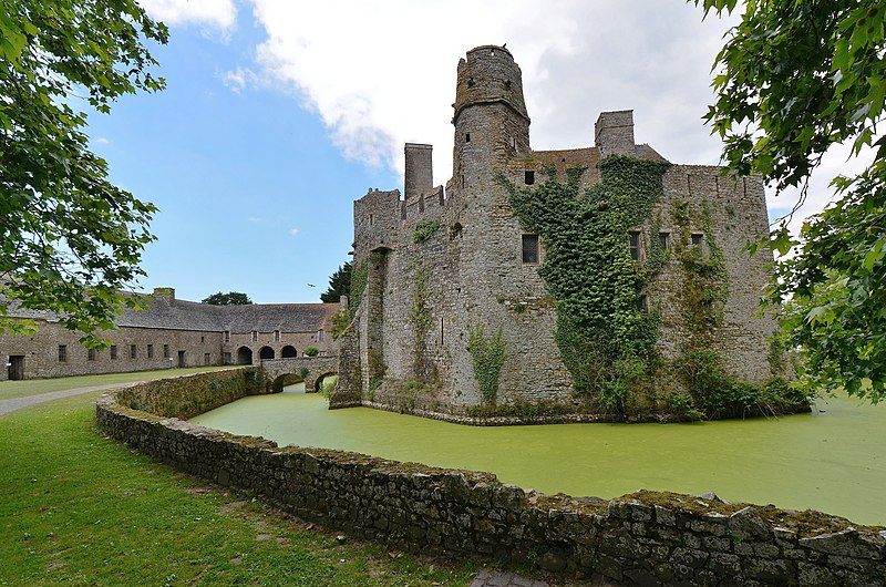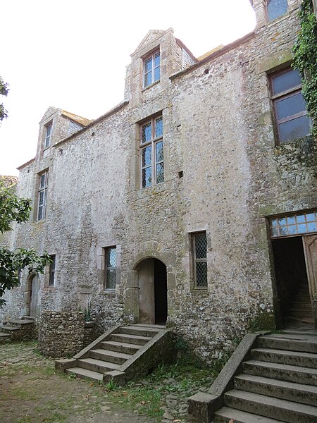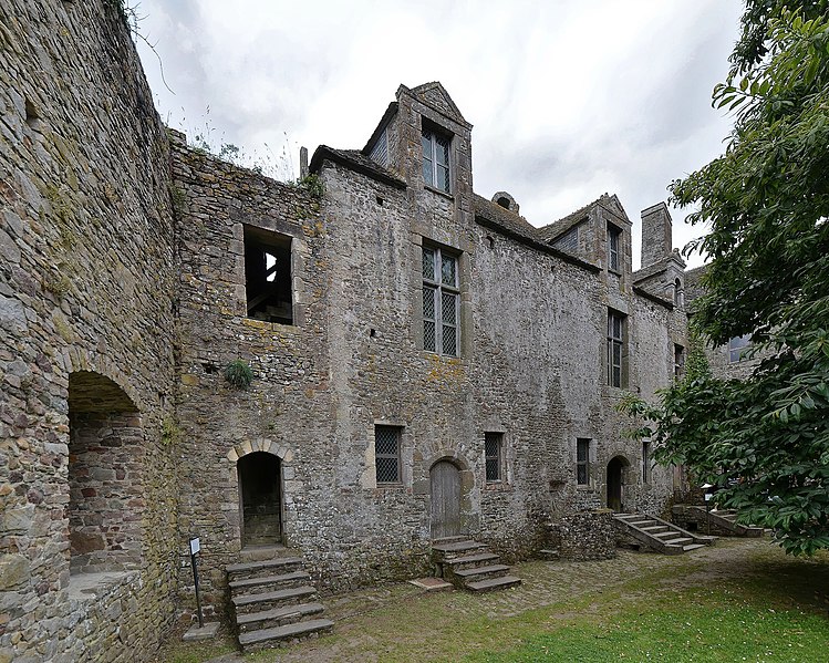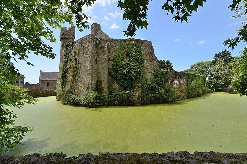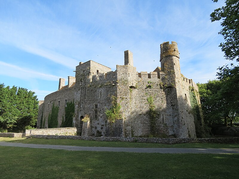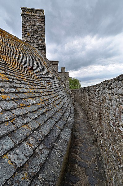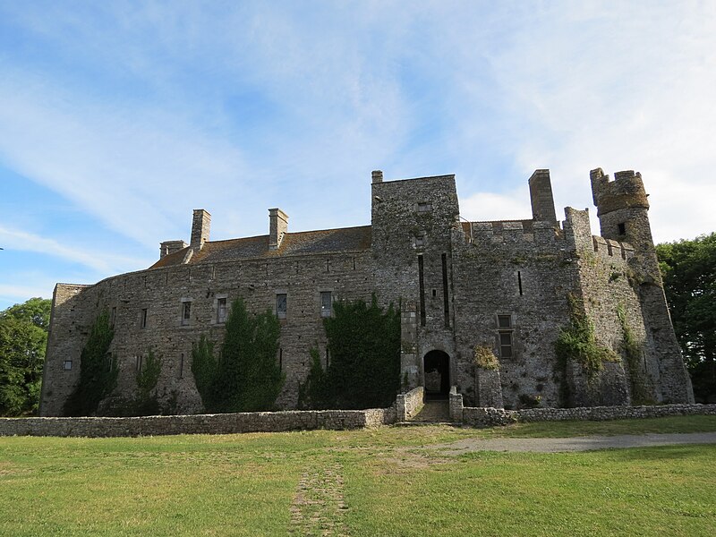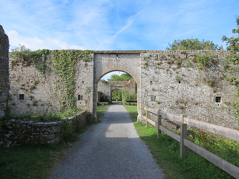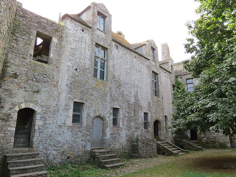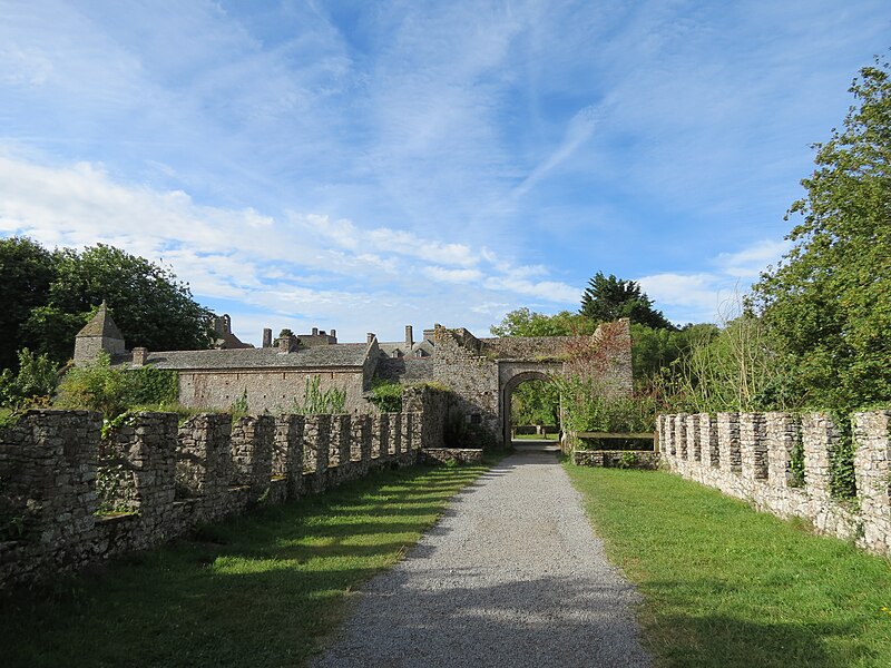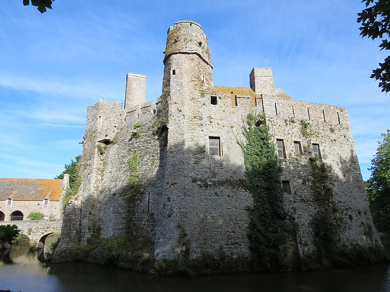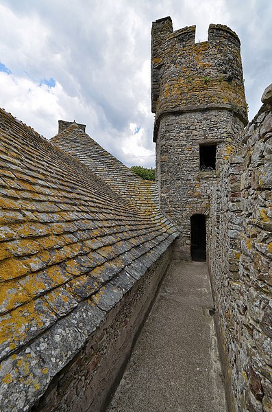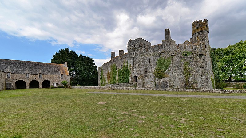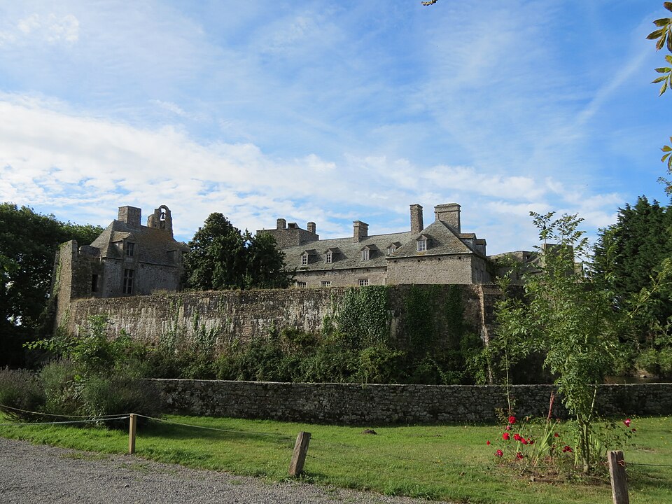 Le château de Pirou, situé sur la commune de Pirou en Cotentin (Manche, Normandie), est un ancien château fort fondé dans la seconde moitié du XIIe siècle et profondément remanié au XVIIe siècle ; ses vestiges dominent une petite hauteur entre deux havres aujourd’hui asséchés, à environ 2,2 kilomètres au sud de l’église Saint‑Martin. Édifié d’abord en bois puis en pierre autour d’un donjon aujourd’hui disparu, il se trouvait au centre d’un étang marécageux qui assurait sa défense, sur l’emplacement d’un retranchement viking. Les premiers seigneurs, appelés « de Pirou » et mentionnés dès 1066, comptent parmi les propriétaires initiaux ; le château du XIIe siècle est attribué à Guillaume de Pirou. Au fil des siècles la seigneurie passa par alliances et confiscations : Jean de Pirou au XIIIe siècle, la famille de La Haye par mariage en 1319, puis des bouleversements pendant la guerre de Cent Ans, avec occupation par les Anglo‑Navarrais en 1370 et une période de possession anglaise longue de trente‑huit ans. Les du Bois retrouvèrent la seigneurie en 1450 et la conservèrent jusqu’à la division du fief en 1650 entre deux héritières, l’une d’elles ayant épousé Gabriel de Vassy ; après un procès achevé en 1679, le marquisat revint aux de Vassy qui procédèrent à d’importants remaniements et restèrent propriétaires jusqu’à la Révolution. En 1789 le comte Alexandre de Vassy est seigneur ; la seigneurie fut alors acquise par Charles‑Louis Huguet de Sémonville, qui fit de Pirou une simple ferme, puis la propriété passa successivement aux familles Quesnel de La Morinière, Michel d'Annoville et Sohier. Transformé en ferme à la fin du XVIIIe siècle, le monument se dégrada jusqu’à son rachat en 1966 par l’abbé Marcel Lelégard (1925‑1994), qui mena une vaste campagne de restauration entre 1968 et 1994 et légua le site à la fondation « Abbaye de La Lucerne » qu’il avait créée en 1981. Les façades, les toitures et les abords du château sont inscrits au titre des monuments historiques par arrêté du 4 juillet 1968. Construite en shell‑keep sur une plate‑forme entourée d’un étang artificiel, l’enceinte a un plan concentrique couronné de tourelles polygonales en encorbellement qui annoncent les mâchicoulis des siècles suivants. L’accès se faisait après le franchissement successif de trois douves et de portes défensives — trois des cinq portes originelles subsistent partiellement — puis par une série d’ouvrages d’entrée conçus pour exposer les assaillants. Le pont‑levis principal, dont on conserve encore les rainures dans la façade, a été remplacé au XVIIe siècle par un pont dormant en pierre à deux arches ; une tour carrée du XVe siècle commandait cet accès vers la cour intérieure. À l’intérieur de l’enceinte polygonale, qui comportait à l’origine six tourelles, les habitations étaient adossées au mur du donjon ; on y voit aujourd’hui une tour du XVe siècle et deux logis en équerre, l’un oriental avec portes cintrées et une petite lucarne sculptée de style Henri IV, l’autre, dit « logis neuf », de style classique et bâti en 1708 par la famille de Vassy. Les murs orientaux datent en grande partie du XIIIe siècle ; certains secteurs atteignent trois mètres d’épaisseur et sont percés d’archères, appuyés sur des contreforts surmontés de tourelles et d’encorbellements. Le château a conservé des améliorations des XIVe‑XVe siècles et des éléments issus des reconstructions du XVIIe siècle, mais le logis médiéval a été partiellement démoli avant la Révolution et des transformations postérieures y ont été apportées. La basse‑cour abrite plusieurs bâtiments seigneuriaux, parmi lesquels la chapelle Saint‑Laurent reconstruite au XVIIe siècle et renfermant des statues des XVe et XVIe siècles, la salle des Plaids, un pressoir, une charreterie et une boulangerie. Le site est aussi lié à la légende des oies de Pirou, selon laquelle un enchanteur aurait métamorphosé en oies le seigneur et sa famille pour les soustraire à un siège ; au retour un an plus tard, le grimoire ayant été détruit dans l’incendie du château, la formule n’aurait pu être lue, ce qui expliquerait la migration annuelle des oies dans le Cotentin. Cette légende a inspiré en 2006 une comédie musicale créée par les associations Magène et Hagdik, présentée au château de Flamanville faute d’espace suffisant à Pirou. Parmi les éléments à découvrir lors de la visite figurent la boulangerie, le pressoir, la chapelle, la salle des Plaids avec ses expositions saisonnières, la « Telle du Conquest » — tapisserie en laine sur toile de lin réalisée dans le dernier quart du XXe siècle d’après des esquisses de l’abbé Lelégard par Thérèse Ozenne, inachevée et mesurant 58 mètres — ainsi que le vieux logis, le chemin de ronde, les mâchicoulis et le parapet percé d’archères. Le château est ouvert au public tous les jours sauf le mardi, de l’arrivée des beaux jours jusqu’au 30 septembre.