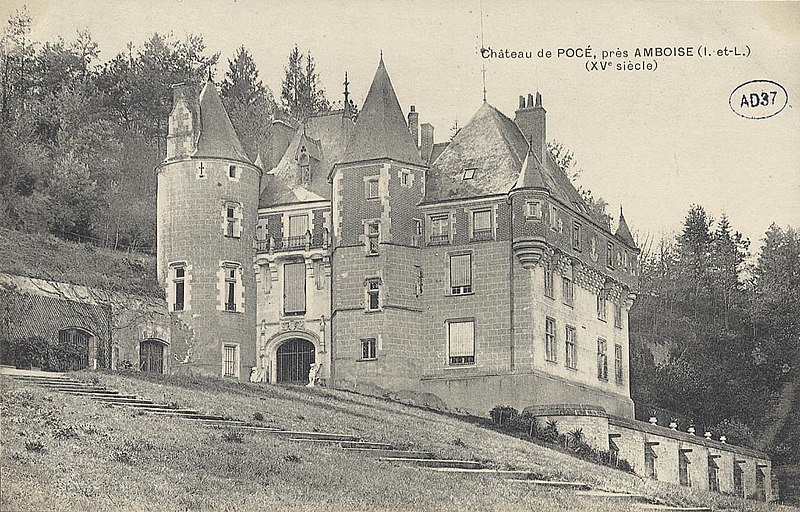 Le château de Pocé-sur-Cisse est un édifice dont la construction remonte à la fin du XVe siècle. Au XIIIe siècle, la châtellenie dépendait de Rochecorbon ; la famille de Chauvigny la vendit à Jean III de Bueil au XIVe siècle. La famille de Bueil fut propriétaire du lieu : Jean V de Bueil, comte de Sancerre et amiral de France, puis son fils Antoine, qui épousa Jeanne de France, y sont évoqués. En 1609, Pocé fut saisie et adjugée à André Dubecq, seigneur de Verdes ; en 1661, François-René Dubecq céda le domaine à Thomas Bonneau. Le château passa ensuite successivement à Dominique Chaufourneau (1691), à Louis Pelluys (1703), à Jeanne Soulas (1714), épouse de René de Cop, trésorier de France à Tours, puis à Jean de Cop, au comte de Milon de Mesme (1783) et à la marquise de Bridieu (1790). Vendu comme bien national, il revint au maître de forges Armand Moisant. En 1823, par ordonnance du roi Louis XVIII, il obtint l'autorisation de construire une usine à fer sur le ruisseau du moulin de Pocé. En 1829, le gendre qui avait acquis le domaine le revendit à Jean-Jacques Ducel et Paulin Viry, qui installèrent une fonderie dont les bâtiments, situés sous le château, ont depuis disparu. À la fin du XIXe siècle, le domaine fut réorganisé et le château restauré pour un usage d'agrément ; la partie arrière de l'édifice est neuve. Les tours de la façade sud, ainsi que la façade est avec son chemin de ronde et ses deux tourelles en encorbellement, sont d'origine. Le parc, dessiné à l'anglaise, est orné de statues en fonte provenant de l'ancienne fonderie Ducel. Mme Julian Bertrand acquit le domaine en 1889 et, sans enfant, le légua en 1924 à la Fondation Julian-Bertrand pour l'enfance abandonnée. Le château est inscrit au titre des monuments historiques par arrêté du 29 octobre 1937 et son parc est classé par arrêté du 23 février 1942.