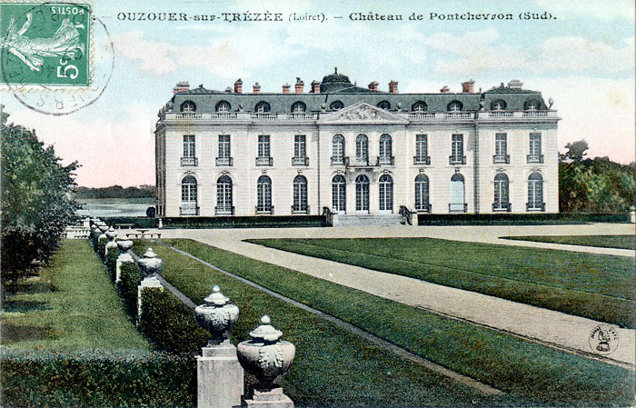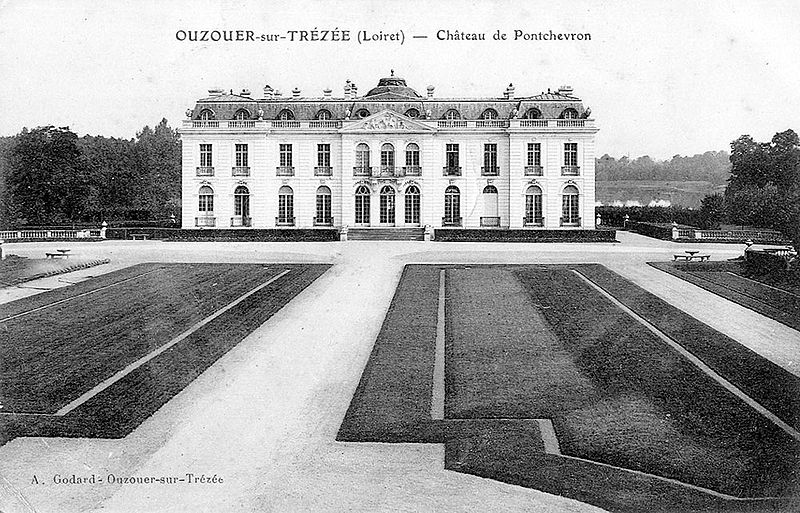 Le château de Pont-Chevron est un édifice néo-classique situé à Ouzouer-sur-Trézée, sur la rive droite de la Loire, à l'est de Gien et au nord de Briare. Un château médiéval s'élevait autrefois sur une petite île au milieu de l'étang ; il a été démoli au début du XIXe siècle et il ne subsiste de celui-ci qu'un pont en pierre à deux arches reliant l'île à la rive. La reconstruction moderne, réalisée pour le comte Louis d'Harcourt, a été confiée en 1896 aux architectes Coulomb et Chauvet et achevée en 1900. Le château appartient actuellement à la famille de La Rochefoucauld. Deux mosaïques gallo-romaines du IIe siècle, sans doute issues de thermes, ont été découvertes en 1962 au bord des marais et ont fait l'objet d'études approfondies, suscitant notamment des interrogations sur l'identité d'un portrait figuré. De 1946 à la fin des années 1960, le parc a été mis à disposition des Scouts de France pour des camps estivaux. Un musée consacré à la construction du château et aux mosaïques a été ouvert en 1983 et partiellement réaménagé en 2008 pour accueillir un public plus large. Le site est partiellement classé au titre des Monuments historiques depuis le 21 mai 1987 ; le classement porte sur les façades et toitures du château, des communs et du pavillon d'entrée, ainsi que sur l'entrée, la cage d'escalier, la salle à manger du rez-de-chaussée de la rotonde et la cheminée du salon. Amélie d'Orléans y a séjourné dans les années 1910, de même que Valéry Giscard d'Estaing avant sa présidence. L'édifice se compose d'un corps de logis allongé, percé au nord d'une rotonde ovale en demi-hors-œuvre formant un avant-corps central. Les communs ont un plan rectangulaire ponctué d'un avant-corps central au sud ; un vaisseau central distribuait les remises à voitures et les écuries. Deux ailes en quart de cercle, disposées de part et d'autre et en vis-à-vis du château, se terminent par deux pavillons, celui de l'ouest abritant la chapelle. Le décor de façade se concentre surtout sur les frontons, mais il se retrouve aussi ailleurs : des clefs sculptées en forme d'agrafes et des guirlandes de fleurs soulignent les baies, tandis qu'un bossage en table anime le pavement des trumeaux. Une balustrade court tout autour de l'édifice. À l'intérieur, le hall d'entrée présente un décor architecturé en écho aux façades ; la salle à manger montre une gypserie peinte en faux marbre et le salon est orné de panneaux sur toile représentant des animaux. Le domaine comprend des jardins à la française, un jardin potager, une roseraie et un étang de 27 hectares, où subsistent des vestiges du château fort primitif.