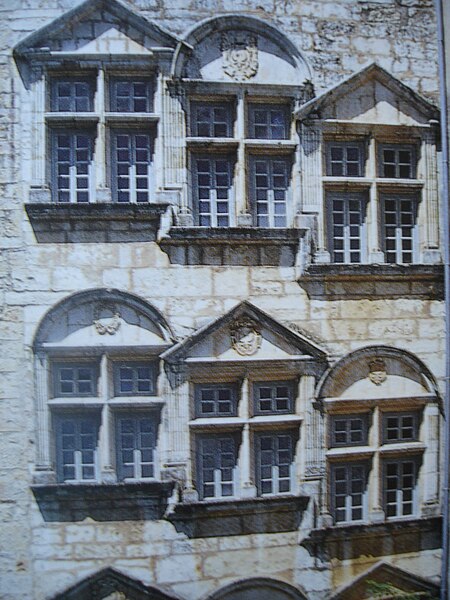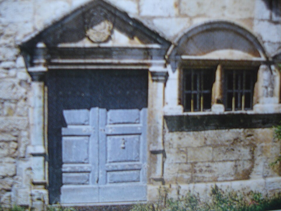 Au nord, une porte donne sur une cour bordée à l'ouest par un bâtiment en pierre postérieur à 1843 et à l'est par un bâtiment en partie reconstruit sur des murs médiévaux.