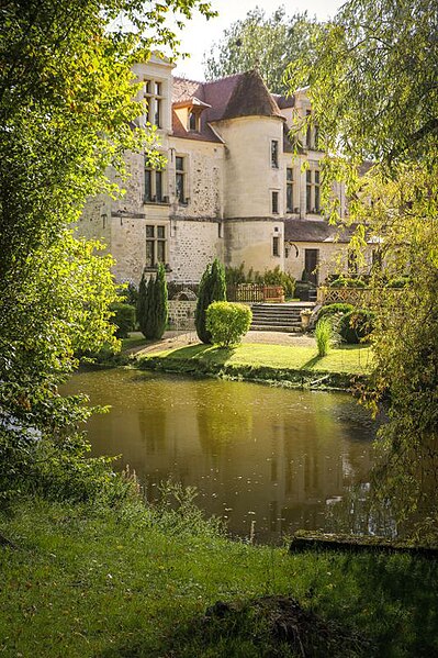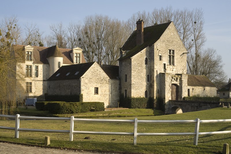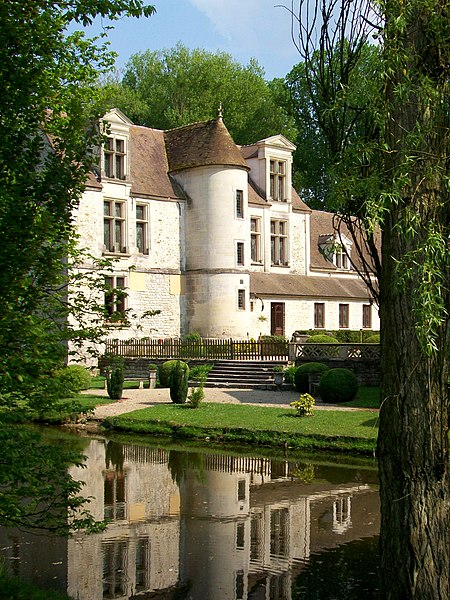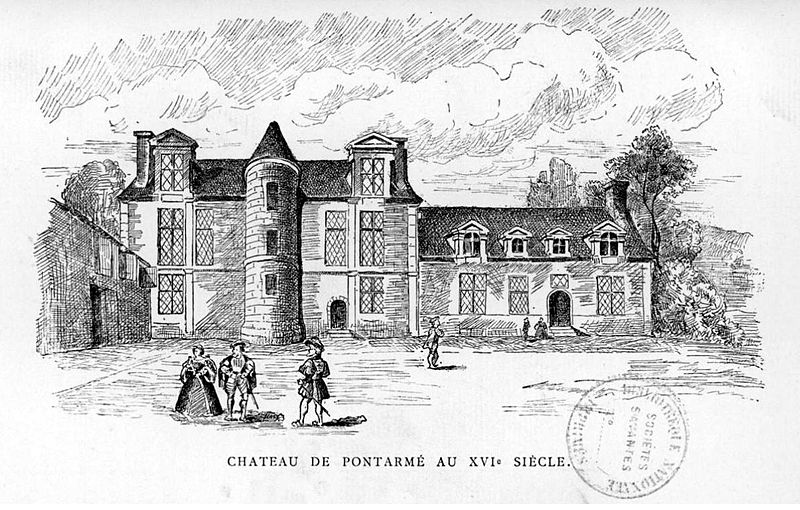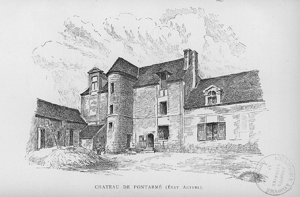 Le château de Pontarmé, situé sur la commune de Pontarmé dans l'Oise, s'élève à la sortie nord du village, près de la RD 1017, au bord de la forêt de Chantilly ; sa façade principale et sa porte fortifiée sont orientées à l'ouest sur les prairies de la vallée de la Thève et la petite rivière alimente encore les douves qui forment une île presque carrée autour de l'ensemble. Les façades et toitures de la porte fortifiée, le pont sur les douves lui faisant face et l'ensemble des douves ont été inscrits au titre des monuments historiques par arrêté du 6 octobre 1986. Les premières mentions de la seigneurie remontent au XIIe siècle lorsque Pontarmé appartient à la famille des Bouteillers de Senlis, dont le suzerain est l'évêque de Senlis. Selon Philippe Seydoux, les Bouteillers auraient fondé le château au XIIIe siècle, mais la seigneurie change rapidement de mains : Thibaud de Beaumont l'obtient par mariage avec Jeanne la Bouteillière et, après plusieurs transmissions et ventes au cours des XIVe et XVe siècles, elle passe notamment entre les mains de Robert de Lorris, puis de la famille Lorfèvre. Un acte de 28 mai 1414 mentionne le château comme « un bel hostel notable » avec ses dépendances, granges, jardins et fossés. Démantelé en 1431 à la demande des habitants de Senlis, qui le dénonçaient comme repaire de brigands, le site est reconstruit et transformé au fil des siècles. Au début du XVIe siècle, Bertrand et Valentine Lorfèvre semblent avoir élevé l'édifice actuel sur les vestiges du château démantelé en 1431, l'usage principal étant alors la chasse dans la forêt environnante. Les parts de la seigneurie sont vendues au connétable Anne de Montmorency entre 1543 et 1545, et la seigneurie de Pontarmé reste incorporée au domaine de Chantilly sous les ducs de Montmorency puis les princes de Condé jusqu'à la Révolution française. Un état des lieux de 1632 décrit le logis, des écuries, un donjon sur la porte et un pont-levis, signe d'importantes transformations et réparations antérieures. Sous les Montmorency et les Condé, le logis sert essentiellement de relais de chasse et les communs sont exploités comme ferme ; à une date incertaine, probablement après la Révolution, le logis perd son caractère résidentiel et fonctionne comme bâtiment d'exploitation jusqu'en 1910, date à laquelle de nouveaux propriétaires le restaurent et lui redonnent une vocation résidentielle. Le château se compose de plusieurs bâtiments disposés autour d'une cour rectangulaire, mais seuls la porte fortifiée à l'ouest et le long logis orienté à l'est présentent un intérêt archéologique et historique. Une aile nord figurant sur le plan de 1764 a disparu ; d'autres éléments ont été remaniés ou reconvertis et certains aménagements datent du XXe siècle, réalisés lors de la réaffectation de la ferme en résidence. Le logis a perdu ses fenêtres à meneaux d'origine ; sa partie nord, à un étage, est précédée côté cour d'une tourelle d'escalier en fer à cheval et reste le seul secteur bâti entièrement en pierre de taille, bien que seules les premières assises soient anciennes. Deux des trois grandes lucarnes à fronton triangulaire ont été entièrement reconstituées, et la façade sud du logis, sans étage, est masquée côté cour par une galerie récente qui dénote par rapport au style général. Le toit présente des lucarnes en bâtière et plusieurs autres côtés douves, et la discontinuité des moellons révèle les portions reconstruites et les mutilations subies lorsque le bâtiment servait de ferme. À l'intérieur, le rez-de-chaussée et l'étage contiennent chacun deux salles chauffées par des cheminées, séparées par un cabinet ; malgré un aspect d'ensemble authentique, ces parties résultent en grande partie d'une reconstitution d'inspiration XVIe siècle, raison pour laquelle le logis complet n'a pas été retenu pour l'inscription aux monuments historiques. La porte fortifiée, précédée d'un pont de pierre qui a remplacé le pont-levis, présente une porte cochère en anse de panier surmontée de mâchicoulis et flanquée de deux piles ; côté cour, le porche s'ouvre sous un arc en tiers-point et l'étage abrite une chambre éclairée par deux grandes fenêtres à meneaux, dont l'une remonte au moins à la Renaissance. De petites fenêtres rectangulaires ou en arc brisé, un colombier aménagé sous les combles, des barbacanes et une annexe en appentis complètent l'ensemble, tandis que des moulures encadrent certaines ouvertures. Plusieurs salles du château sont proposées à la location pour des réceptions, fêtes et séminaires. Le château a servi de lieu de tournage en 1942 pour le film Le Baron fantôme de Serge de Poligny. Enfin, il a accueilli récemment un établissement scolaire privé Montessori qui, fondé par une ancienne membre du groupe musical Les Brigandes et proche de mouvements d'extrême droite selon les sources, a été fermé par la préfecture de l'Oise en octobre 2023.