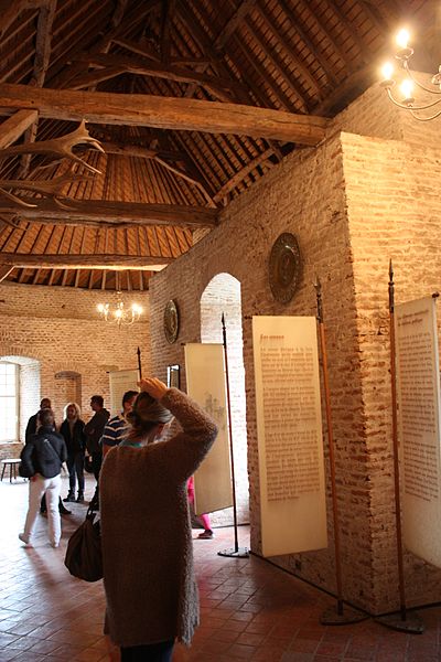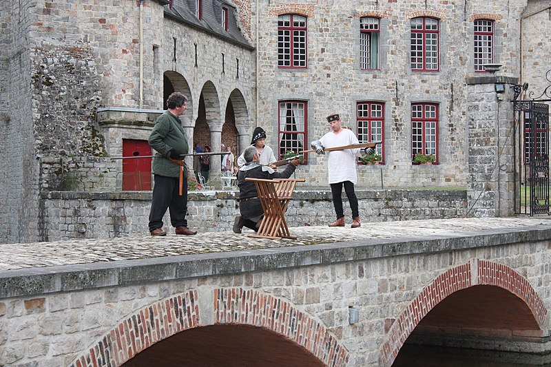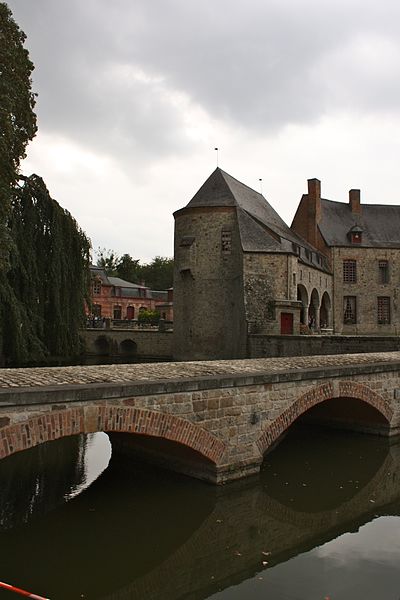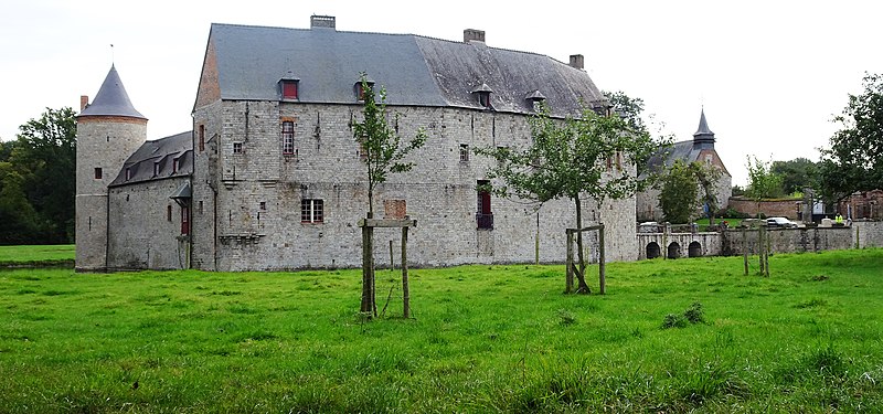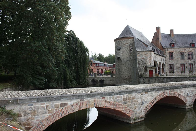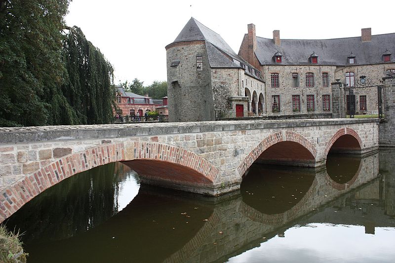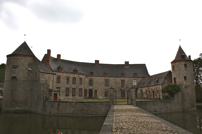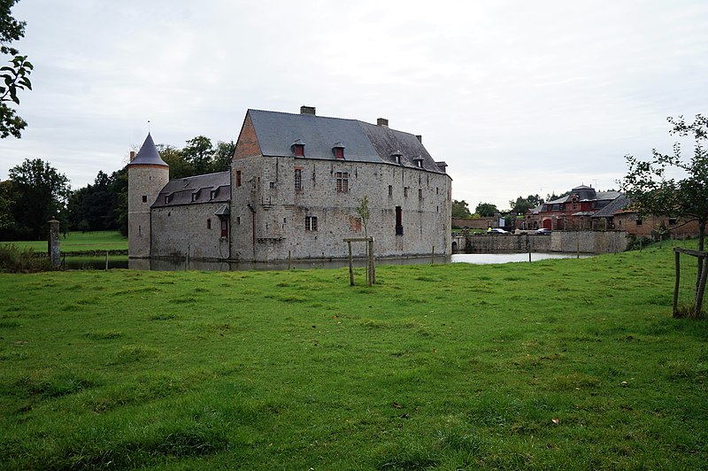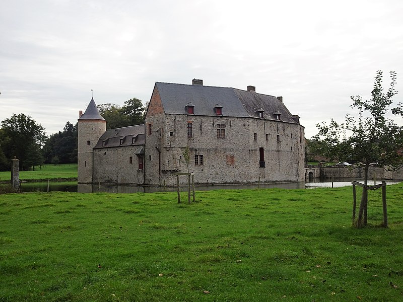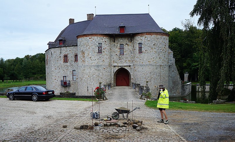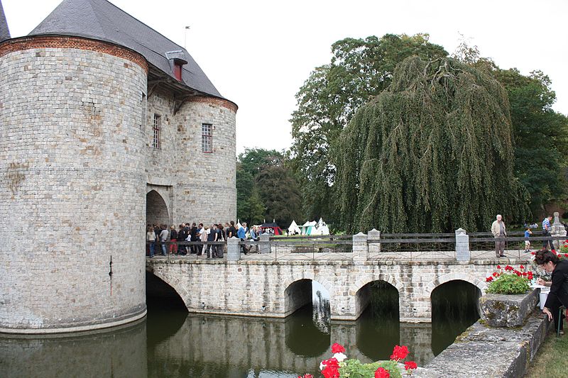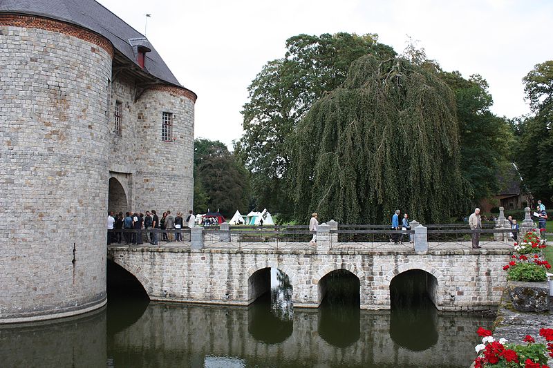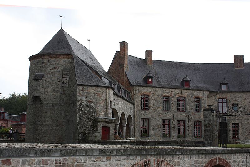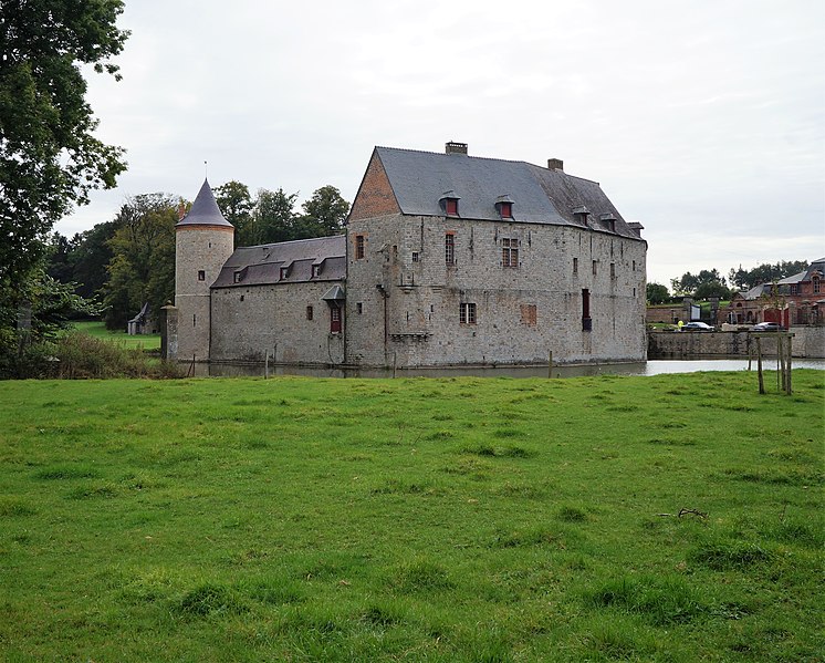 Le château de Potelle est un château-fort féodal situé dans la commune de Potelle (Nord) ; le château et sa chapelle, située à l'extérieur des douves, sont inscrits au titre des monuments historiques depuis le 19 janvier 1944. Ancienne place forte du Hainaut, il aurait été bâti vers 1290 par Willes (Gilles) de Mortagne, seigneur de Potelles, dont un fragment de pierre tombale subsiste dans la chapelle. Il figura parmi les chevaliers partis en 1326 en Angleterre soutenir la cause d'Isabelle de France et du futur Édouard III. Gilles II de Mortagne, dit de Potelles, fut écartelé à Mons en 1433 ; ses biens furent confisqués et les terres de Potelle passèrent, au terme des événements de cette année, à Antoine de Croÿ. Dès 1436, Potelle fut racheté par Jeanne de Hennin, sœur du supplicié. En 1491, Antoine de Mortagne vendit Potelles à Jean Carondelet, grand chancelier de Flandres et de Bourgogne, qui entreprit des restaurations ; il avait déjà acquis le château de Solre-sur-Sambre vers 1480. L'escalier en pierre bleue du XVe siècle porte les armes de Jean Carondelet. Son petit-fils Ferry Carondelet et son épouse Catherine d'Esnes transformèrent et embellirent l'édifice, notamment par l'ouverture d'une élégante galerie à arcades sur la cour arrière, dont une colonne porte la date de 1541 et leurs armoiries. Ferry Carondelet eut une carrière notable au service de Marguerite d'Autriche et un grand tombeau dans la cathédrale Saint-Jean de Besançon. Le château fut à plusieurs reprises dévasté et incendié par les guerres, mais il fut constamment rétabli sur ses anciennes murailles. En 1817, le chanoine de Carondelet fit restaurer le château puis le donna à sa nièce Eugénie Adélaïde de Carondelet, épouse de Jean-Philippe Fremin du Sartel. La robustesse de sa maçonnerie en grès taillé a permis de préserver l'essentiel de son caractère médiéval. Protégé par de très larges douves alimentées par des sources et traversées par la Rhonelle, son enceinte polygonale irrégulière, renforcée de tours cylindriques, conserve de gros murs extérieurs percés de nombreuses meurtrières bouchées et de fenêtres à meneaux. L'entrée, à l'origine précédée d'un pont-levis et défendue par une herse et un assommoir, est prise entre deux tours rondes percées de longues archères élargies ultérieurement pour l'usage des armes à feu. Les anciennes dépendances du fond de cour perdirent leur étage après l'incendie de 1640. La tour ronde attenante renferme une prison en cul-de-basse-fosse, accessible par un œil au centre de la voûte et munie de latrines donnant dans les douves sous le niveau de l'eau. Une petite tour en encorbellement, d'abord cylindrique puis quadrangulaire, se prolongeait par une haute guette détruite en 1793. La destruction de cette tour et de la galerie faisant face au corps de logis permit, au début du XVIIIe siècle, d'ouvrir plus largement la cour sur le parc. Le châtelet d'entrée, qui remonte aux XIIIe et XIVe siècles, pourrait succéder à un castrum existant dès 1203 ; il est encadré par deux tours en demi-cercle outrepassé et comprend un étage bas voûté percé d'embrasures à deux ouïes pour armes à feu. Les vestiges du dispositif défensif sont encore visibles : encoche pour le pont-levis, assommoir ouvert dans la voûte et rainures pour la herse ou la porte coulissante. Malgré la disparition des parties hautes crénelées, remplacées par une frise de brique et une toiture en ardoise, et l'ouverture de fenêtres dans la muraille, le château conserve son aspect de forteresse médiévale. Adossée au châtelet d'entrée, une loge repose sur un portique à trois arcades ouvert sur la cour ; deux chapiteaux portent les armes et cimier de Ferry de Carondelet (1515-1562) et de Catherine d'Esnes, ainsi que la date de 1541, probablement liée à la construction et proche de leur mariage de 1538. La chapelle, initialement située à l'extérieur de l'enceinte de l'autre côté de la route et régulièrement pillée, fut déplacée en 1519 par Charles de Carondelet à l'intérieur de l'enceinte et consacrée à saint Nicolas par son frère Jean de Carondelet, archevêque de Palerme. Une statuette du saint patron surmonte l'entrée. La chapelle abrite une rare poutre de gloire sculptée et polychrome représentant les personnages de la Passion en bois, datée du XVIIe siècle et classée monument historique depuis le 12 juillet 1971. On y conserve également un fragment de la pierre tombale de Willes de Mortagne portant une inscription.