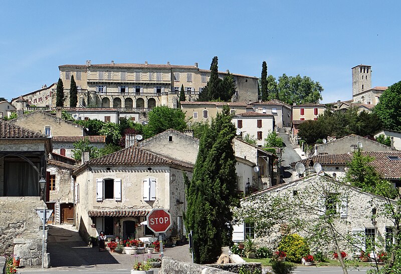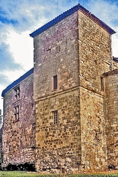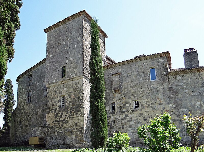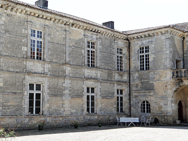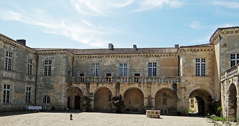 Le château de Poudenas, situé sur la commune du Poudenas en Lot-et-Garonne, est mentionné dès 1259 et repose sur des fondations très anciennes. Construit au XIIIe siècle par les seigneurs de Poudenas, vassaux d'Édouard Ier Plantagenêt, il dominait et contrôlait la vallée de la Gélise et le vieux pont qui la traverse. Un castrum est encore cité en 1279 et 1286 ; en 1289 le site contrôlait le péage sur la route de Mézin à Montréal. Organisé autour d'une double enceinte, le château présente des éléments de différentes époques et apparaît comme un assemblage de bâtiments dont la majeure partie semble dater du XVIIe siècle. La partie nord comprend une grosse tour carrée du XVe siècle et un corps de logis du XVIe siècle percé de fenêtres à meneaux aux encadrements moulurés. Selon P. Ourliac, après le siège de 1369 le maçon Pierre Baudry reconstruit le château en 1372 pour le comte d'Armagnac : l'enceinte, le corps nord et l'ouvrage d'entrée pourraient remonter à cette campagne, sur une assiette plus ancienne. Au début du XVIe siècle, le corps nord est pourvu de croisées, puis le site est transmis par mariage à Jean du Bouzet de Roquepiné en 1581. Jean du Bouzet et son fils Pierre Gaston font entreprendre d'importants travaux dans la seconde moitié du XVIIe siècle : l'aile ouest des écuries est construite par Duplan en 1664 et une nouvelle aile est édifiée dans la cour en 1686, comprenant un escalier et un portique dont l'élévation à l'étage conserve un rythme comparable à celui des offices de Chantilly. La partie donnant sur la cour intérieure est un bel exemple d'architecture du XVIIe siècle, avec terrasse et balustres d'époque, et la façade sud reçoit une triple galerie évoquant une villa italienne. La partie qui domine le village présente des terrasses à balustres Louis XIV, partiellement refaites au XIXe siècle ; un porche d'entrée du XVIIe siècle et, dans le parc, des piliers surmontés de flammes du XVIIIe siècle complètent le décor. Le château demeure une fortification militaire jusqu'au XVIe siècle, puis il est embelli de fenêtres à meneaux ouvrant le donjon au nord et au midi. La reprise de l'aile sud est renforcée par un portique extérieur servant de contrefort. La propriété passe ensuite à la marquise de Narbonne-Pelet, puis au comte de Digeon ; Stéphanie de Virieu réalise des décors et probablement les escaliers de la terrasse au troisième quart du XIXe siècle, et une restauration a lieu à la fin du XIXe siècle. Le château fait l'objet d'une protection au titre des monuments historiques : l'ensemble des façades et toitures a été inscrit en 1952 et des éléments précis — façades et toitures du donjon et des bâtiments entourant la cour principale, la façade sud avec sa galerie et ses terrasses, l'escalier de pierre, certaines cheminées et le mur d'enceinte — ont été classés en 1984. Par la superposition de ses composantes médiévales, de la Renaissance et des aménagements des XVIIe et XIXe siècles, il illustre l'évolution d'une fortification vers une résidence seigneuriale.