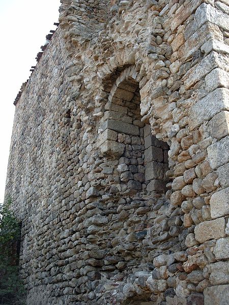 La salle du premier étage communiquait directement avec l'extérieur par une porte à linteau de marbre blanc ; une passerelle volante permettait d'isoler cette porte de l'escalier extérieur. Deux grandes niches en plein cintre, pratiquées dans les murs sud et nord, servaient d'armoires murales. Sur la face nord du donjon, près de l'angle ouest, une tourelle demi-ronde d'origine enfermait un escalier à vis aujourd'hui détruit ; cet escalier desservait le premier et le second étage et paraissait, par une courtine détruite, communiquer avec des bâtiments d'habitation dont les ruines sont encore visibles. Dans l'épaisseur du mur nord du donjon, un petit escalier menait à la plateforme du troisième étage. Ces vestiges témoignent de la configuration défensive du château et des transformations qu'il a subies au fil du temps.