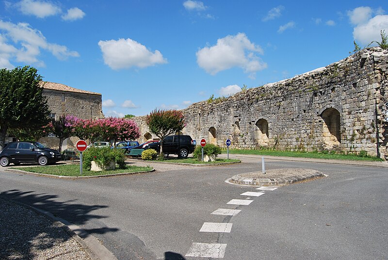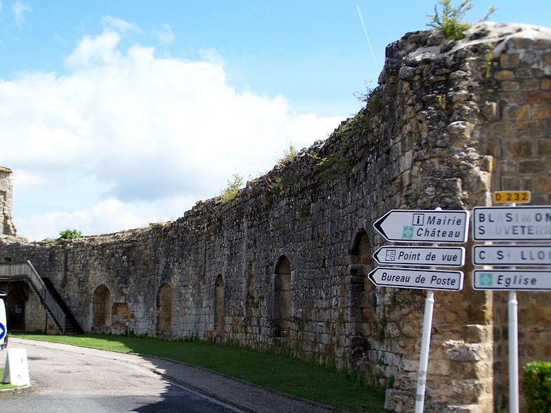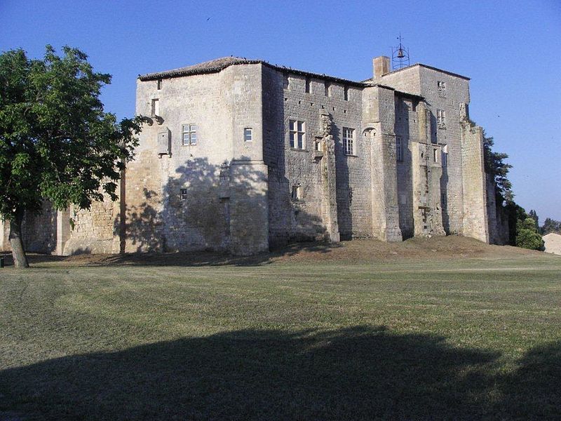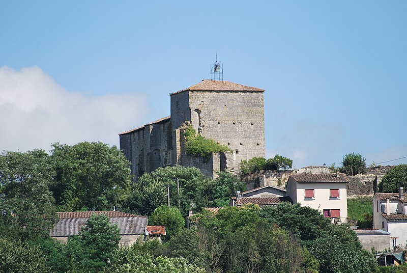 En 1338, le château fut pris par l'armée française commandée par Raoul, comte d'Eu ; en 1417, il entra dans le domaine du roi d'Angleterre. L'édifice forme un polygone irrégulier, presque carré, entouré de fossés sur trois côtés ; les murs du côté sud et une partie des murs ouest sont démolis jusqu'au niveau du sol. La place du bourg occupe l'emplacement d'une basse-cour et d'ouvrages avancés, et un pont reliait autrefois la ville au château. Près de la porte principale se trouvait, à l'ouest, une poterne ogivale qui était probablement précédée d'un pont en bois. Une vaste cour occupe le centre du château ; elle était flanquée, sur le côté ouest, de bastions et de tours carrées détruits en 1789. Les courtines présentent de gros contreforts, pour la plupart surmontés d'échauguettes ; celles qui n'en étaient pas dotées devaient l'être par un chemin de ronde. Un grand corps de logis prolonge la tour, et, au nord-est, un moucharabis devait défendre une poterne ou une fenêtre basse.