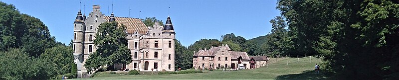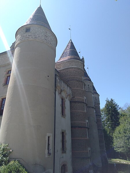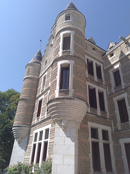 Les façades et toitures du château ainsi que des communs sont protégées au titre des monuments historiques, de même que plusieurs pièces et leurs décors : le vestibule, l’escalier avec sa rampe en fer forgé, la salle à manger, le grand salon avec sa cheminée, la bibliothèque avec ses armoires à livres sur deux étages, la chambre d’apparat dite de la duchesse de Noailles et la chambre dite de la reine Esther. Extérieurement, l’ensemble illustre l’architecture néogothique du XIXe siècle dans l’Isère ; reconstruit sur une surface de 7 500 m², il associe murs de pierre, de briques, de pisé et de galets en pesci. L’entrée est marquée par un avant-corps hexagonal portant une balustrade ; sept tours coiffées en poivrière et un toit en tuiles vernissées en écailles animent les multiples décrochements de la toiture. Les communs rénovés, anciens logements du personnel et écuries, se situent près de l’entrée monumentale où s’effectue l’accueil des visiteurs.