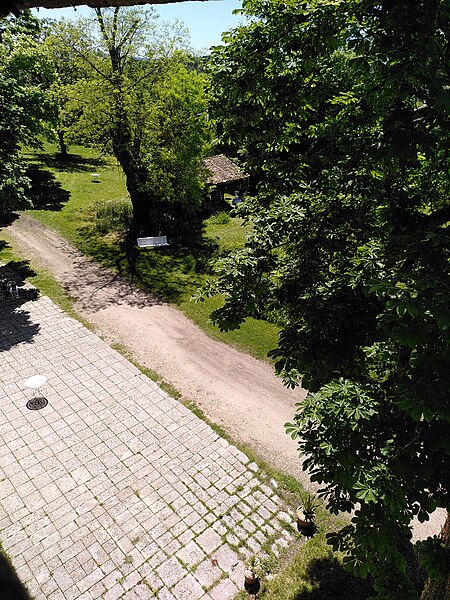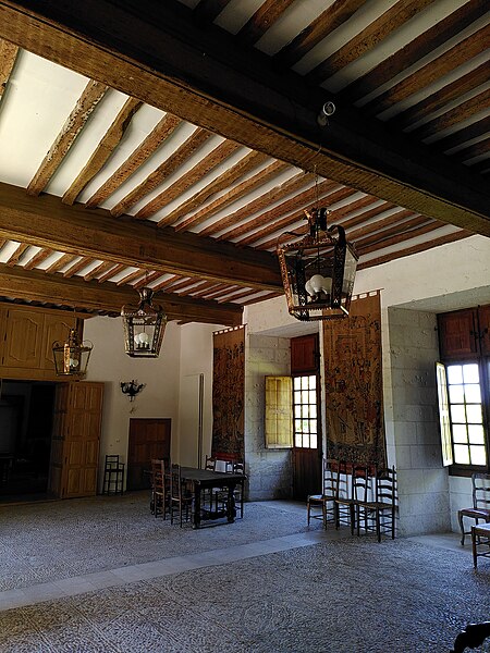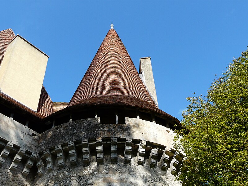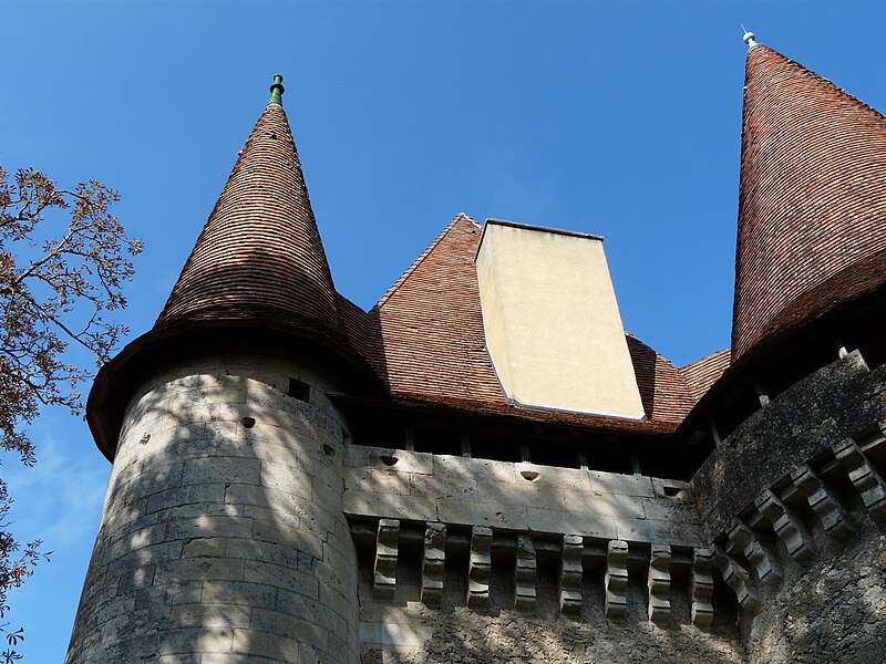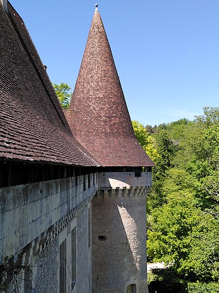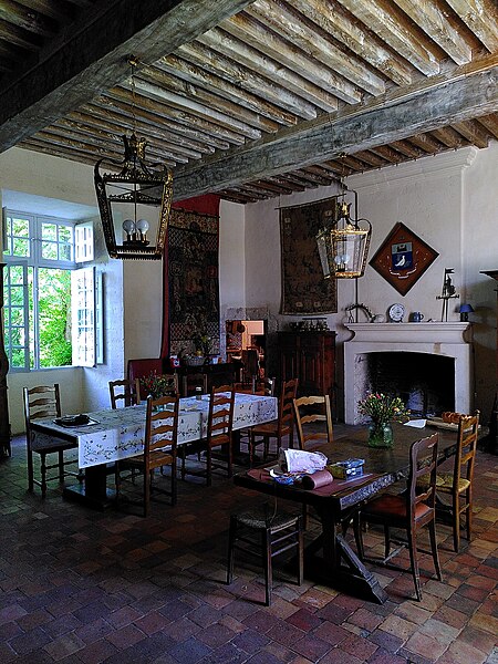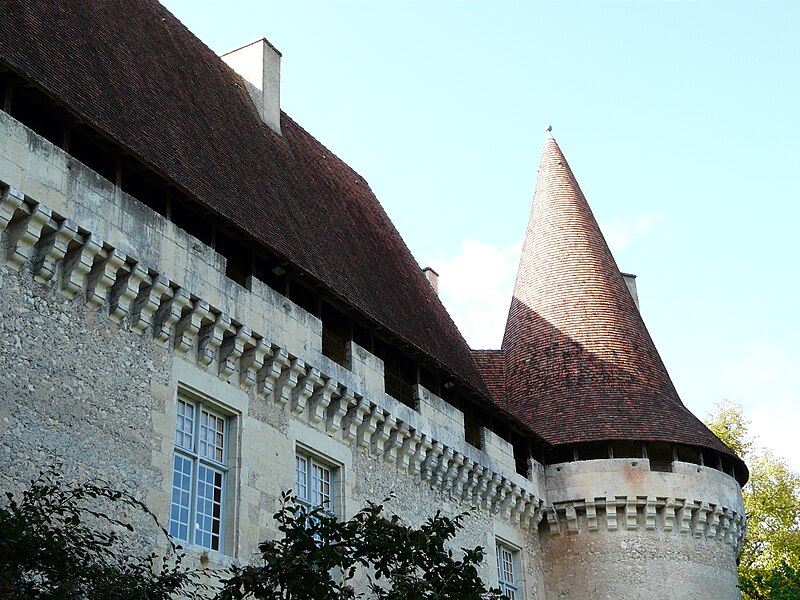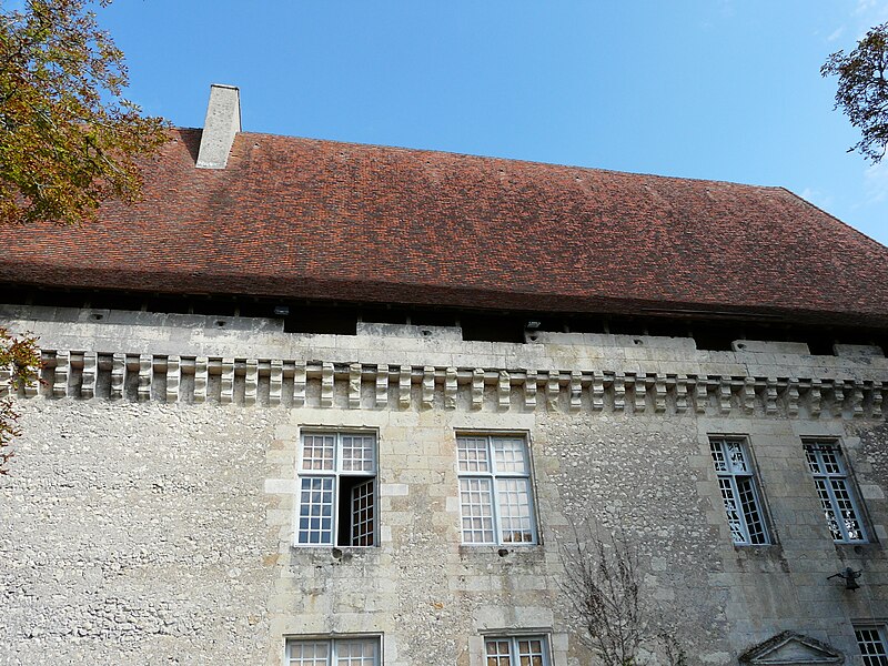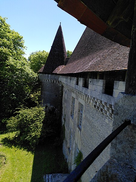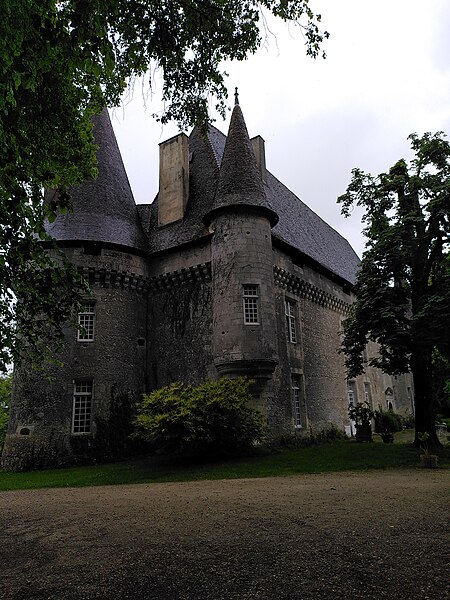 Le corps de logis rectangulaire est flanqué d'un côté de deux grosses tours circulaires et, de l'autre, de deux tourelles en encorbellement. Il est surmonté d'un chemin de ronde pourvu de mâchicoulis et a conservé des arquebuseries. Sur des caves aménagées pour les cuisines, le rez‑de‑chaussée abrite une grande salle pavée et les deux étages sont desservis par un escalier monumental à paliers. La charpente remarquable soutient une toiture à quatre pans recouverte de tuiles plates. La façade ouest présente une porte de la dernière Renaissance, de style dorique. Dans le parc se trouve la chapelle et son caveau familial construits par Paul‑François Dupont.