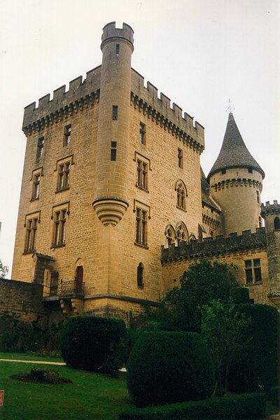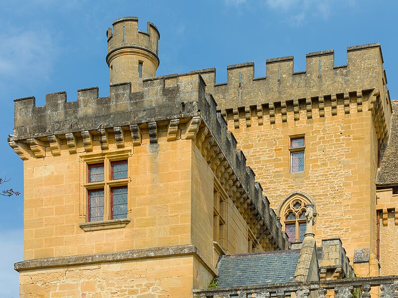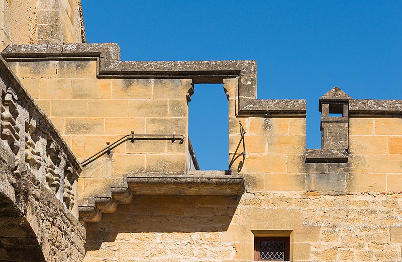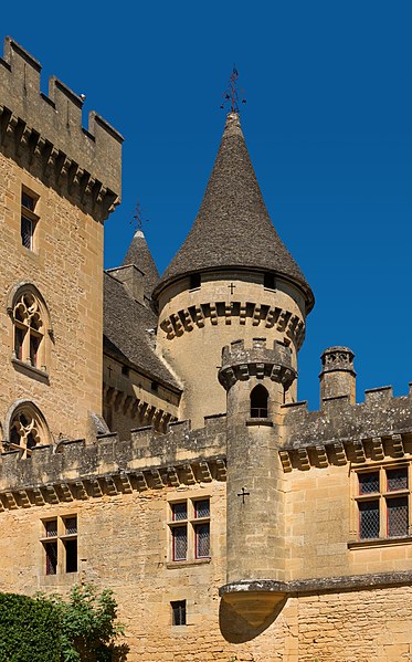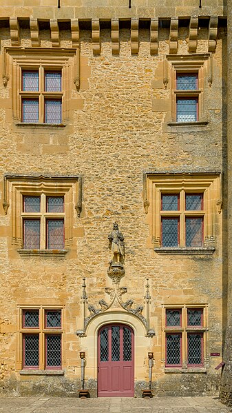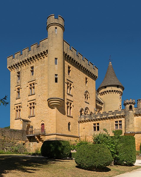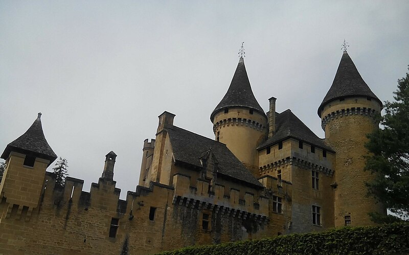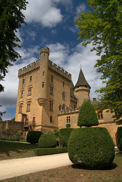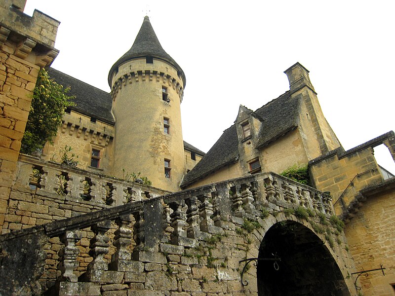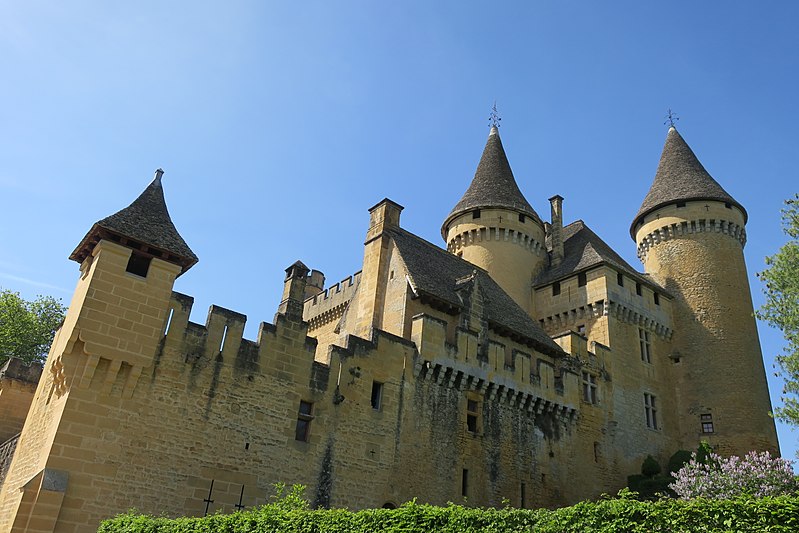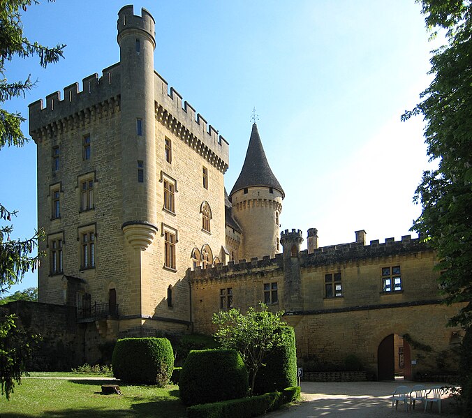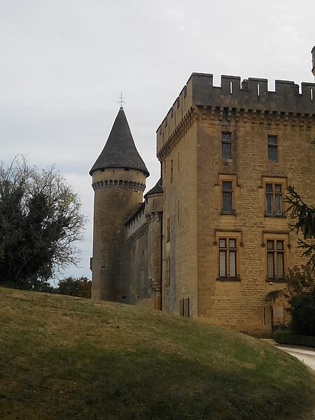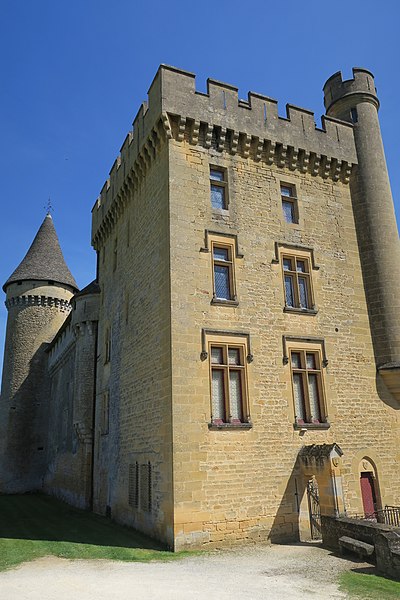 Le château de Puymartin, situé à Marquay près de Sarlat-la-Canéda en Dordogne (Nouvelle-Aquitaine), est une ancienne forteresse ouverte à la visite. Datant des XIIIe, XVe, XVIe et XVIIe siècles, il se trouve à 8 km de Sarlat et 11 km des Eyzies. Il est protégé au titre des monuments historiques. Le site fut entouré de courtines et d'échauguettes ; la construction a commencé au XIIIe siècle. En 1357, le château passa aux mains des Anglais, puis les consuls de Sarlat rachetèrent le domaine avant de l'abandonner. Radulphe de Saint‑Clar le reconstruit en 1450. Aux XVe et XVIe siècles, deux corps de logis furent édifiés et reliés par deux tours à mâchicoulis ; une tour‑poivrière abrite un escalier à vis dit de Saint‑Gilles. La partie la plus ancienne se prolonge par un chemin de ronde percé de trous à couleuvrines. Raymond de Saint‑Clar, connu comme capitaine de Puymartin, racheta le château au XVIe siècle, repoussa les protestants et reprit Sarlat aux huguenots en 1534. Au XVIIe siècle, Jean et Suzanne de Saint‑Clar se disputèrent la propriété pendant quarante ans ; Suzanne en devint finalement la propriétaire. Le château fut abandonné au XVIIIe siècle, puis restauré au XIXe siècle par le marquis Marc de Carbonnier de Marzac, grand‑père de l'actuel propriétaire, grâce à la dot de son épouse. Il est inscrit au titre des monuments historiques par arrêté du 6 décembre 1948. L'accès à la cour se fait par un châtelet ; une grande salle conserve une belle cheminée et des tapisseries, et des poutres peintes au pochoir subsistent dans d'autres pièces. Un cabinet lambrissé adjacent est décoré en trompe‑l'œil de sujets païens et chrétiens ; ces peintures à la colle, traitées comme des fresques, semblent dater du début du XVIIe siècle. Au deuxième étage se trouve un studiolo, rare en Périgord, dont les parois sont revêtues de huit panneaux de bois peints en grisaille représentant des scènes et personnages mythologiques : les Alcions, Argos, Bellérophon, Œnée, Persée, Méleagre, Memnon et Clytie. Ce décor a été réalisé en 1679 par Philippe Lemaire, originaire de Laon, qui copia presque à l'identique huit gravures issues du recueil édité en 1655 intitulé Tableau du temple des Muses, dessiné par Pierre Brébiette et gravé par Corneille Blœmaert. L'exécution date de la succession d'Henry‑Claude de Lapleynie, abbé de Puymartin, qui venait d'hériter du domaine de son frère le capitaine Henry de Lapleynie ; on ignore lequel des deux frères a défini le programme iconographique. Ce programme peut être lu comme une série d'exemples moraux ou religieux illustrant vertus et châtiments, mais faute de documents son interprétation reste conjecturale. Le studiolo a été classé au titre des monuments historiques par arrêté du 1er mars 1977. La légende de la Dame blanche raconte que Thérèse de Saint‑Clar, au XVIe siècle, aurait été surprise avec son amant et enfermée par son mari pendant les seize dernières années de sa vie dans une petite pièce de la tour nord, où elle serait morte et aurait été emmurée. On prétend que son fantôme apparaît parfois vers minuit dans l'escalier, sur le chemin de ronde ou en entrant dans cette chambre. Le château reçoit des visiteurs et a attiré 25 000 personnes en 2022. Quelques intérieurs ont servi au tournage du film Les Duellistes de Ridley Scott. Après le décès du propriétaire Henri de Chérade de Montbron le 31 juillet 2002, sa femme et ses enfants ont hérité du domaine en 2003.