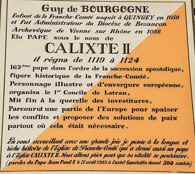 Le château comtal de Quingey, aussi appelé château des papes ou château des comtes de Bourgogne, est situé au centre du village de Quingey, en bordure de la Loue, dans le Doubs. À l'origine, il appartenait aux comtes de Bourgogne ; selon une tradition ancienne, il aurait été fondé au VIIIe siècle par Girart de Roussillon. Le site est traditionnellement associé à la naissance de Gui de Bourgogne, futur pape Calixte II, et Simon de Quingey y est également né en 1448. L'édifice actuel date principalement des XIIIe et XVe siècles et a fait l'objet de restaurations aux XVIIIe et XIXe siècles ; une partie du site a été détruite en 1823 pour laisser place à une usine. Une usine du XXe siècle (clouterie, puis sparterie et fabrique de couverts) a été établie sur une portion du terrain et a limité la récupération de vestiges enfouis. Le château, remontant à une forteresse défensive, comportait remparts et fossés, éléments en rapport avec les châteaux de la frontière du Saint-Empire ; les vestiges visibles sont en partie en ruine. Il se distingue par une tour circulaire coiffée d'une toiture conique, sur laquelle une plaque rappelle la tradition de la naissance du futur pape. Les restaurations des XVIIIe et XIXe siècles ont ajouté un corps de logis plus récent, intégré à la tour. La façade et la toiture de la tour ainsi que la pièce abritant le four banal sont inscrites au titre des monuments historiques depuis le 8 novembre 1991. Le château est actuellement une propriété privée.