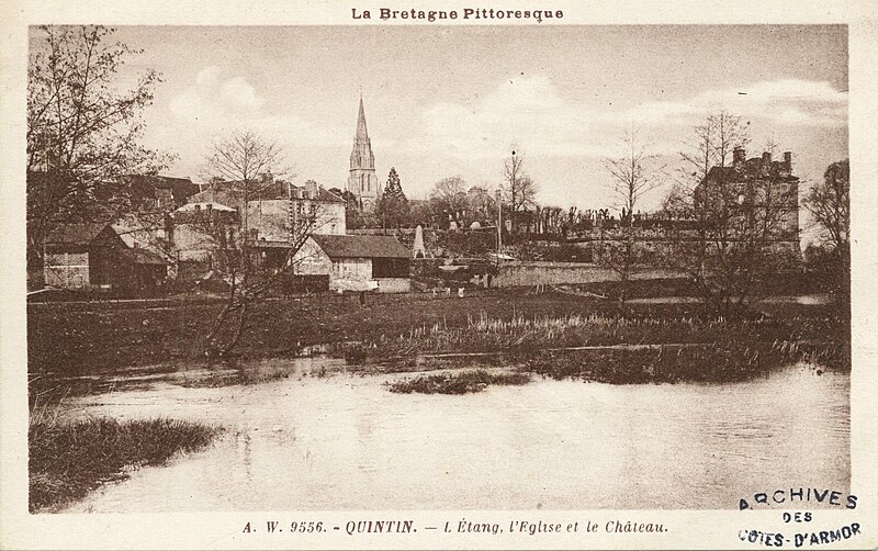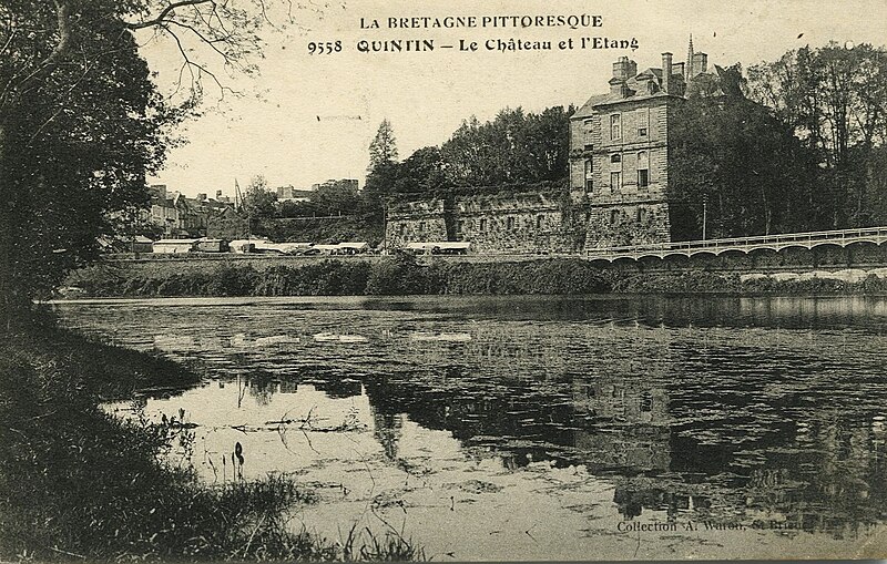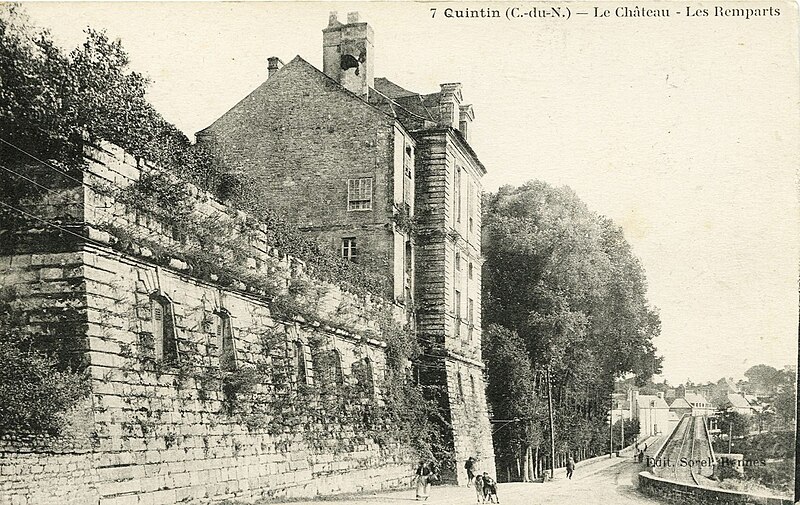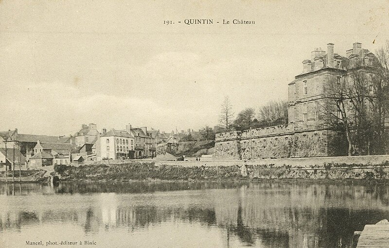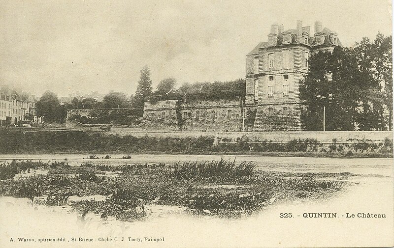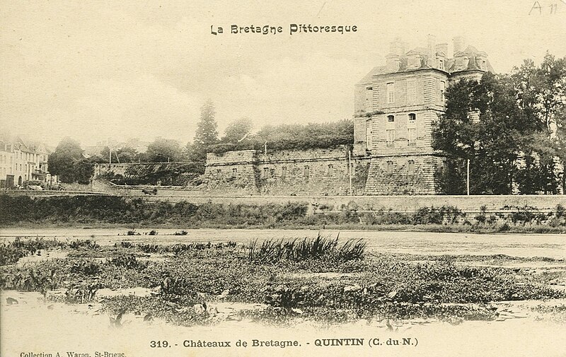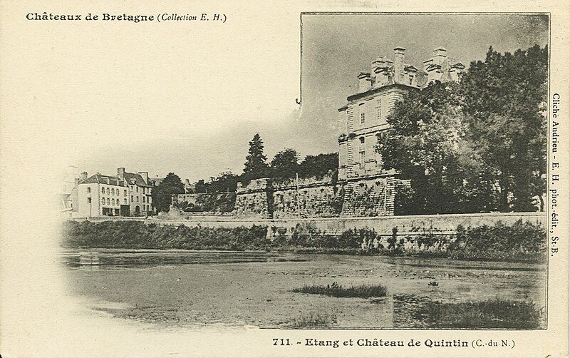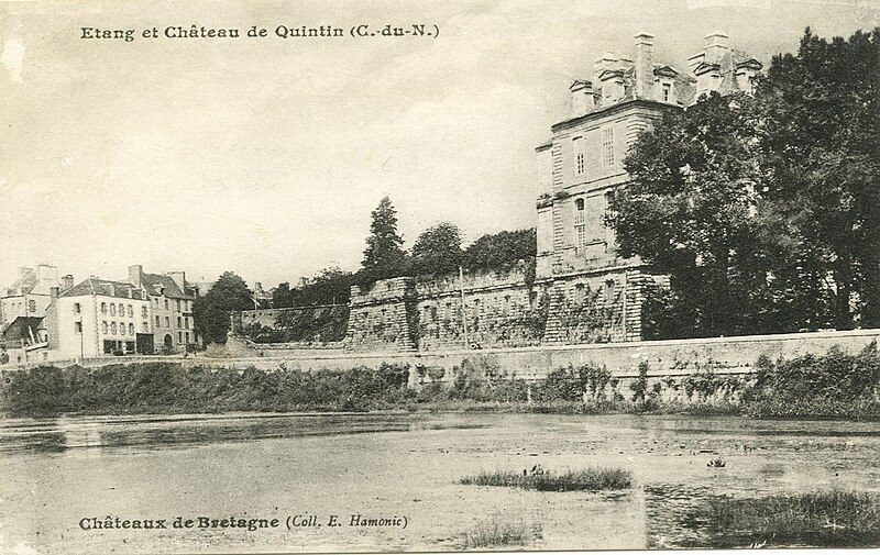 Le site de Quintin réunit deux châteaux dans un même parc au cœur de la petite cité de caractère : un logis du XVIIe siècle classé monument historique et un château du XVIIIe siècle, inachevé et inscrit en 2021. La seigneurie de Quintin, devenue l'une des neuf baronnies de Bretagne et érigée en duché en 1691, a conservé des vestiges de sa cité médiévale, notamment des enceintes et la Porte-Neuve intégrant en partie l'ancienne tour des Archives. Le château dit ducal, daté de 1775, reprend le type du quadrilatère flanqué de pavillons en décrochement mais n'a été achevé qu'en partie. De l'édifice subsiste principalement un double pavillon autour duquel s'articulent les soubassements de deux corps en retour d'équerre et les fondations des autres pavillons ; seul l'angle a été mené à terme. L'ensemble apparaît comme une imposante construction d'angle à murs de soutènement inclinés, ouverte de fenêtres et ponctuée de décrochés ; le soubassement, très épais, devait soutenir un corps qui n'a pas été élevé. À l'ouest, le château présente deux avant-corps peu avancés, et au sud une adjonction de trois ouvertures ; au nord-ouest se greffe une longue aile de dépendances débutant par un pavillon de tête muni d'une porte surmontée d'un fronton courbe et formant deux angles en retour. Une étude dendrochronologique de 2009 situe la mise en œuvre des bois du pavillon principal entre 1658 et 1660 ; les bois du pavillon est datent des XVIIe et début XVIIIe siècles, tandis que ceux du pavillon ouest appartiennent à la première moitié du XVIIe siècle. Chargée d'histoire, la seigneurie et son château ont été successivement possédés par des familles telles que Rohan, Laval, Coligny, La Trémoille, Gouyon de la Moussaye, Durfort de Lorges, Choiseul et de Polignac. La famille Frotier de Bagneux est propriétaire depuis 1935 ; Jean de Bagneux, héritier d'Isabelle de Polignac, et son fils Gérard ont engagé des travaux de restauration, d'entretien et d'animation, et ont ouvert le château au public en 1986. Les interventions ont permis de restaurer progressivement les jardins à la française, les salons du château du XVIIIe siècle, les salles d'exposition et les anciennes écuries ; les prochaines campagnes de restauration viseront le château du XVIIe siècle et ses soubassements. Un important programme de restauration du vieux logis a été conduit sous la responsabilité de l'architecte en chef des monuments historiques Christophe Batard ; la première tranche a concerné les parties supérieures du pavillon central et des pavillons est et ouest, avec restauration des corniches et des cheminées, réalisée par les compagnons de l'agence Lefèvre de Saint-Brieuc et financée à 60 % par l'État et la région Bretagne à partir de 2013. En 2021, la mission patrimoine a attribué une subvention de 271 000 € pour la restauration de la tour des Archives et d'une portion des remparts. Les visiteurs peuvent découvrir toute l'année les soubassements du château du XVIIe siècle, les appartements richement meublés du XVIIIe siècle, les anciennes cuisines — dont un potager en granit de dimension remarquable — ainsi que des collections permanentes de porcelaine, verrerie, argent, bibelots, robes de baptême et éventails.
