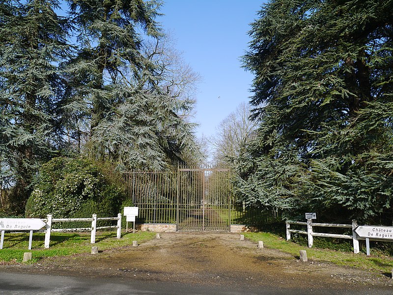 Le château du Raguin, situé à Chazé-sur-Argos (Maine-et-Loire), est un ensemble seigneurial dont les origines remontent au XVe siècle. Le lieu de Raguin est mentionné en 1417 et un premier manoir se trouvait à quelques dizaines de mètres au nord de l'édifice actuel. Le logis qui forme le noyau du château a été construit dans la seconde moitié du XVe siècle, avant 1482, et était à l'origine un modeste manoir. À la fin du XVIe siècle ou au tout début du XVIIe siècle, le corps de logis primitif fut agrandi vers le nord-est par un grand pavillon, qui porte la date 1607, et les élévations de l'ancien logis furent en partie reprises. En 1619, le seigneur de Raguin obtint l'autorisation d'enclore sa maison seigneuriale et d'élever un portail avec pont-levis. Le décor peint des pièces du premier étage date du milieu du XVIIe siècle. Les communs bordant le côté est de la cour et le pavillon nord semblent remonter à la fin du XVIe ou au début du XVIIe siècle. Au sud de la cour existaient, en 1700, un portail avec pigeonnier et une chapelle, détruits au XIXe siècle. La ferme conserve un ancien logis peut-être du premier quart du XVIIe siècle, des remises et bâtiments agricoles du XIXe siècle, et des étables qui paraissent dater du XVIIIe siècle. Deux moulins dépendaient du domaine : un moulin à eau mentionné en 1481 et un moulin à vent figurant sur le cadastre de 1833 ; tous deux ont été détruits. La galerie et la tour d'escalier doublant la face nord furent élevées vers 1880 d'après les plans de l'architecte rennais Henri Mellet, et le grand pavillon ouest, construit vers 1909, est probablement de son auteur ; l'ensemble a connu une restauration au début du XXe siècle. L'édifice, inscrit au titre des monuments historiques en 1992 et classé en 1994, conserve ces différentes strates architecturales. Il a servi de décor pour le film La Passion de Dodin Bouffant de Trần Anh Hùng, sorti en 2023.