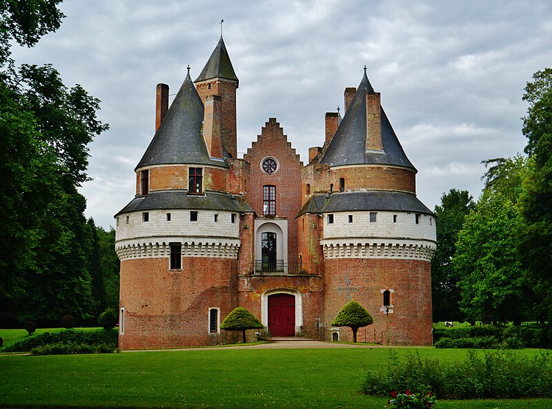 Le château : classement par arrêté du 23 février 1927 - Les façades et les toitures des communs ; le parc, avec ses allées, le saut-de-loup de l'entrée, avec les grilles et les alignements d'arbres de la route de Oisemont à Rambures ; les façades et les toitures de la chapelle dans le parc ; les façades et les toitures du bûcher (cad. E 17, 37, 39 à 41, 50, 60, 61, 451, 466, 469, 514) : inscription par arrêté du 17 juin 2003
