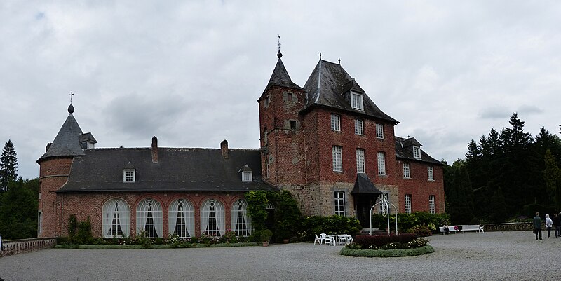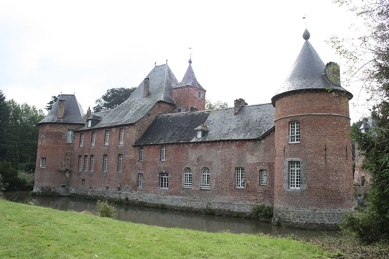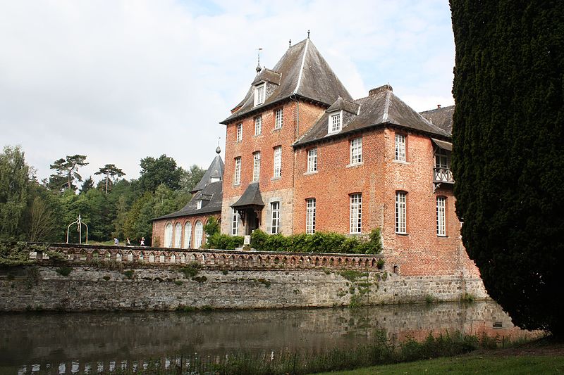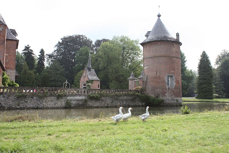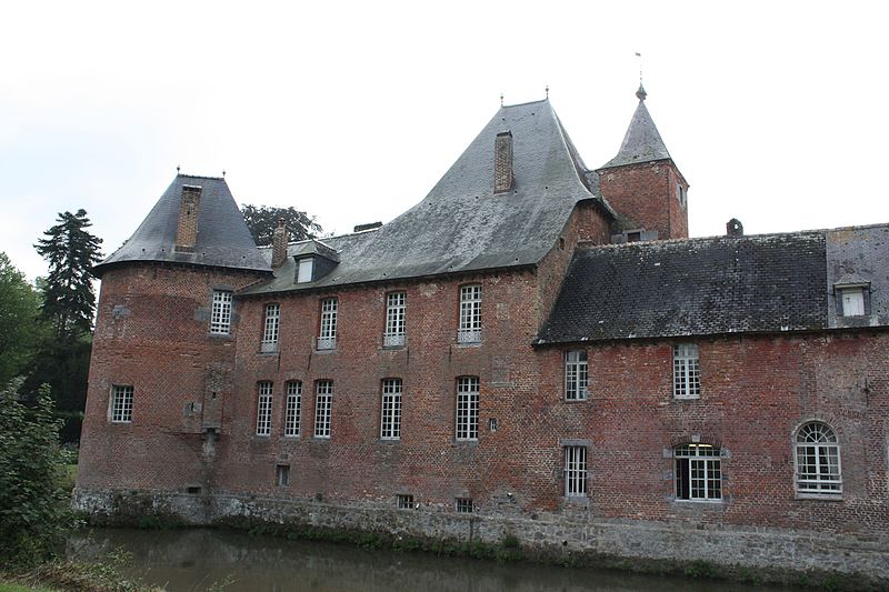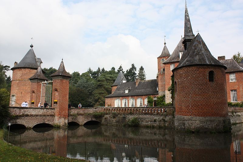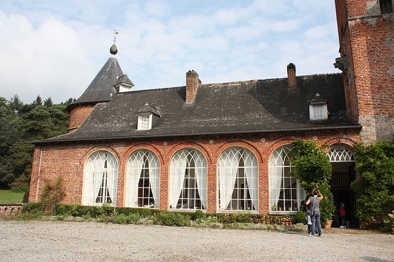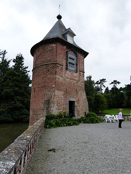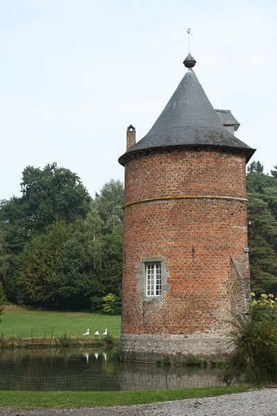 Le château de Rametz, situé à Saint-Waast (Nord) sur les rives de l'Hogneau, près de Bavay, présente des origines médiévales (XIIIe–XIVe siècles), des transformations successives entre le XVIe et le XIXe siècles et une reconstruction au XVIIIe siècle sur des fondations plus anciennes. Il est construit en briques rose orangé ponctuées de pierres calcaires sur un soubassement en grès. La vue aérienne révèle le plan rectangulaire de l'ancienne forteresse cantonnée de tours cylindriques et entourée de douves. À l'intérieur, certaines salles situées dans les tours conservent voûtes, meurtrières et un escalier dérobé. La salle des gardes a été rhabillée dans la seconde moitié du XIXe siècle et la salle à manger est décorée de peintures de J. Léonard (1848). Le bureau possède des boiseries du début du XIXe siècle et la cuisine est voûtée en berceau de briques. Le château se déploie dans un parc de cinq hectares doté d'arbres centenaires. Les façades et les toitures, les quatre tours, la cour, les douves avec leur pont ainsi que le portail d'entrée sont classés au titre des monuments historiques depuis le 2 mars 1979. La salle des gardes et la salle à manger près de la tour nord‑est, avec leur décor, ainsi que la cheminée du grand salon et celle de la petite salle à manger, sont inscrites. Propriété privée, le château devait être ouvert lors des journées du patrimoine prévues les 19 et 20 septembre 2020 — finalement annulées en raison de la crise sanitaire — avec une visite du donjon, de la cuisine, de la chapelle et de la galerie. La documentation photographique montre notamment l'entrée actuelle, une vue du parc et le pigeonnier.