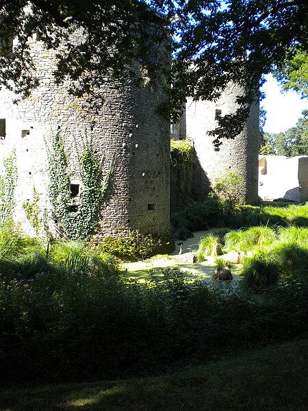 Au XIIIe siècle, l’enceinte comportait six tours reliées par cinq courtines, surmontées de créneaux, de hourds puis de mâchicoulis, et les ouvertures des tours étaient des archères. Face aux menaces du XIVe siècle, Guy de Rochefort fit creuser des douves, établir un boulevard de défense circulaire, transformer des archères en canonnières et renforcer la barbacane. Le châtelet d’entrée, équipé d’un pont‑levis, donnait accès à un couloir étroit ne permettant le passage que d’un piéton à la fois. Jean IV de Rieux aménagea des murs de séparation dans la barbacane pour créer des espaces domestiques et fit édifier dans la cour un logis doté d’un escalier à palier, l’un des premiers de ce type en France. Des pierres à bossage, disposées en triangle ou selon la forme du «5» sur un dé, rappellent les armoiries des sires de Rieux et de Rochefort. Aux XVIe et XVIIe siècles, des bastions et un réseau en étoile permirent les tirs croisés ; la tour nord reçut une voûte au rez‑de‑chaussée et la tour nord‑ouest fut remaniée en espace résidentiel avec baies agrandies pour plus de clarté.