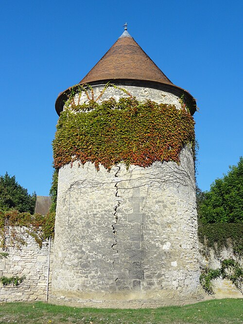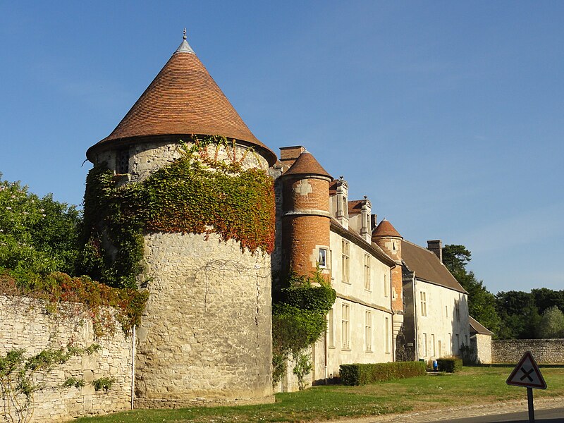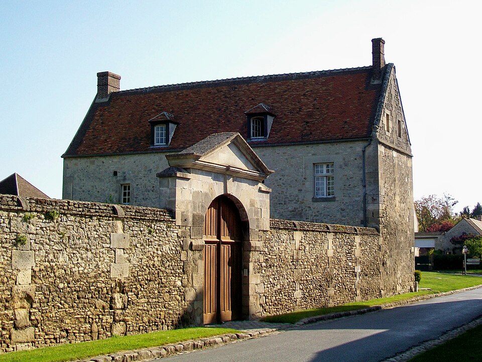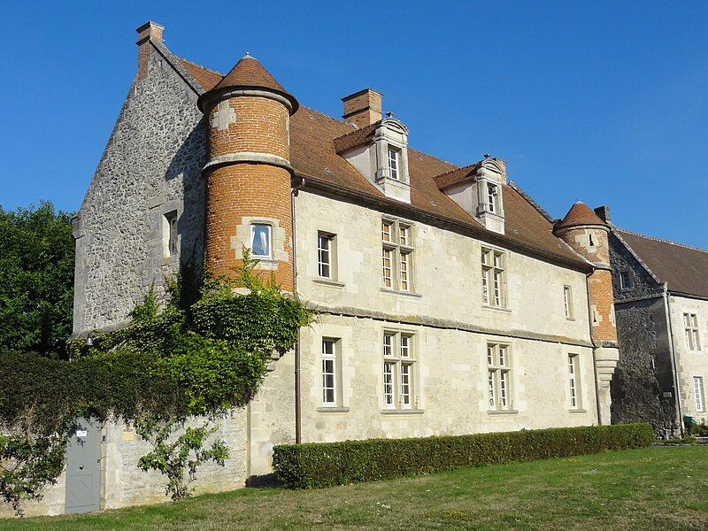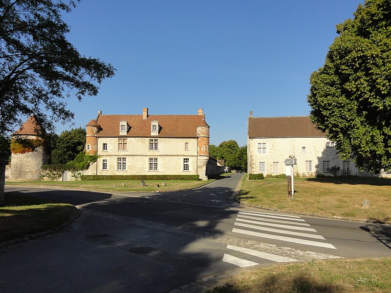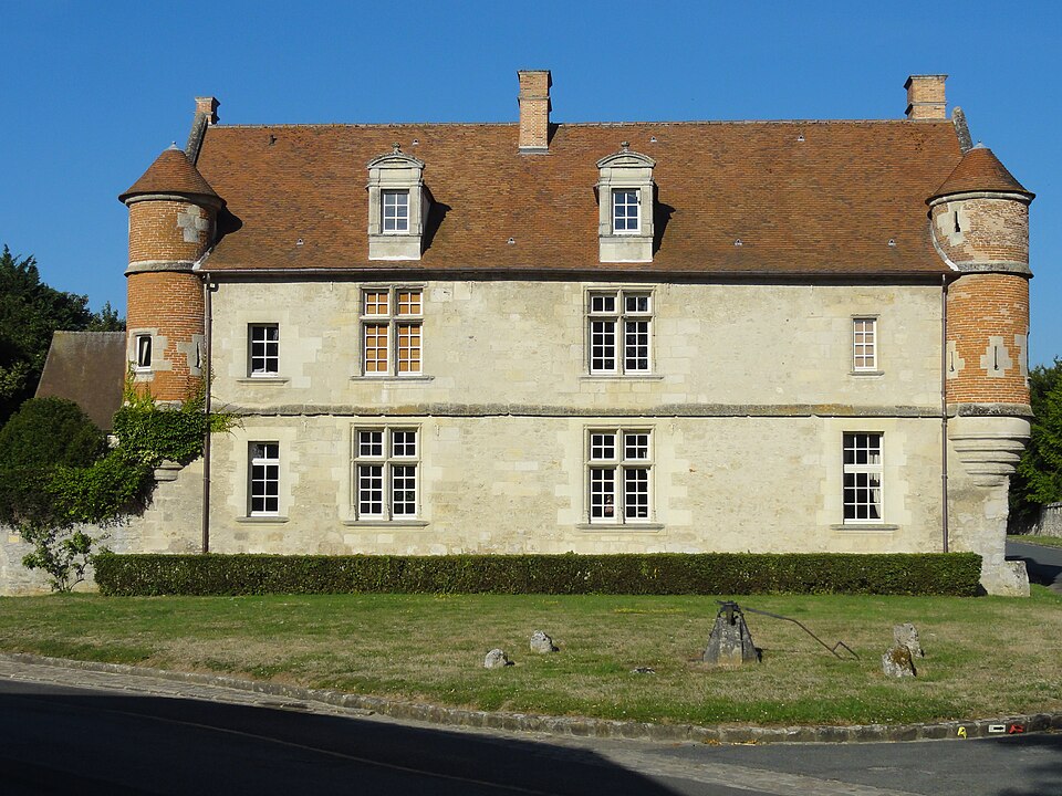 Parmi les dépendances, la ferme du château, avec son manoir du XVIe siècle et son colombier, est située sur la place à l'est du village et a été inscrite aux Monuments historiques par arrêté le 22 août 1949 ; elle ne doit pas être confondue avec l'écurie. Le manoir Renaissance en L présente des façades sur la rue Nicolas‑de‑Lancy au nord et la rue du Manoir à l'est, cette dernière constituant la façade principale grâce à la qualité de sa construction en pierre de taille blonde. Deux échauguettes d'angle en brique rouge, en encorbellement, contrastent avec l'appareil de pierre et conservent des meurtrières, dont l'une a toutefois été percée d'une fenêtre. Sur la façade est les quatre baies par niveau sont réparties de façon asymétrique mais les fenêtres de l'étage sont alignées sur celles du rez‑de‑chaussée ; deux grandes fenêtres centrales à meneaux sont surmontées, au niveau de la toiture, par deux lucarnes à fronton en segment de cercle ornées d'une boule. Le toit est couvert de tuiles plates rouges et, le long de la rue du Manoir, le grand colombier rond coiffé d'un toit en poivrière utilise les mêmes tuiles.