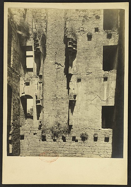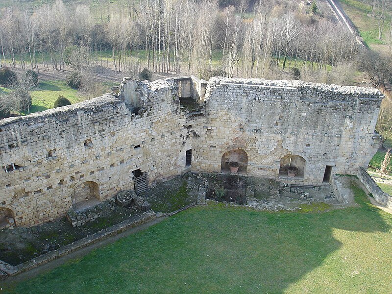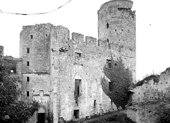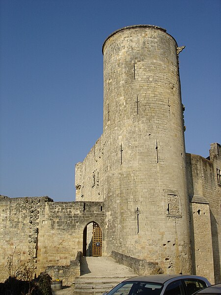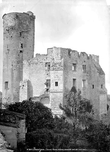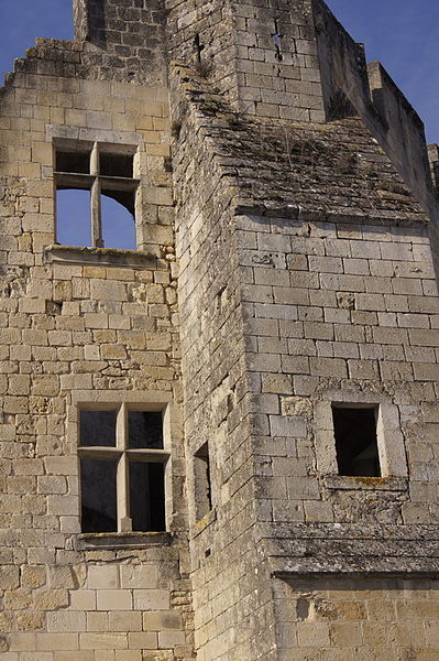 L'édifice remplissait les trois fonctions caractéristiques des châteaux médiévaux : défense, habitat et manifestation du pouvoir seigneurial. L'entrée était défendue par une barbacane aujourd'hui disparue, précédée d'un autre pont-levis lui aussi disparu; des fossés secs entouraient les remparts et la porte était protégée par une herse, une échauguette et la proximité du donjon. Le donjon, de plan cylindrique et construit vers 1325, présente à chaque étage trois archères; une trappe au premier étage permettait l'accès aux réserves, le second abrite la plus ancienne cheminée du château, et les troisième et quatrième étages, bâtis sur un plan octogonal, offrent des salles plus spacieuses avec des archères plus larges et sont chauffés par des bouches de chaleur plutôt que par des cheminées. Le logis seigneurial, érigé au début du XIVe siècle puis profondément remanié au XVe siècle, comporte un mur de séparation centrale et des fenêtres à croisées donnant sur la cour et l'extérieur; il s'ouvre au rez-de-chaussée sur la cour et est desservi par la tour d'honneur qui relie tous ses étages. Au premier étage se trouvait la salle de réception, dont subsistent quelques fragments de fresques, et le seigneur occupait ses appartements au second, chaque pièce étant pourvue d'une cheminée. Le logis des dames, situé au nord-est et bâti au XVIe siècle, a été entièrement démoli au XIXe siècle. La tour d'honneur, ouverte sur la cour intérieure, desservait les différents logis; sa porte d'honneur est de style gothique flamboyant et elle est surmontée des blasons de Bernard Angevin et des Durfort de Duras. Le long du rempart ouest, face au logis seigneurial, des bâtiments — sans doute des communs et des ouvrages défensifs — ne subsistent aujourd'hui que par leurs fondations; on y reconnaît les latrines donnant sur le fossé et un escalier menant au chemin de ronde ainsi qu'aux tours de la prison et de la tour du puits, toutes deux ruinées. La partie nord a disparu après les extractions de pierre menées par des carriers de Bordeaux en 1845, qui provoquèrent son effondrement. Le site a servi de lieu de tournage pour le film Le Baron fantôme de Serge de Poligny en 1942.
