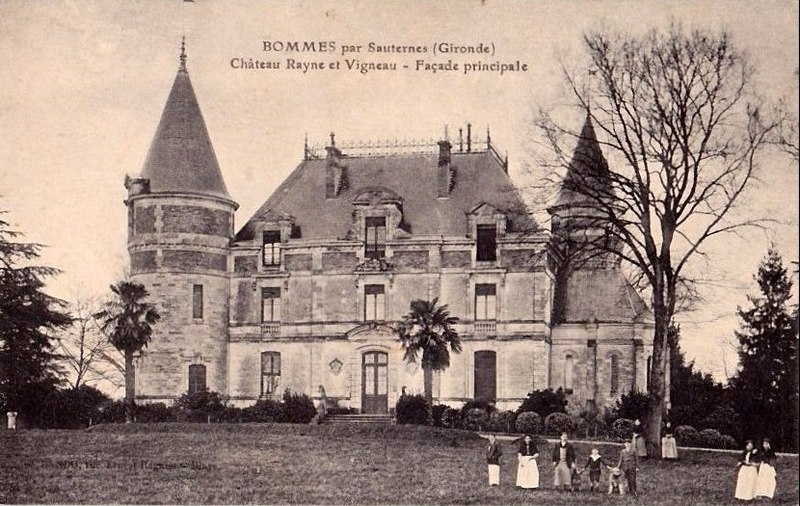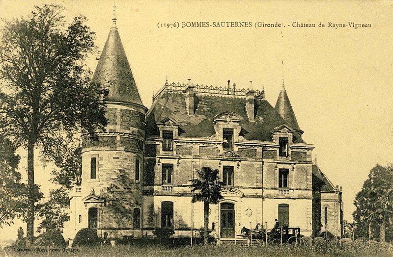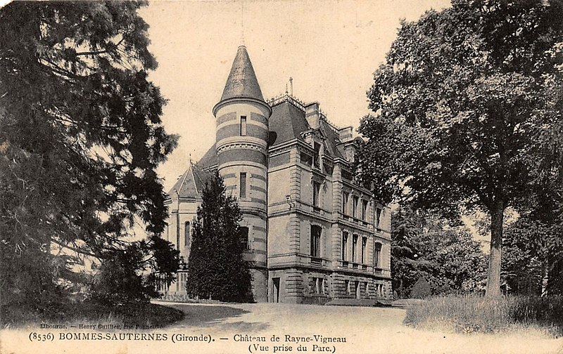 Le château de Rayne‑Vigneau, situé à Bommes (Gironde) dans le Sauternais, est un domaine viticole produisant un vin liquoreux du même nom, classé premier grand cru dans la classification de 1855 en AOC Sauternes. Édifié entre 1863 et 1865 par l'architecte Louis‑Michel Garros, l'ensemble présente un plan rectangulaire flanqué de deux tours rondes et d'une chapelle, dans un style éclectique mêlant néo‑Renaissance, néo‑gothique et éléments de style Louis XVI. L'intérieur conserve un décor caractéristique du Second Empire, en partie inspiré du XVIIIe siècle. La chapelle, de style néo‑gothique, abrite un décor d'Auger et Millet daté de 1863 ainsi que des vitraux de Villiers de 1867. Le parc, dont le dessin est probablement dû aux frères Bulher, met en œuvre un thème du cercle, des allées courbes et une alternance de pelouses et de massifs boisés ; un potager est aménagé à l'écart.