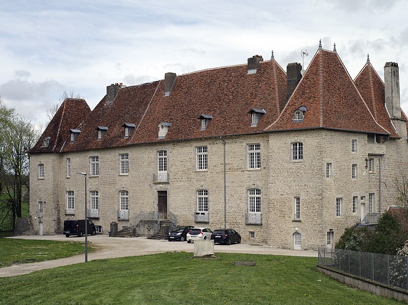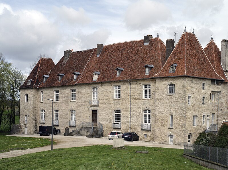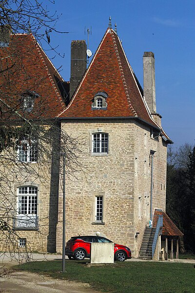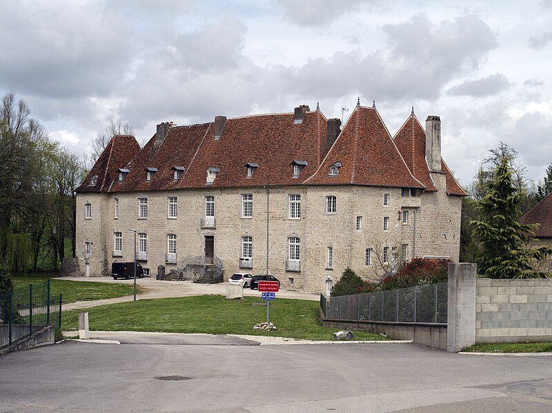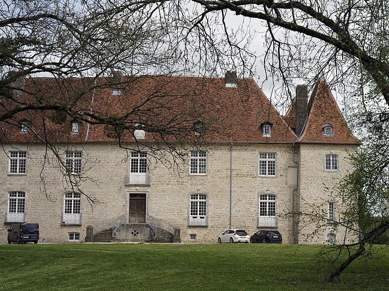 Le château de Recologne se situe en bordure du village de Recologne, dans le département du Doubs en Franche-Comté. Certaines parties du château sont protégées au titre des monuments historiques. Un château ancien a été détruit en 1636 par l'armée française pendant la guerre de Trente Ans. Il a été reconstruit en 1640 par Frédéric de Chavirey. Le domaine est passé à la famille de Camus en 1746 puis à la famille Chifflet en 1787. En 1789, le sieur de Camus fit raser le pont-levis et les fortifications, ce qui provoqua les moqueries des habitants. Le 2 mai 1979, les façades et les toitures du bâtiment principal, le salon du rez-de-chaussée et la chapelle du premier étage, ainsi que leur décor, ont été inscrits au titre des monuments historiques. Le château présente un plan rectangulaire d'environ 40 mètres dans sa plus grande longueur, chaque angle étant pourvu d'un pavillon d'angle. Sur la façade principale se trouve un escalier à double volée muni d'un garde-corps en fer forgé. Pour compléter ces informations, on peut consulter les listes des châteaux et des monuments historiques du Doubs ainsi que les notices disponibles dans la base Mérimée et sur les portails du Doubs, des monuments historiques et des châteaux de France.