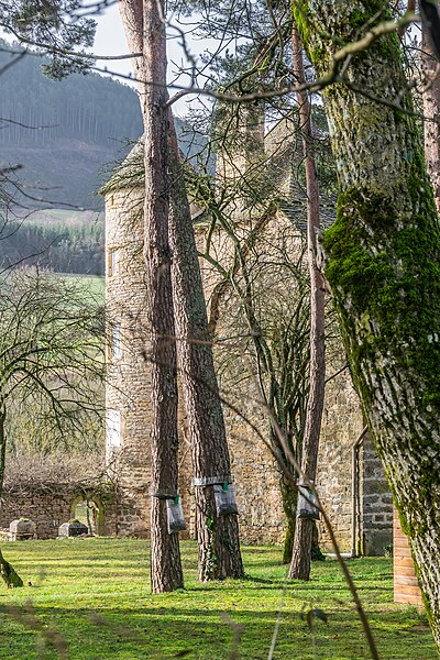 Le château de Ressouches est situé sur la commune de Chanac en Lozère, dans l'ancienne province du Gévaudan, en contrebas à l'ouest du village, sur la rive droite du Lot, au bord de l'eau. Il a été inscrit à l'inventaire supplémentaire des Monuments historiques en 1971 ; la protection a été étendue à l'ensemble des bâtiments et au jardin en 1992. Une seigneurie de Ressouches est mentionnée en 1560. Charles d'Aragon, seigneur de Ressouches, fit édifier le château dans la seconde moitié du XVIe siècle sur des fondations d'un bâtiment du XIIIe siècle. L'édifice comprend un corps de logis de trois étages, flanqué de deux tours d'angle à l'est et à l'ouest. Au nord, une tour circulaire abrite un escalier en pierre et se termine par des corbeaux qui supportaient autrefois un mâchicoulis destiné à la défense de la porte d'entrée. La façade sud est percée de quatre fenêtres à meneaux. Le village de Chanac possédait un ou deux châteaux construits par et pour les rois d'Aragon, mais le domaine dépendait des évêques de Mende ; au XIIIe siècle, une manse propriété des évêques était située à Ressouches, et le château actuel a probablement été bâti pour consolider cette maison forte. Au milieu du XVIIe siècle, Antoine de Buisson devint propriétaire et entreprit d'importantes réparations, rebâtissant la ferme attenante. La chapelle, également datée du XVIIe siècle, porte les armes de la famille Dupont de Ligonnès, illustrée par Charles de Ligonnès, évêque de Rodez et Vabres ; cette famille devint propriétaire à partir de 1908. Au XIXe siècle, la ferme fut agrandie, notamment par l'ajout d'écuries jouxtant la chapelle. L'actuelle propriétaire est Chantal Dupont de Ligonnès, épouse Bazin de Jessey. Pour aller plus loin, on peut consulter la base Mérimée et les portails consacrés aux châteaux de France, à la Lozère et au Moyen Âge tardif, ainsi que les listes et articles relatifs aux châteaux de la Lozère, au château de Chanac, à la famille Dupont de Ligonnès et aux monuments historiques de la Lozère.