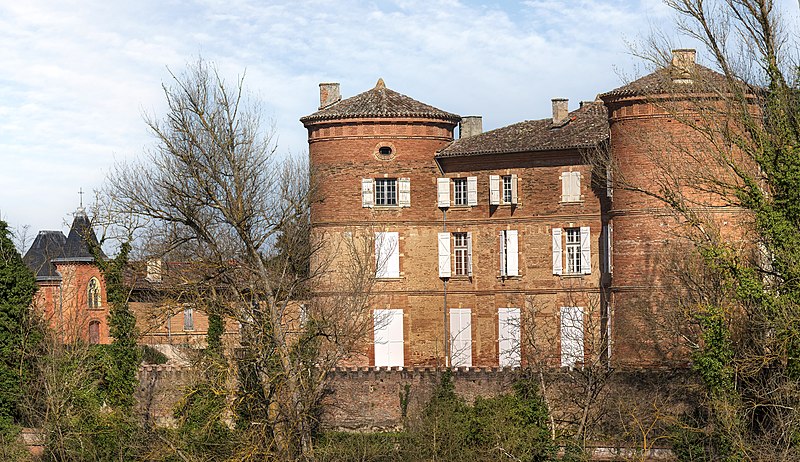 Le château appartint au XIIIe siècle à la famille de Bruniquel, puis à la famille de Latour au XVIe siècle. Le château primitif fut détruit par le duc de Vendôme peu après 1622 ; l'édifice actuel a été reconstruit après cette date sur ses anciennes fondations. Malgré l'allure féodale de ses trois tours, il s'agit d'une gentilhommière de style Louis XIII, marquée par quelques remaniements au XVIIIe siècle. La construction est en briques foraines apparentes, ponctuée d'éléments décoratifs en pierre. La chapelle gothique a été remaniée au XIXe siècle.