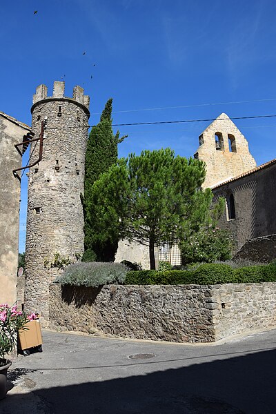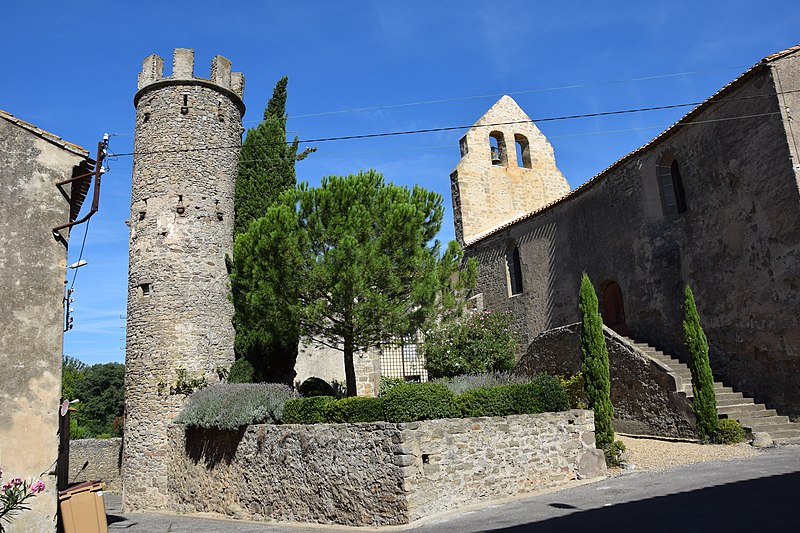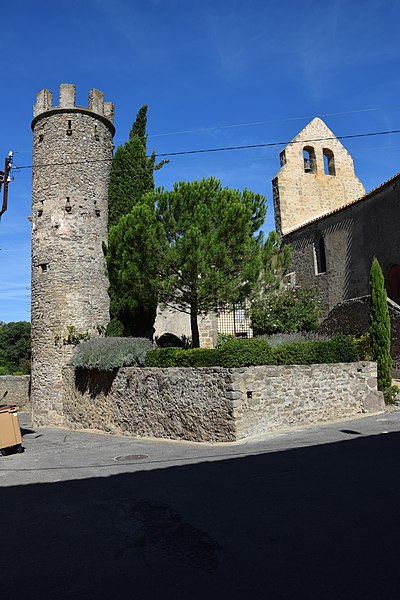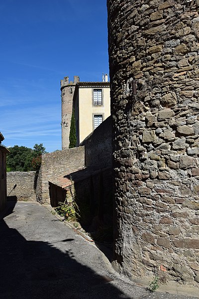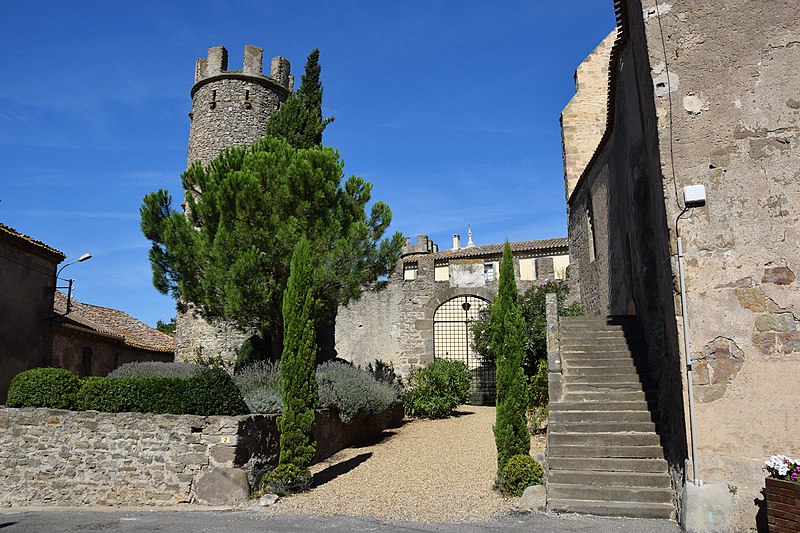 Le château de Roquecourbe‑Minervois, d'origine médiévale, se situe dans la commune éponyme, dans le département de l'Aude. Il a été reconstruit au XVIIe siècle. Le décor intérieur comprend des toiles peintes et des papiers peints panoramiques du XVIIIe siècle. Le décor de la chapelle a été réalisé à la fin du XVIIIe siècle et complété en 1925 par Henri‑Justin Marrey, élève de Maurice Denis. L'édifice a fait l'objet d'une inscription partielle au titre des monuments historiques en 2005 : la chapelle en totalité, les façades et les toitures du château, ainsi que, pour la parcelle 150, les pièces contenant un décor déplacé (au rez‑de‑chaussée le petit salon nord‑ouest et le grand salon sud) et les trois chambres du premier étage contenant un décor en place (chambre nord‑ouest, chambre sud‑est et chambre sud). Le château et la chapelle sont également inscrits au titre des sites naturels depuis 1942. Pour compléter la documentation, on peut consulter les listes et inventaires départementaux et nationaux concernant les monuments historiques, les châteaux, les sites inscrits et les édifices labellisés « Patrimoine du XXe siècle » de l'Aude.