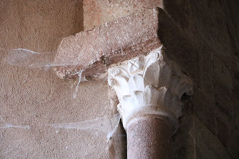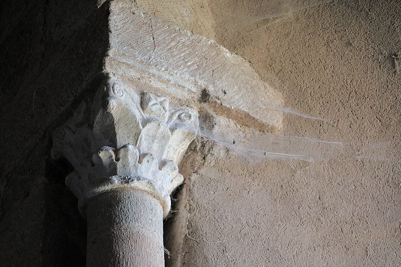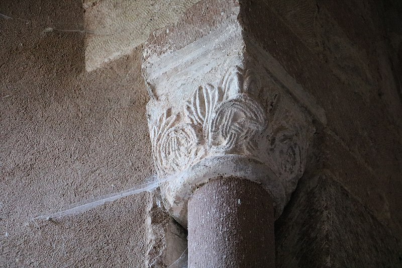 Édification de la chapelle romane avec ses proportions, son appareil et ses chapiteaux caractéristiques.