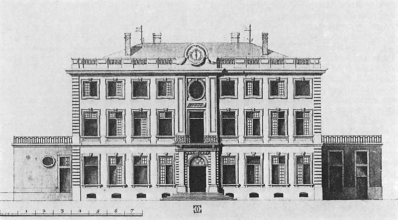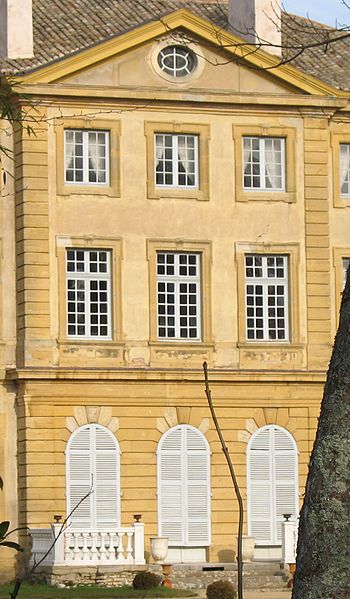 L'avant-corps de la façade sud comprend trois travées ; le rez-de-chaussée, en bossage continu, est percé de trois baies en plein cintre et surmonté d'un fronton percé d'un oculus.