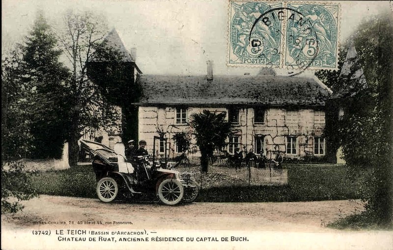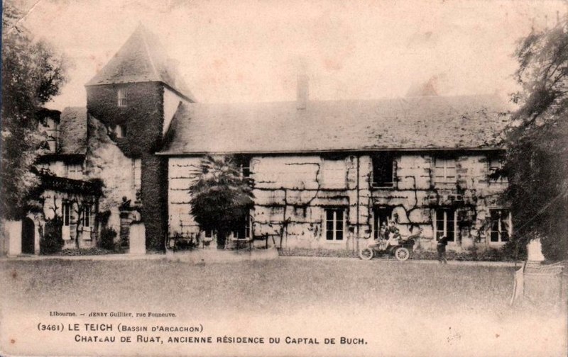 Le château de Ruat, situé sur la commune du Teich en Gironde, faisait partie à l'origine du système de défense du Bassin d'Arcachon, entre les châteaux de La Teste et de Certes, propriétés des captaux de Buch. En 1300, Rufat Ier d'Artiguemal devint vassal de Pierre-Amanieu de Bordeaux et reçut en échange le petit fief comprenant le château du Techys et les terres environnantes ; son nom, issu du latin Rufatus, donna ensuite celui de Ruat ou Rufat. En 1425, le domaine passa par alliance à la famille de Casteja, qui remania le château dont les bases actuelles remontent au XVe siècle et déplaça les défenses par rapport à l'embouchure de l'Eyre située à 400 mètres au sud, en bordure des marais. Les Casteja restèrent vassaux du captal de Buch, titre associé au Moyen Âge à des figures comme Jean III de Grailly, et lié aux événements de la guerre de Cent Ans, notamment la bataille de Castillon où les biens des captaux furent confisqués puis rendus par Louis XI. De retour d'exil en 1468, Jean de Foix-Candale retrouva sa seigneurie en grande partie dépeuplée et accorda une première baillette sur la Grande montagne, tout en préservant des droits d'usage pour lui et pour les habitants de La Teste, Gujan et Cazaux ; au tournant du siècle suivant, le captalat de Buch fut scindé et le captalat de Certes intégra Le Teich. En 1628, Jean Castaing dit le « Broy », marchand de La Teste, acheta le domaine de Ruat ; sa descendance, par le mariage et la succession, produisit Pierre II Damanieu, devenu capitaine commandant pour le roi au captalat de Buch et qui se distingua pendant la Fronde en délivrant La Teste puis en bombardant le château de Certes pour réduire les insurgés. Anobli en 1654 sous le nom d'Amanieu de Ruat, il fut assassiné en 1675. En 1713, Jean-Baptiste Amanieu de Ruat acquit le captalat de Buch ; en conflit avec le seigneur de Certes, il conclut un remembrement en 1730 abandonnant notamment la baronnie d'Audenge et récupérant la paroisse du Teich, l'Eyre servant de limite naturelle, et il fut inhumé dans la chapelle de Ruat en 1739. Les Amanieu de Ruat furent également précurseurs dans la lutte contre les sables mobiles en semant des pins sur la côte et en faisant drainer et planter la lande du Teich par la Compagnie Nézer. La Révolution laissa le domaine à la famille, mais François Amanieu de Ruat, sorti de prison sans ressources, découvrit la propriété partiellement détruite et la mit en vente par l'intermédiaire de son gendre Charles de Labat. En 1846, Adrien Festugière acquit le château et fit remanier une partie de l'édifice en 1847, lui donnant l'aspect qu'il conserve aujourd'hui ; sa fille Marie épousa le général Charles Espinasse, qui périt à la bataille de Magenta en 1859. Le général fit construire la gare de Lamothe sur ses terres pour recevoir l'empereur ; le prince impérial et l'impératrice Eugénie fréquentaient le domaine, et l'empereur ordonna en 1857 l'ensemencement du plateau landais, s'inspirant selon le texte des réalisations des Amanieu de Ruat. Le domaine est resté dans la descendance du général Espinasse, puis des Fontenilliat, et se trouve actuellement entre les mains de Pierre‑Eric Villien de Gabiole, qui a entrepris depuis le début des années 2000 d'importants travaux de rénovation du château et de ses dépendances. Les façades et les toitures du château, à l'exclusion de la tour ronde à mâchicoulis, sont inscrites au titre des monuments historiques depuis le 11 novembre 1970.
