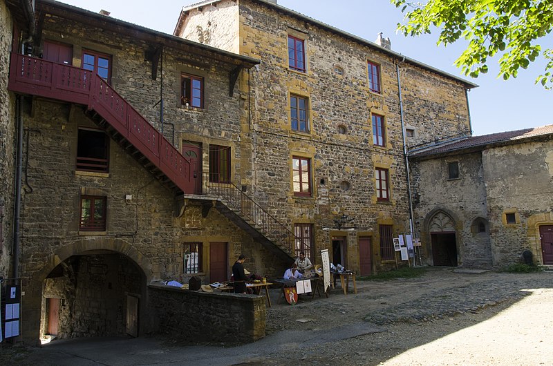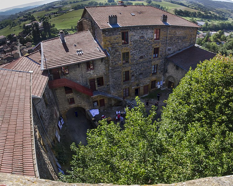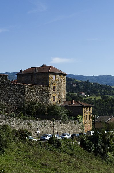 Édifice construit vers 1190, le château faisait partie d'une ceinture de fortifications destinée à protéger le territoire de l'abbaye bénédictine de Savigny. Aux XIVe et XVe siècles, il devient la résidence des abbés et connaît des campagnes de reconstruction ou de réparation. À la Révolution, le château est vendu comme bien national. Au milieu du XIXe siècle, les bâtiments sont transformés en habitations ; le bâtiment sud, qui abritait le logis de l'abbé, est en partie reconstruit vers 1850, tandis que la tour des Empereurs, autrefois située au sud, est démolie au XIXe siècle. Le corps principal se présente comme un quadrilatère irrégulier enfermant une cour, cantonné d'une tour carrée dite tour de l'Horloge (XVe) et d'une tour semi‑circulaire dite tour du Colombier (XVe‑XVIe). La chapelle conserve sa porte du XVe siècle et présente des vestiges d'un décor peint du XVIIe siècle.