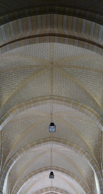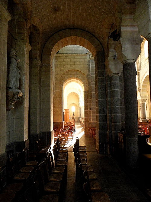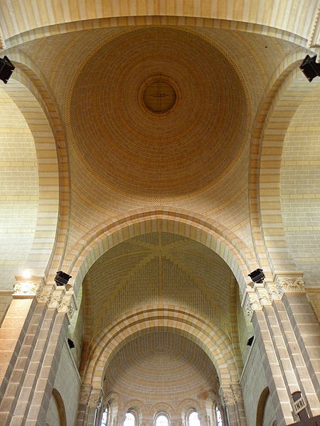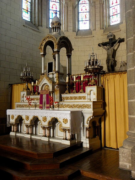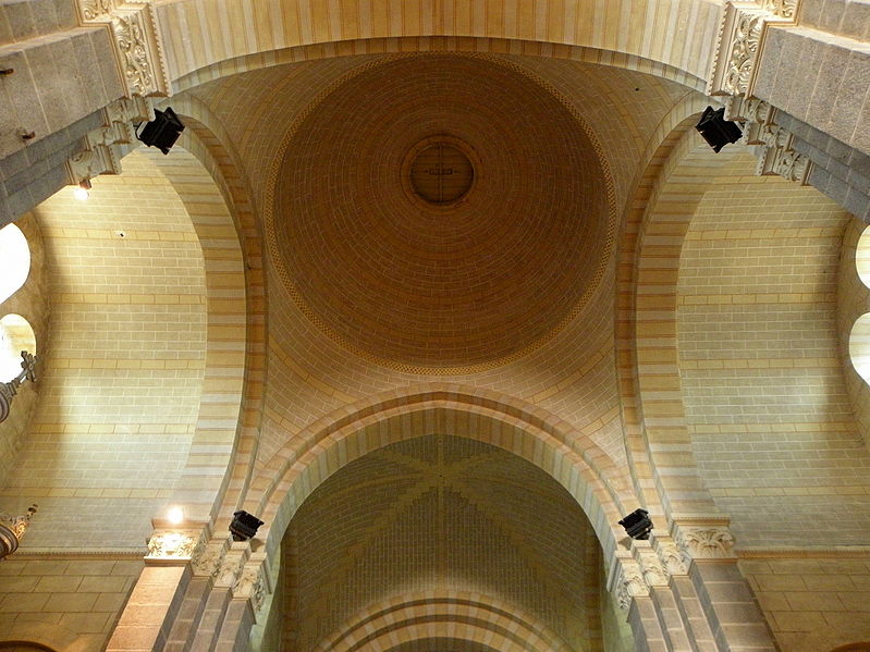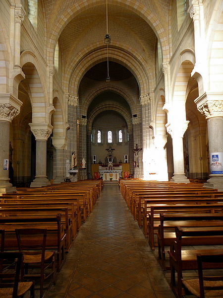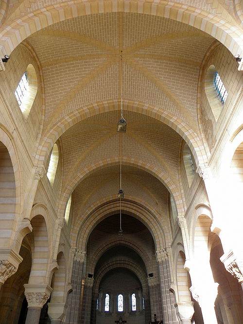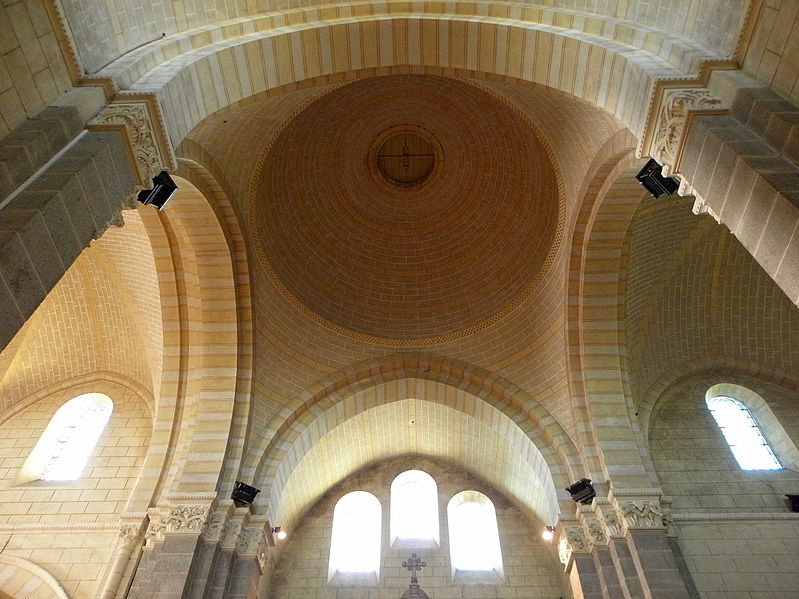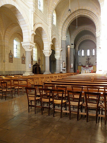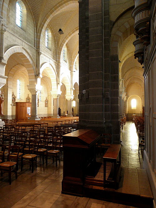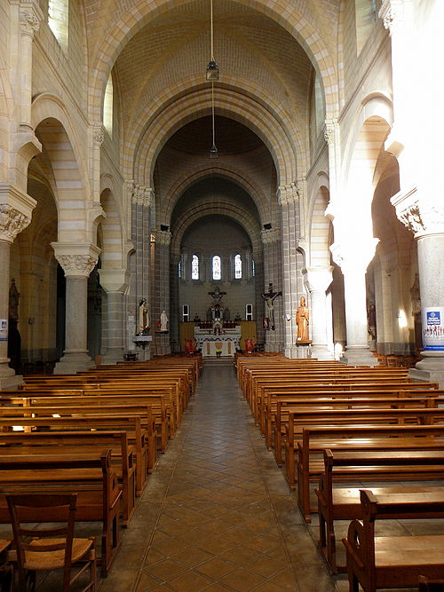 À l'intérieur, quatre chapiteaux sculptés illustrent des scènes bibliques et mariales : du côté nord figurent des épisodes de la vie du Christ (guérisons, apaisement de la tempête, descente du paralytique, Jésus et les enfants), des scènes liées au règne de David et des épisodes mariaux comme l'Annonciation et l'Assomption ; du côté sud se lisent la présentation de Marie au Temple, des thèmes liés à l'Immaculée Conception et au mariage de Marie et Joseph, ainsi que des scènes évangéliques telles que la Pentecôte, les Rameaux, l'enseignement sur la montagne, la Résurrection et la Cène.