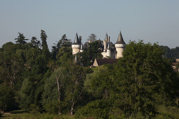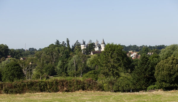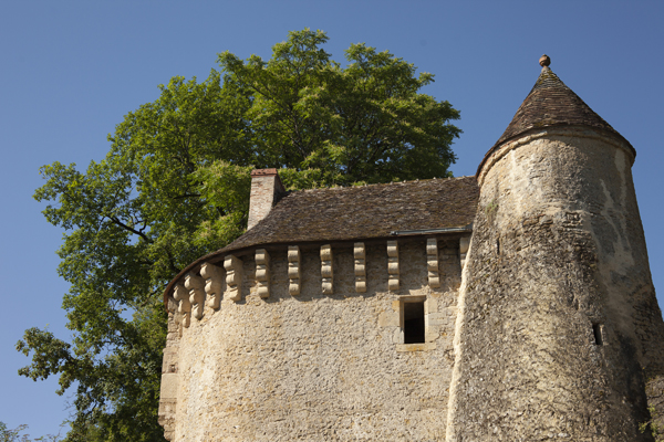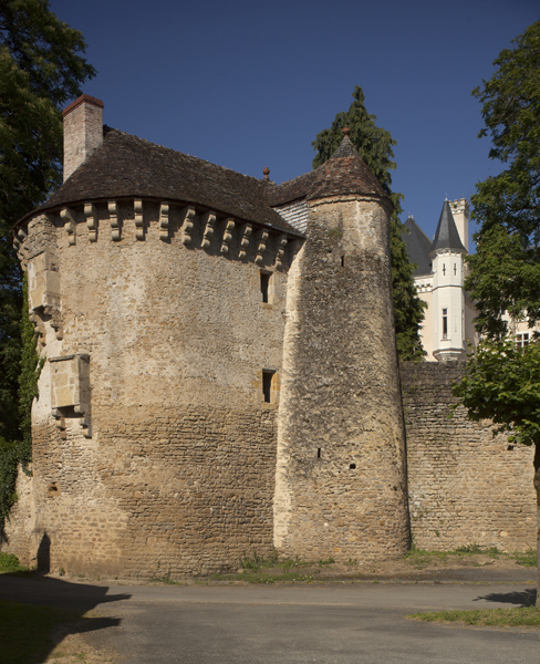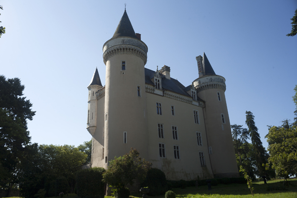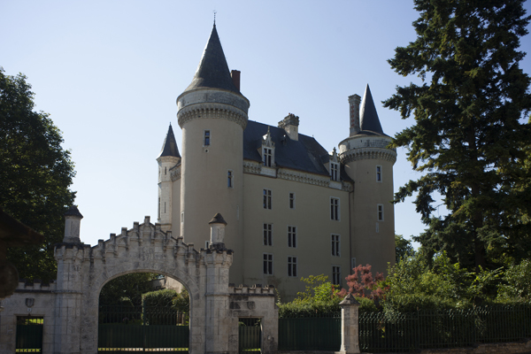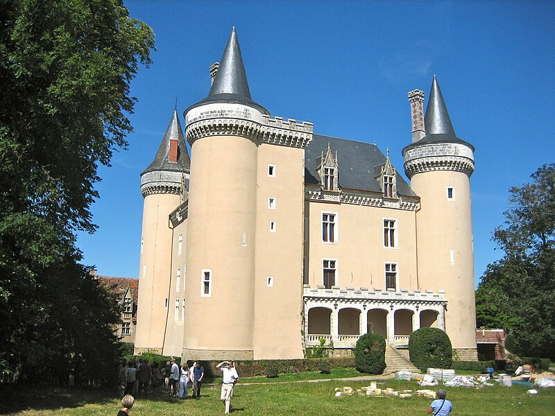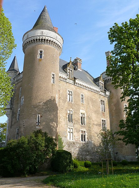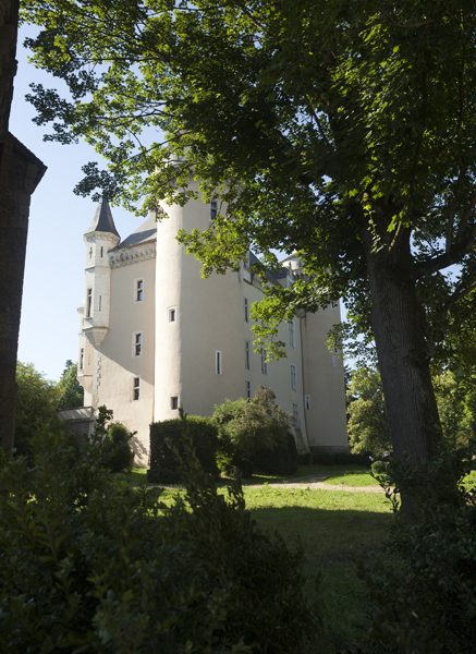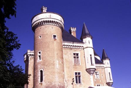 Le château de Saint-Chartier, intitulé ici « Château et ses dépendances », se situe dans la commune de Saint-Chartier (Indre), au sein de l'espace naturel du Boischaut Sud en Centre-Val de Loire. Il est à l'origine une forteresse attestée dès le début du XIIe siècle et citée en 1102 lors d'une visite de l'archevêque de Bourges. L'édifice primitif présente une masse cantonnée de quatre tours d'angle autour d'une cour intérieure, avec un donjon flanqué de ces tours. Du XIIIe siècle subsiste dans le parc une galerie dite « Jeu de Paume », à arcades et colonnade sur la façade orientale. Cette galerie mesure 41 mètres de long sur 6 mètres de large et comporte dix-neuf colonnes monolithes à chapiteaux reliées par des arcs en bois. Les remaniements se succèdent au fil des siècles, avec des travaux aux XVe et à la Renaissance, puis des transformations importantes au XIXe siècle. À cette époque la tour nord a été démolie, une terrasse aménagée sur la face sud et de nombreuses ouvertures percées dans les murs. Les communs et les remparts ont été remaniés au XVe siècle ; il subsiste aujourd'hui les courtines nord et est formant un angle droit, chacune cantonnée d'une tour. Deux de ces tours conservent encore les consoles du chemin de ronde et la cheminée de la salle à manger porte les armes de Marguerite de Chauvigny. Saint-Chartier appartint aux seigneurs de Déols puis, après l'alliance par mariage de Denise de Déols, passa durablement aux Chauvigny qui reconstruisirent le donjon au XIVe siècle et le logis au XVe siècle. Pendant la période de la Restauration, l'entretien fit défaut et plusieurs parties du château furent ruinées. En 1858, Alexandre Naud acquit la propriété ; il fit édifier dans le parc la chapelle Barbault comme chapelle funéraire et sa fille Victorine, avec son mari Michel Germain et l'architecte départemental Alfred Dauvergne, engagea une restauration entre 1873 et 1880. Le château a été victime d'un incendie au cours de la première moitié du XXe siècle et des travaux de restauration ont été entrepris par le propriétaire actuel à partir de 2009. Classé Monument Historique pour ses remparts, courtines, communs, Jeu de Paume et cheminée, et inscrit pour son corps de logis, il a reçu ces protections le 14 février 1989. Le domaine comprend le château, la chapelle Barbault, des tours et murs d'enceinte, ainsi que le parc et les jardins. Le château a accueilli pendant trente-deux ans le festival des Rencontres internationales de luthiers et maîtres sonneurs, jusqu'en 2008, avant le déménagement du festival au château d'Ars à la suite d'un changement de propriétaire. Lieu inspirant pour George Sand, il figure dans Histoire de ma vie et sert de cadre à une grande partie du roman Les Maîtres sonneurs ; l'écrivaine y décrit notamment l'ampleur des salles, les cheminées et l'impression laissée par la ruine. Des traditions locales et des récits rapprochent le château de diverses légendes, évoquant entre autres un passage de Napoléon et des fouilles légendaires pour un trésor, et la Fondation Fornesa organise chaque année, en partenariat avec la mairie, un concours de contes pour enfants lié au château.